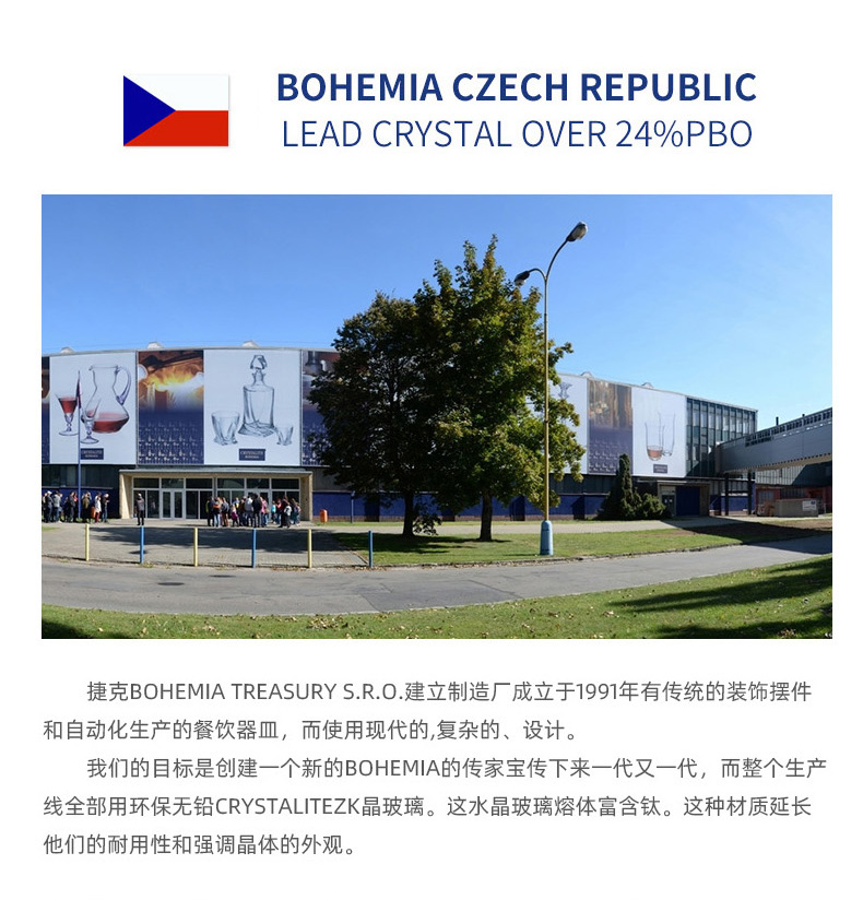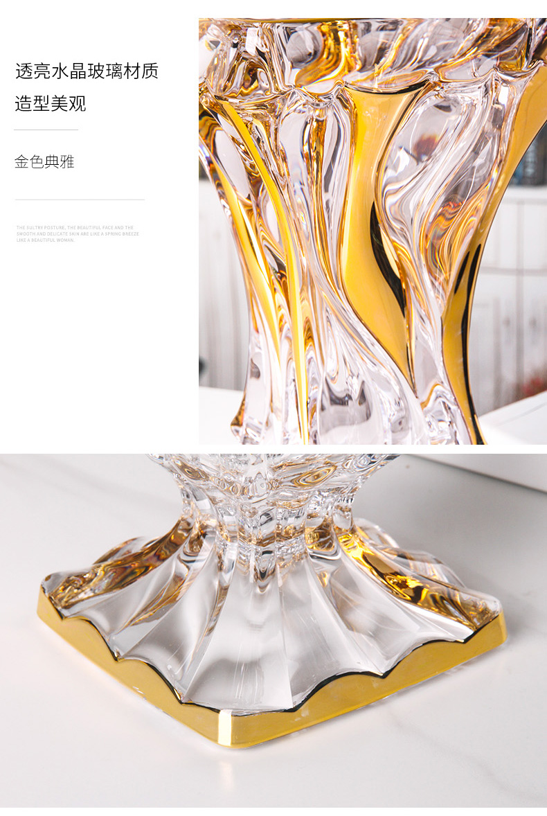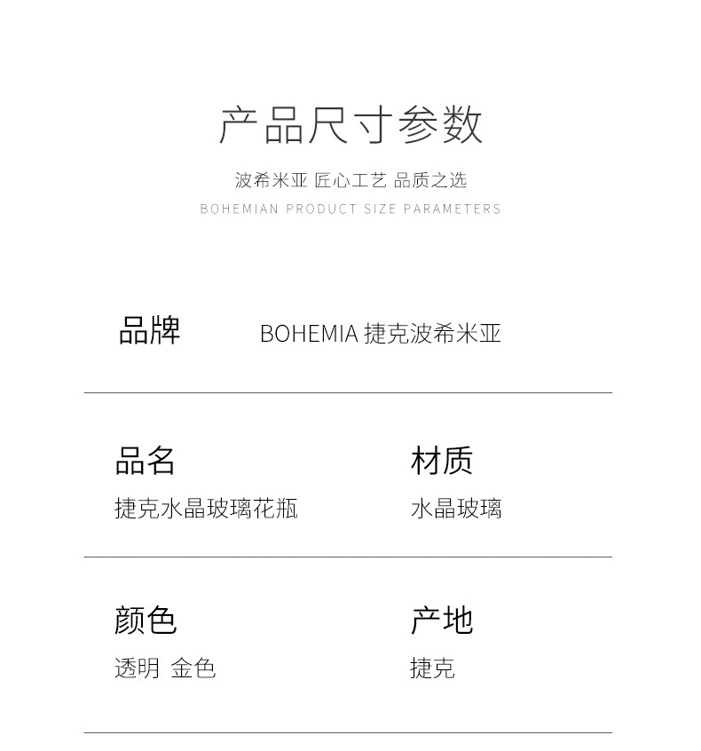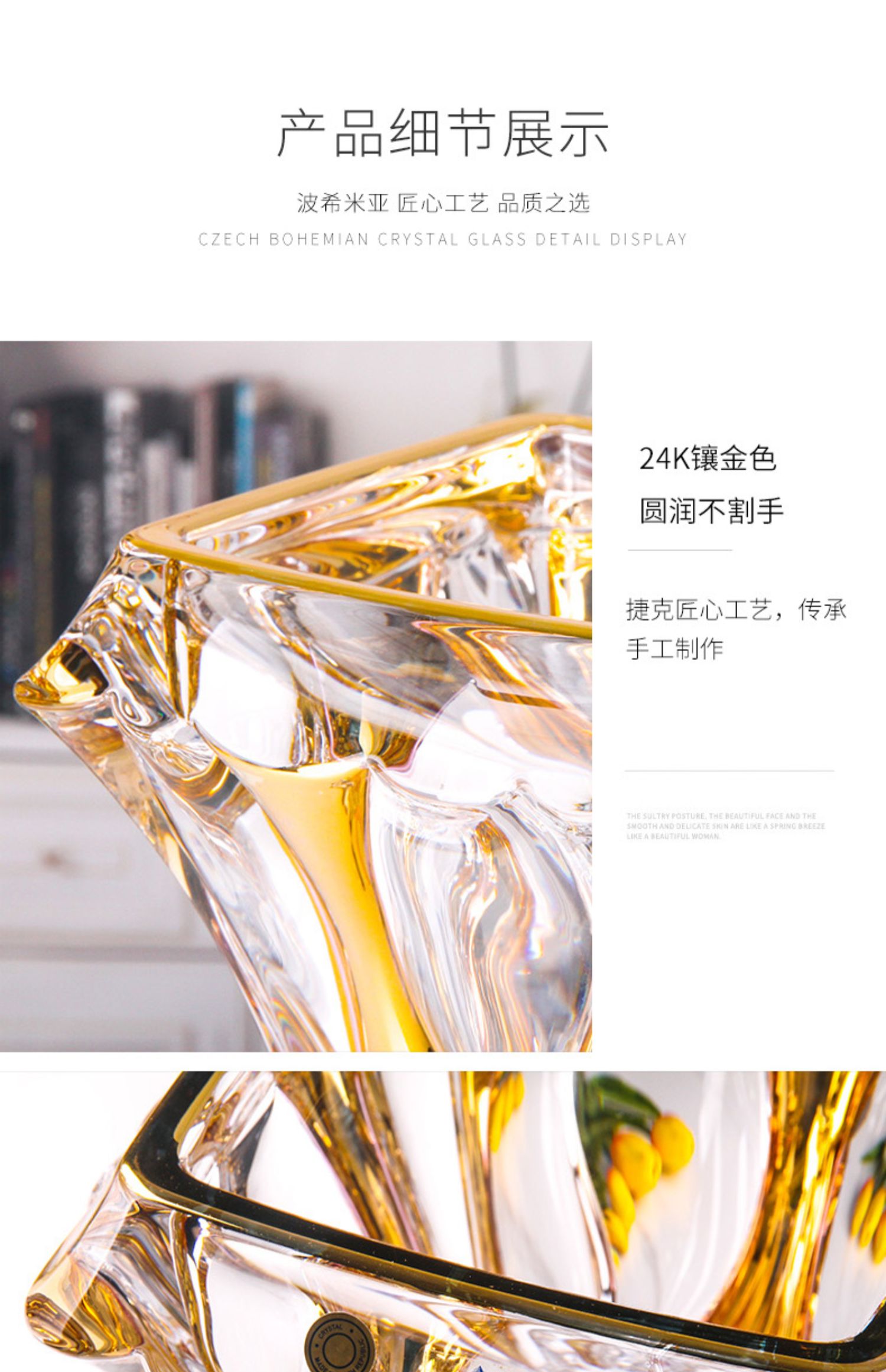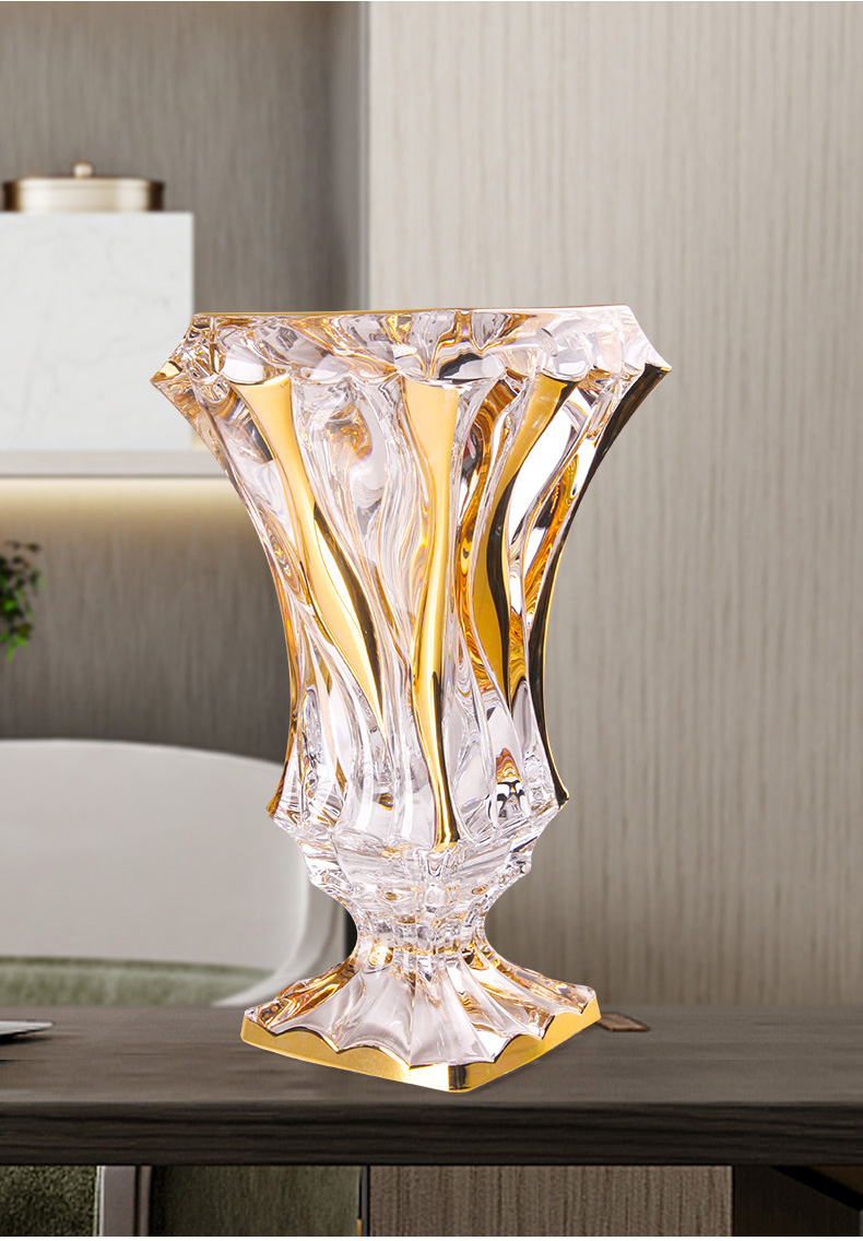 捷克BOHEMIA进口水晶玻璃描金透明 花瓶摆件客厅插花 富贵竹花瓶