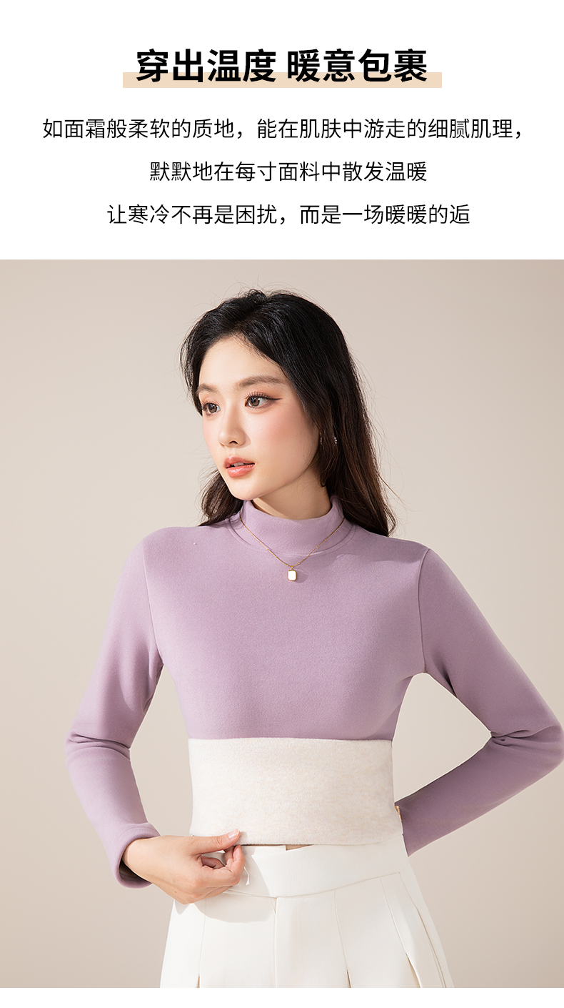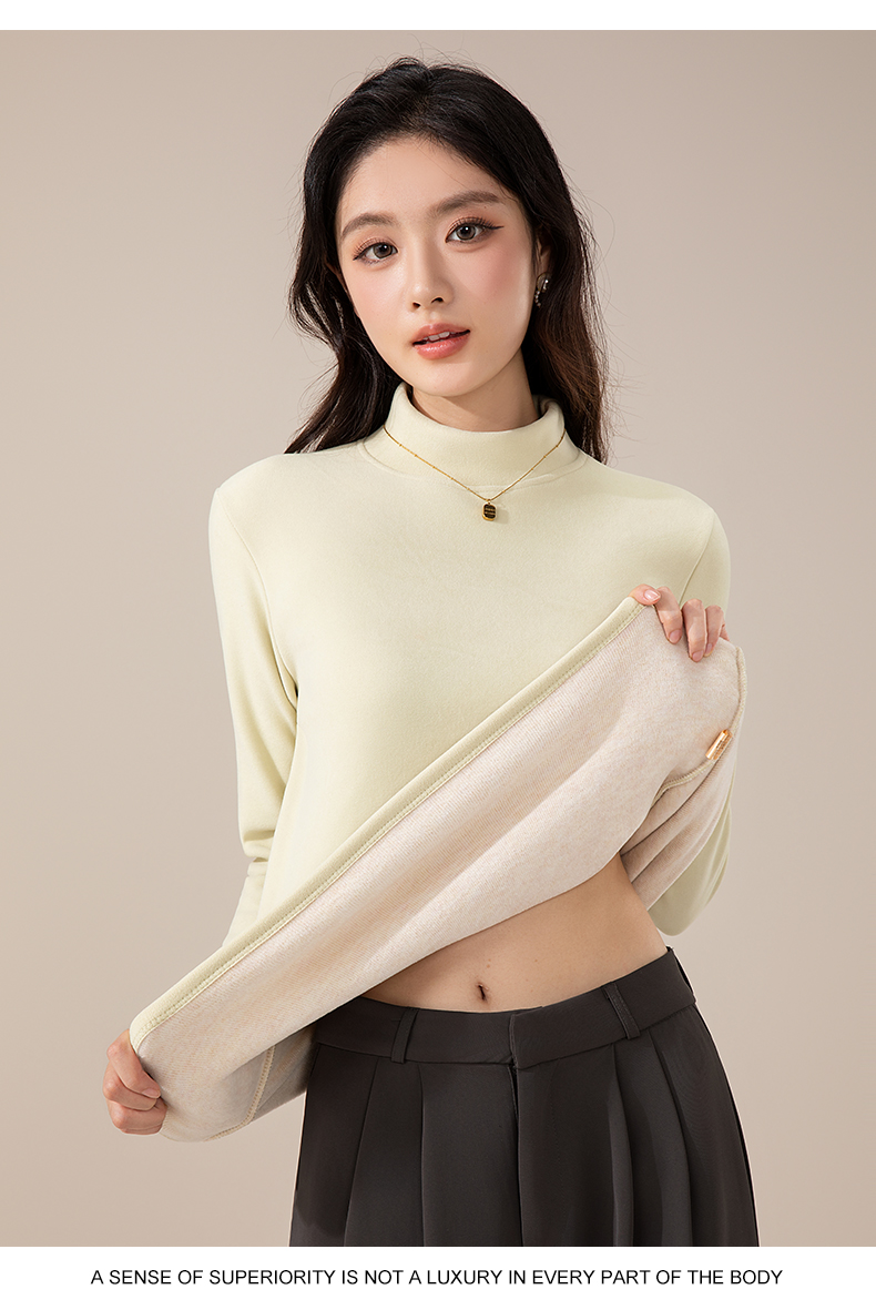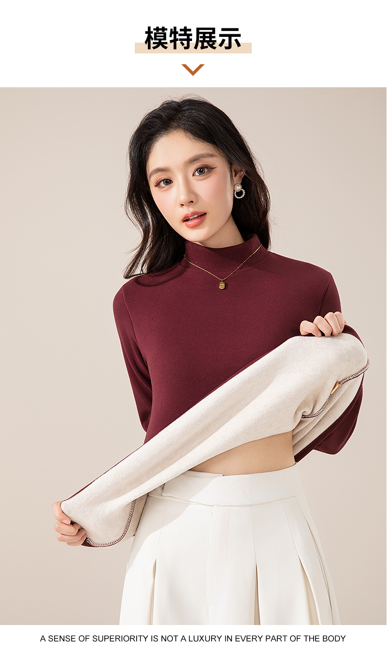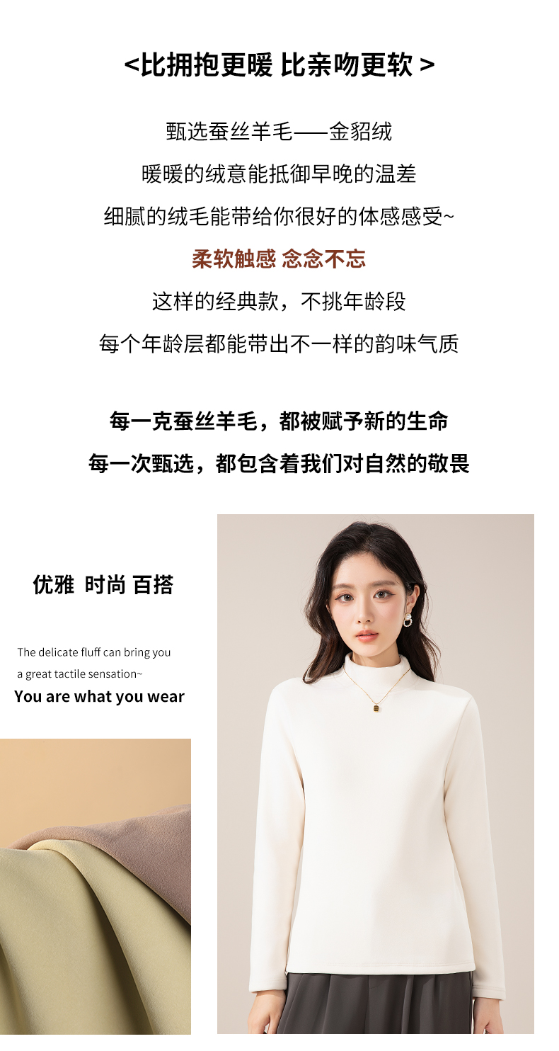 莱赛尔 · 蚕丝羊毛金貂绒打底衫 莱赛尔植物精华+蚕丝羊毛融合,柔软细腻 软糯亲肤,版型微宽松 修腰剪裁,修身不臃肿 领口半高领设计 百搭好看又保暖!