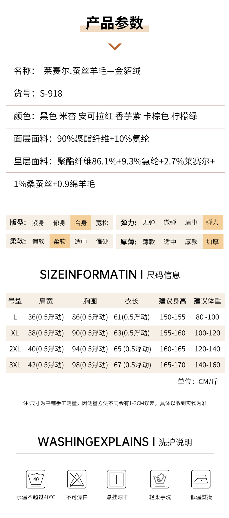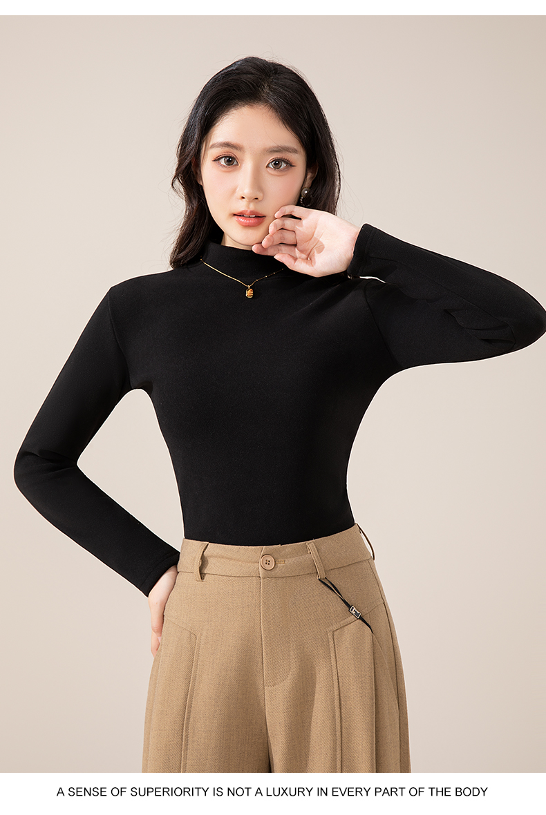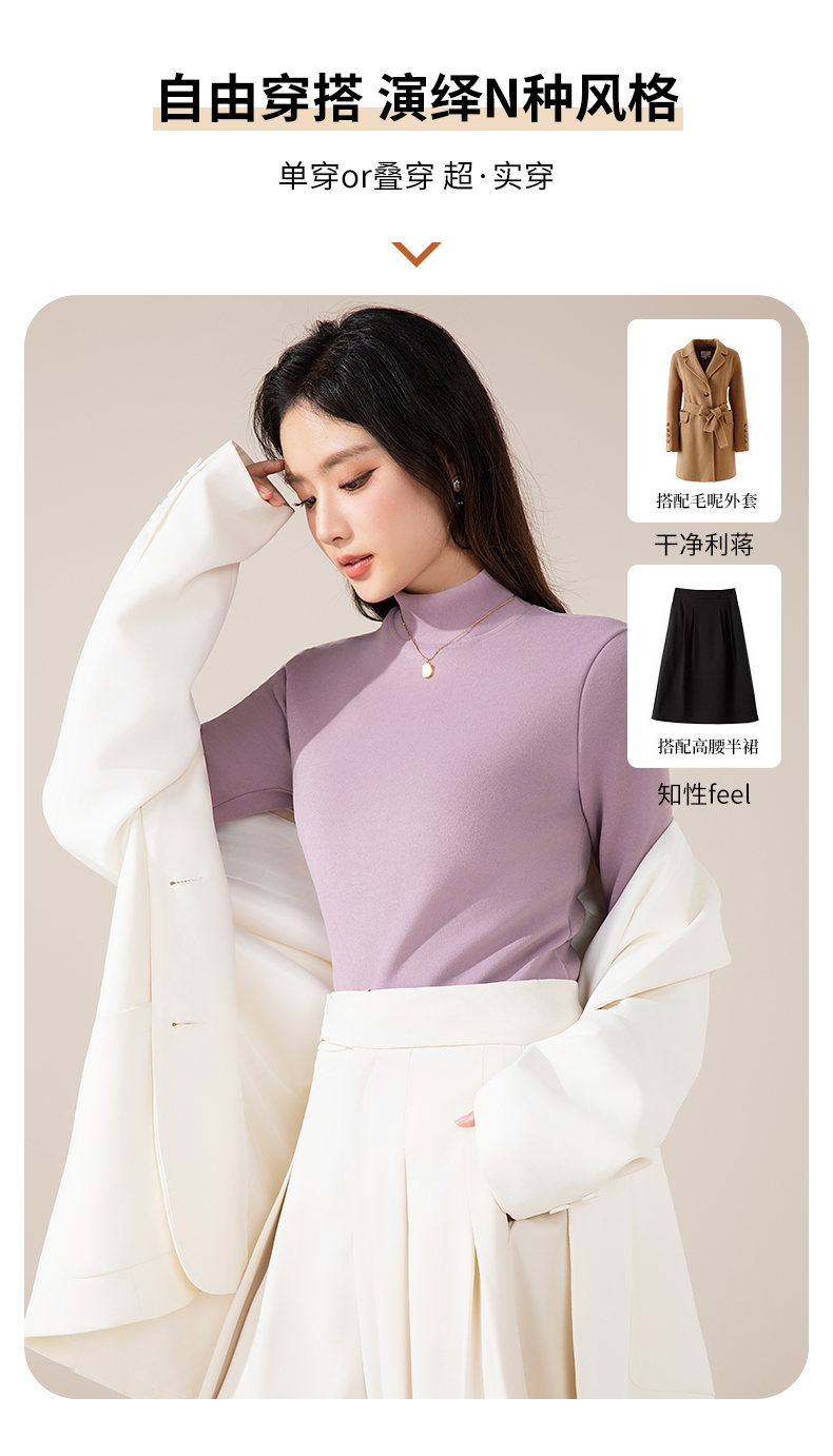 莱赛尔 · 蚕丝羊毛金貂绒打底衫 莱赛尔植物精华+蚕丝羊毛融合,柔软细腻 软糯亲肤,版型微宽松 修腰剪裁,修身不臃肿 领口半高领设计 百搭好看又保暖!