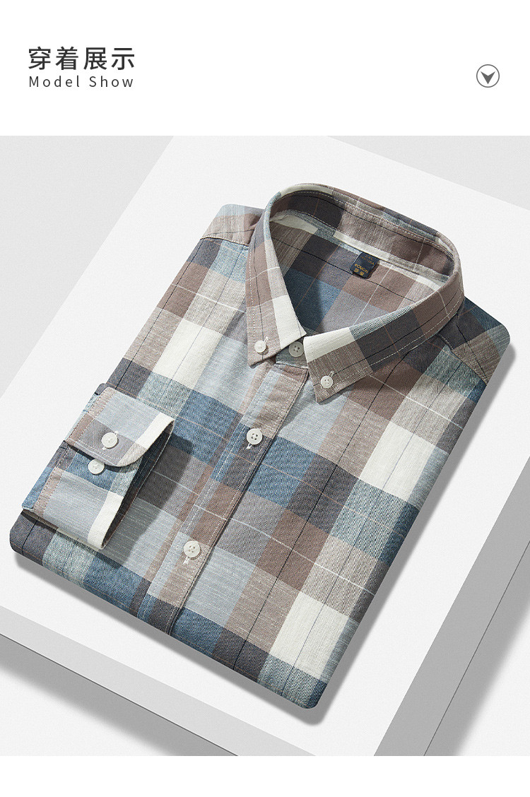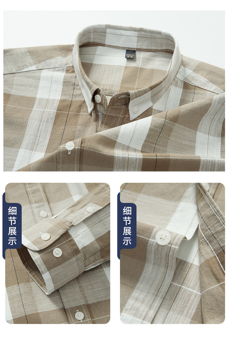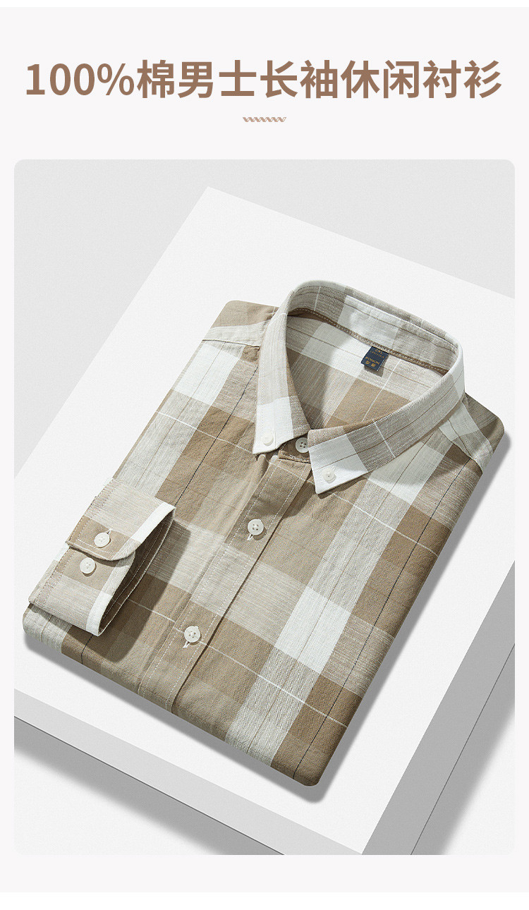 【100%棉】罗蒙男士长袖格子衬衫休闲时尚百搭舒适大众款日常百搭衬衣