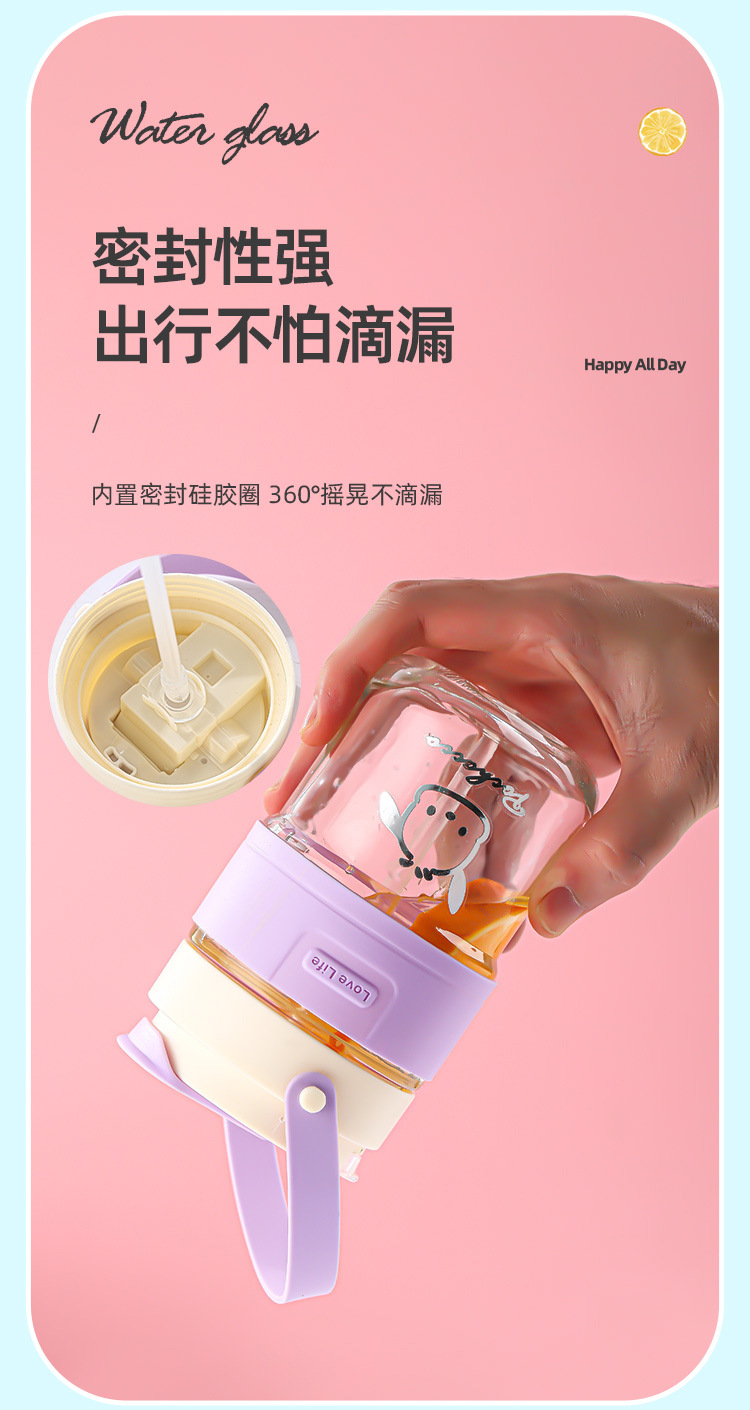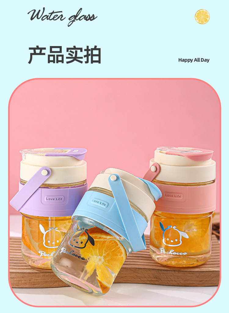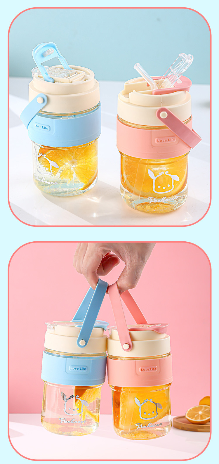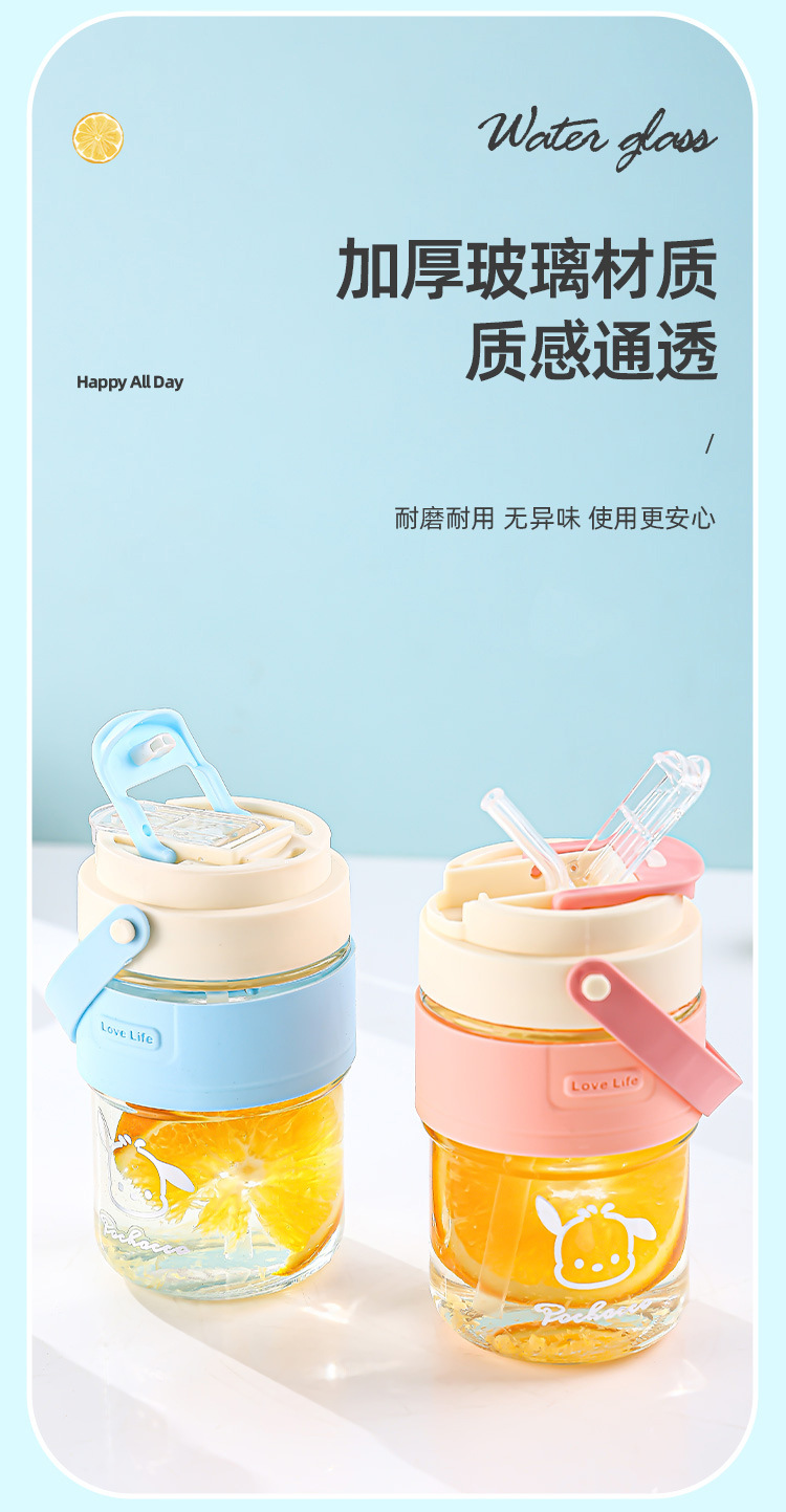 「19.9元包邮!送3D贴」高颜值水杯儿童卡通玻璃杯简约便携随手杯女生网红帕恰狗吸管杯餐饮用具