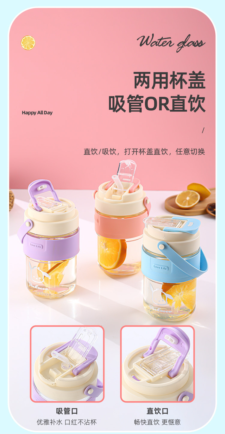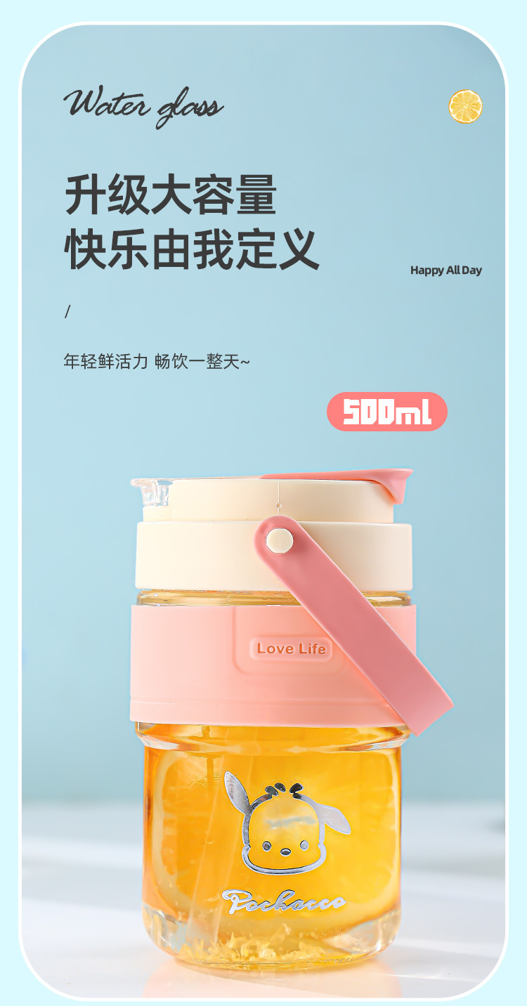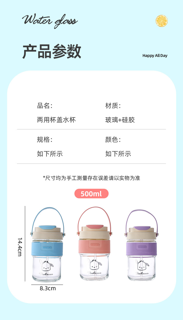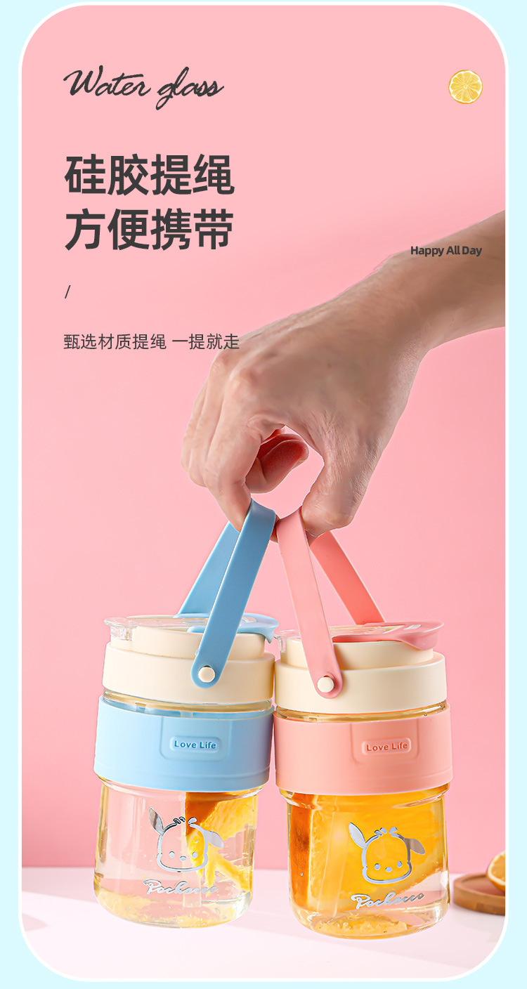 「19.9元包邮!送3D贴」高颜值水杯儿童卡通玻璃杯简约便携随手杯女生网红帕恰狗吸管杯餐饮用具