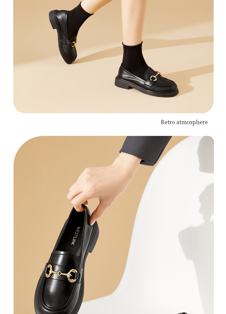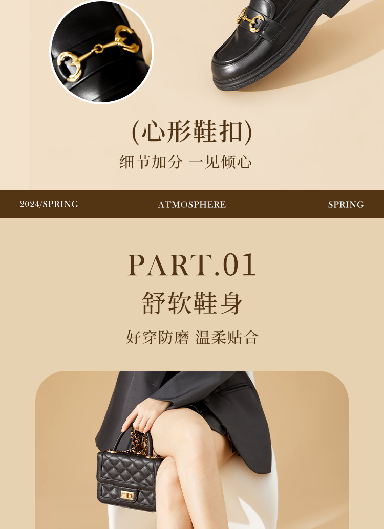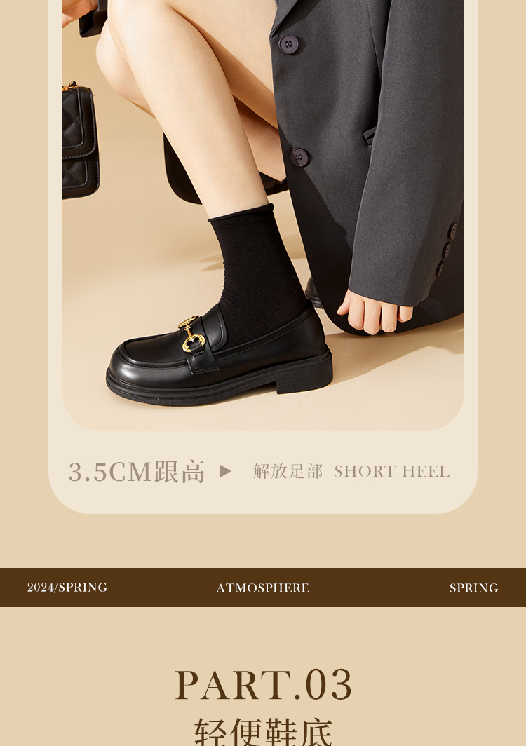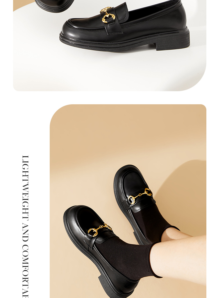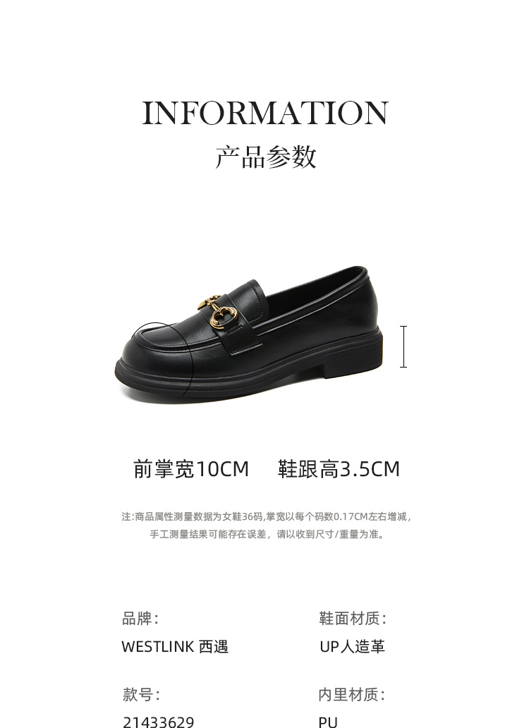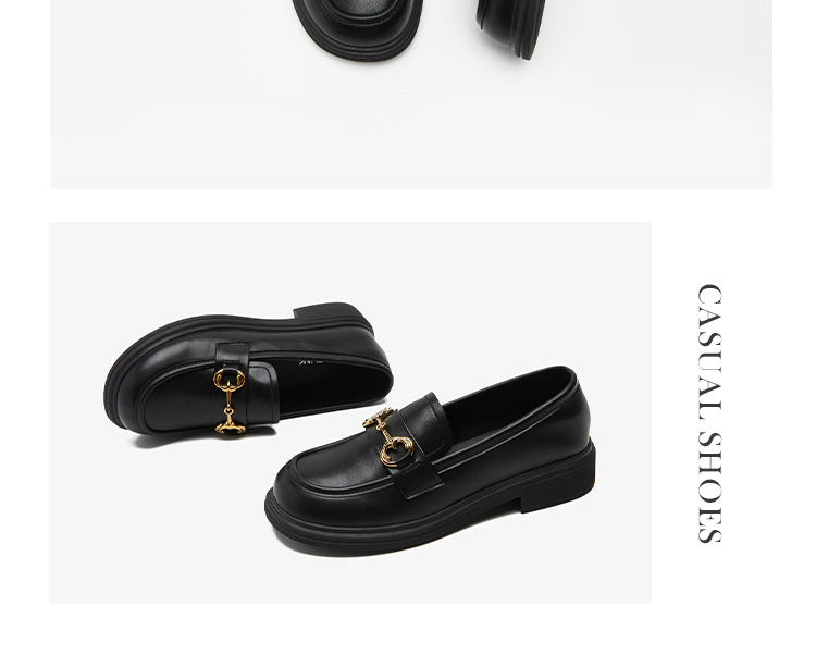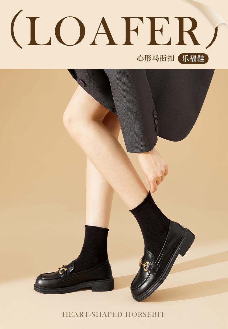 西遇马衔扣乐福鞋女新款金属扣英伦风厚底休闲小皮鞋21433629