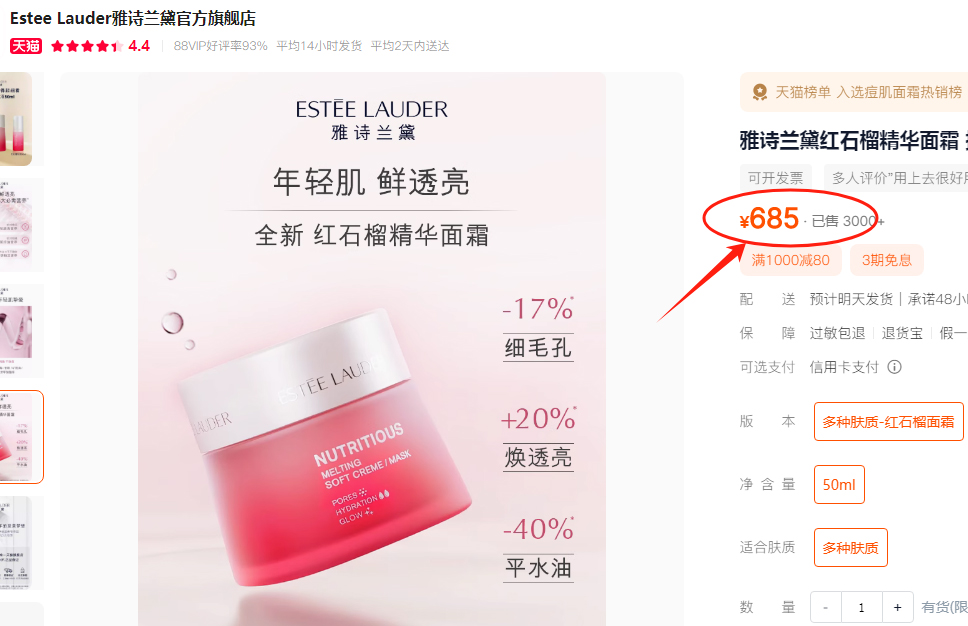 【品名】雅诗兰黛红石榴精华面霜 50ML
