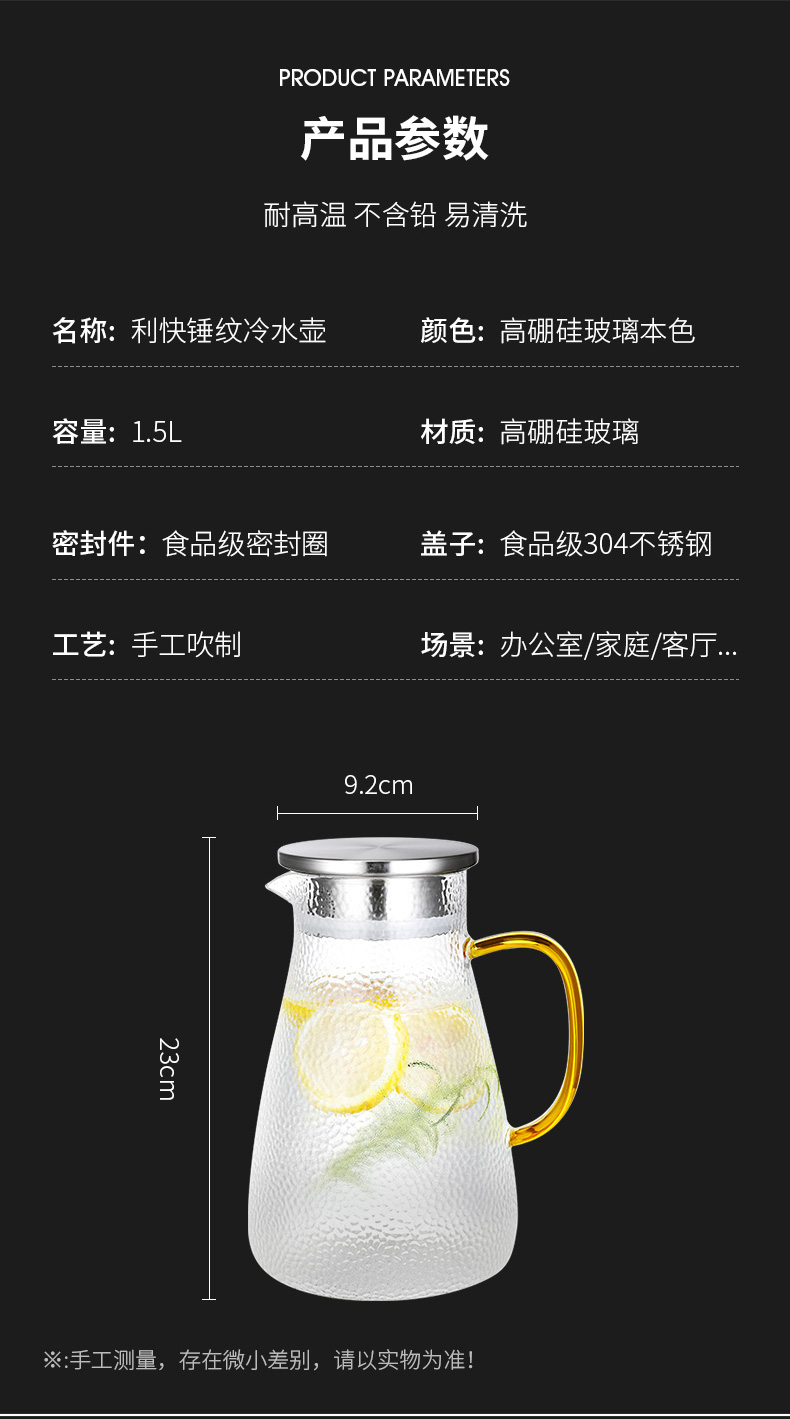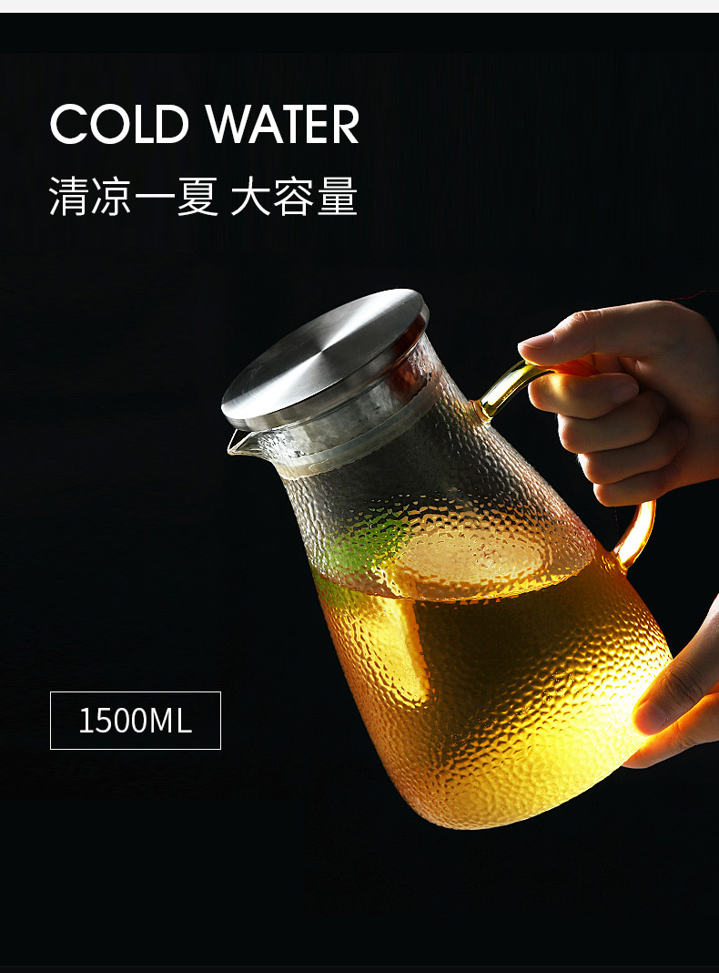 【耐热防爆,轻薄透亮】Pattern 锤目纹凉水壶1500ml