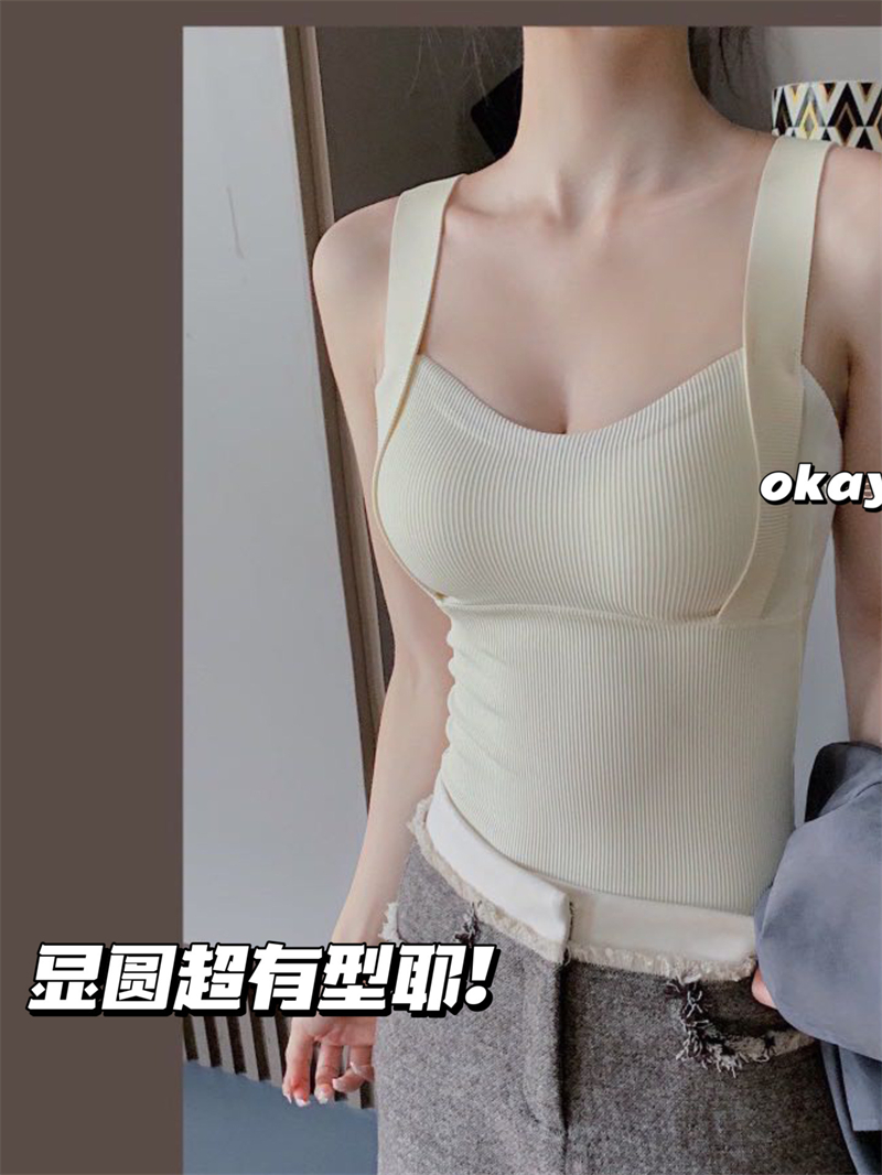 🔻半固定一体式罩杯,圆润饱满胸型,免穿bra!
