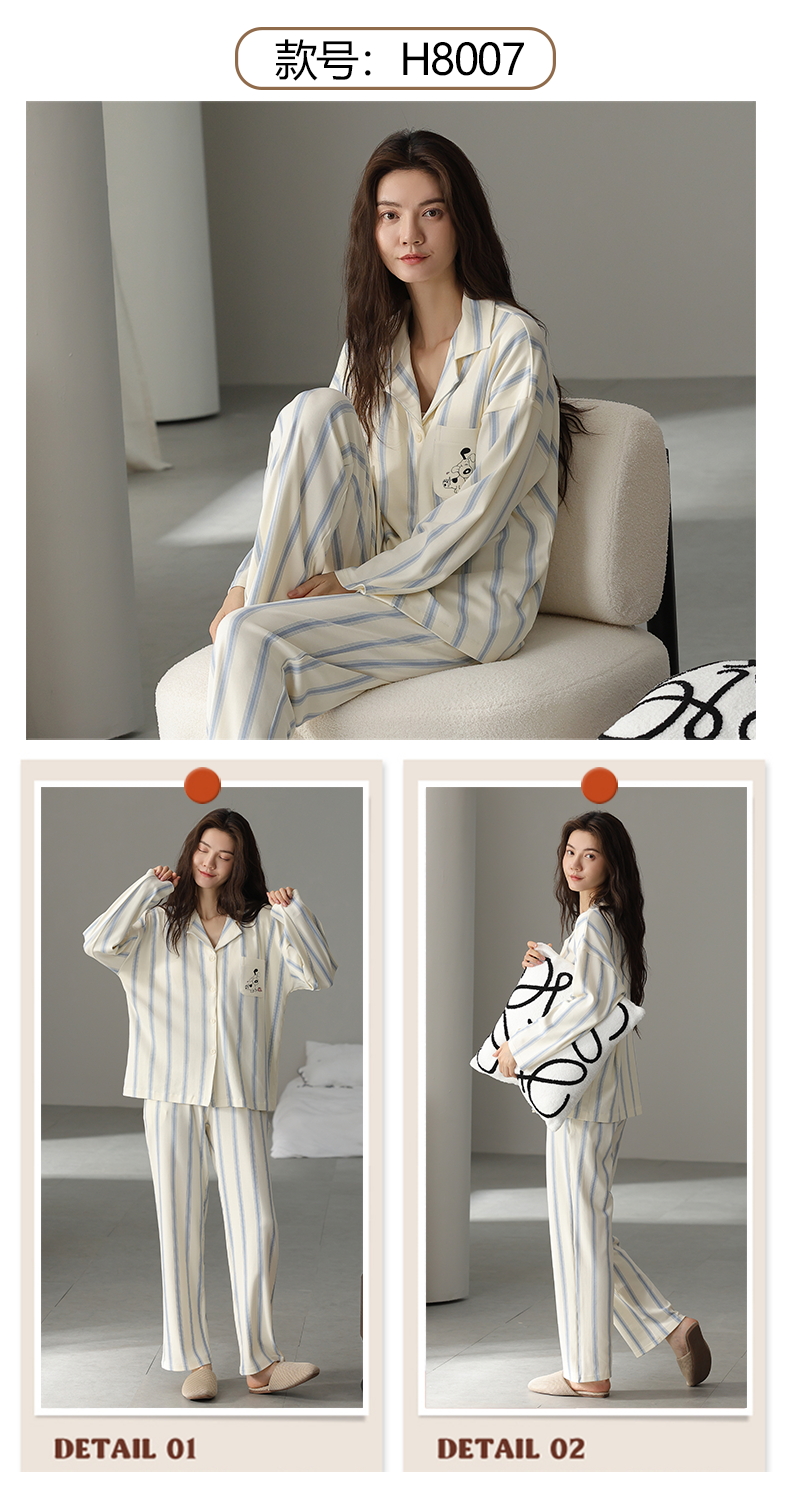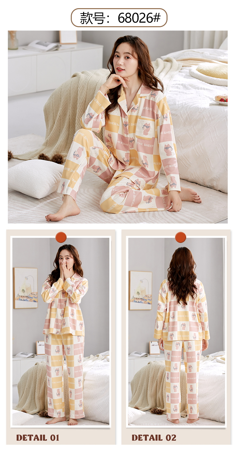 自然醒轻歌针织棉睡衣女士春秋季长袖开衫可外穿高级感休闲宽松家居服套装QH