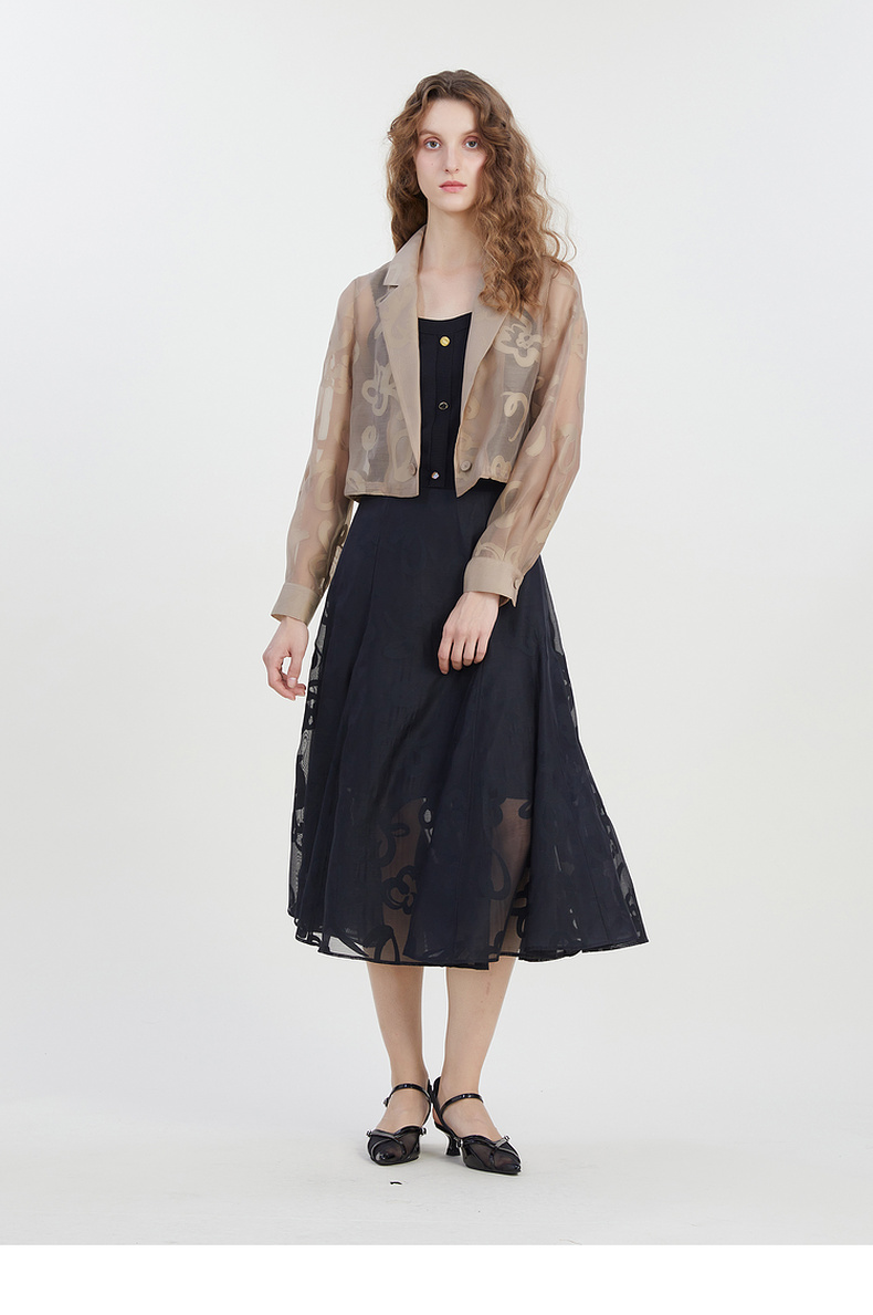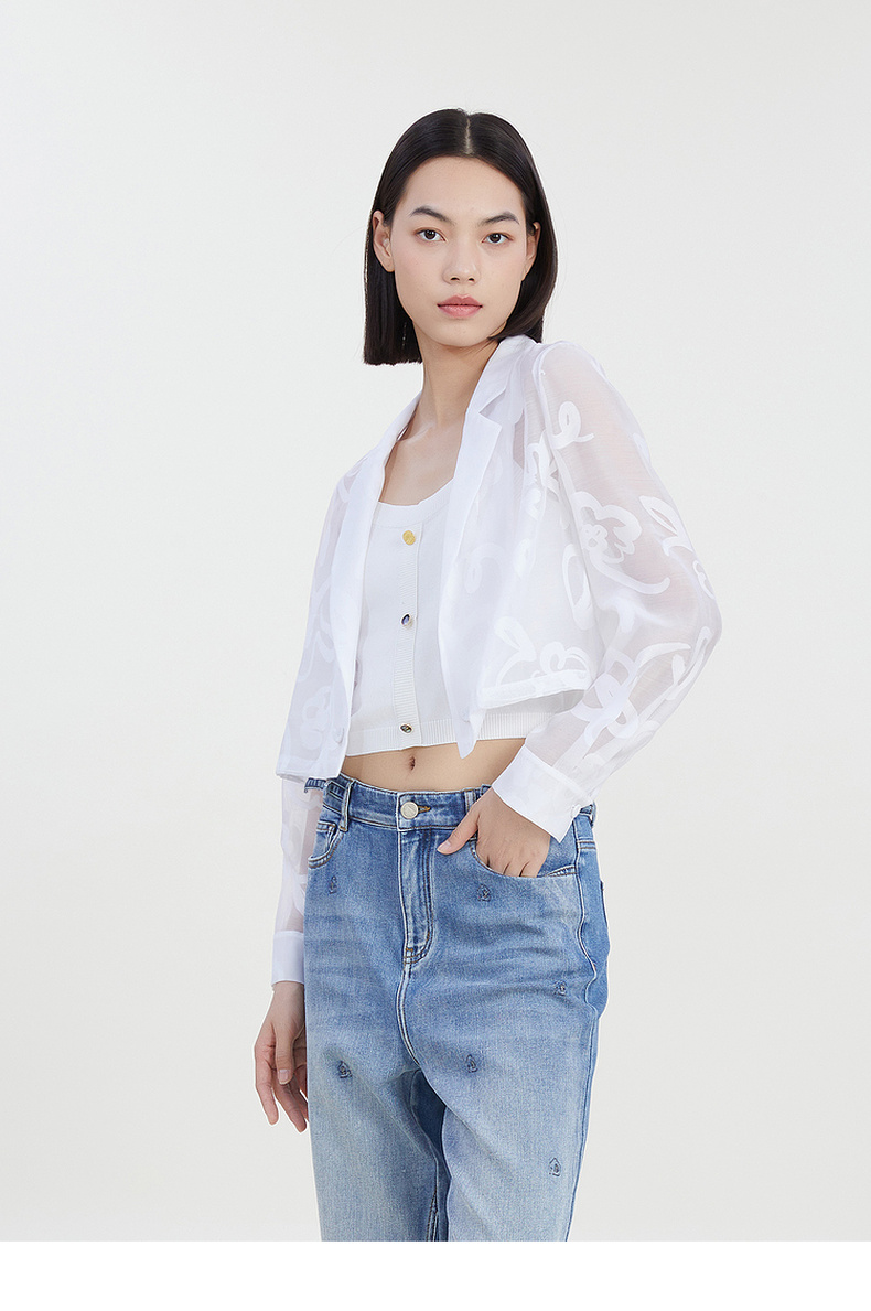 谜底2023夏季新款短款外套西装领通勤时尚小外套长袖女232MW0522