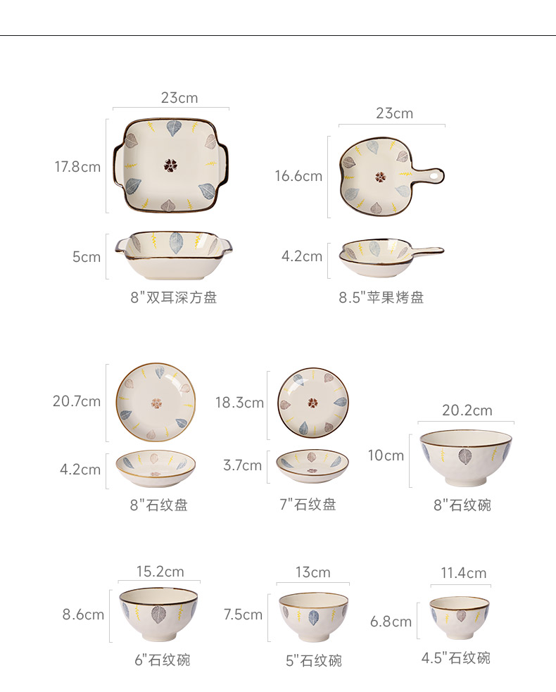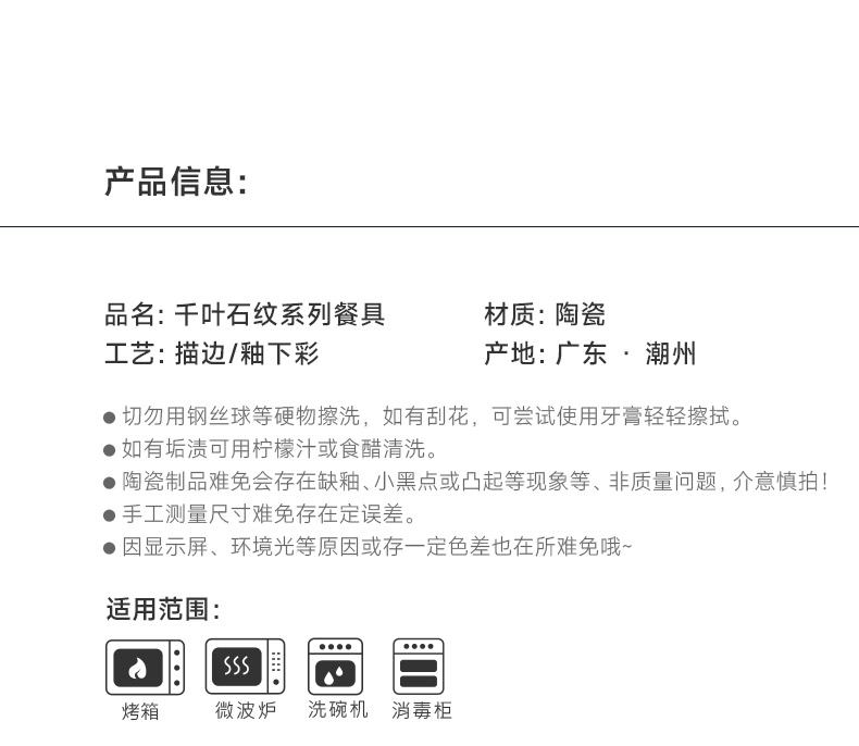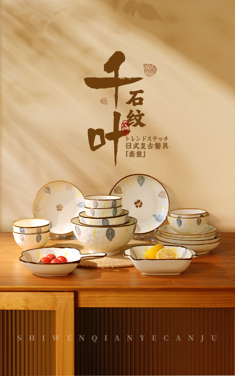 【千叶石纹系列】餐具复古碗釉下彩餐具陶瓷泡面碗汤碗家用碗盘
