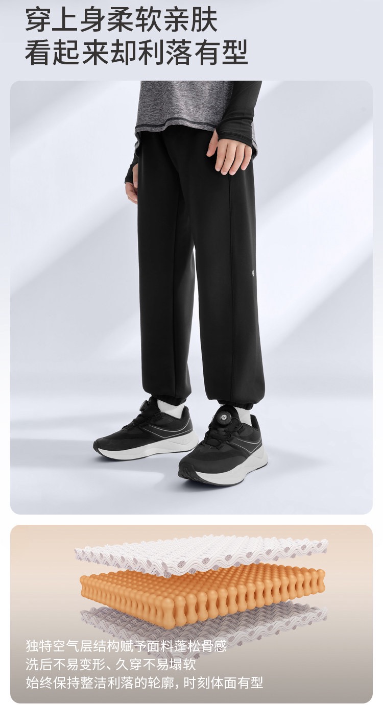 弹力十足不紧绷!科学配比弹性纤维,拉伸后能快速回弹,裤腿贴合身形却不紧绷,娃劈叉、跑跳都无束缚,活动自如。