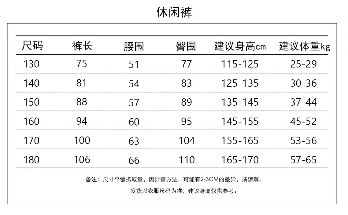 真的随便一个细节都可以看出来品质尺码表,130-180码,