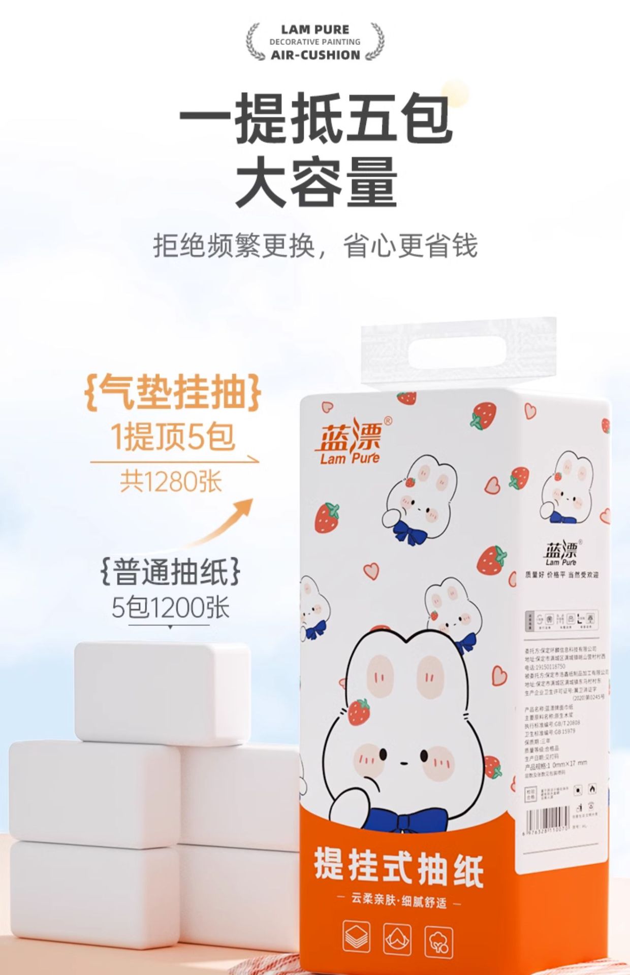 「9.9元包邮!挂式抽纸」蓝漂家用大包悬挂式抽纸 居家日用厕纸抽取式厕所卫生纸家庭装清洁工具
