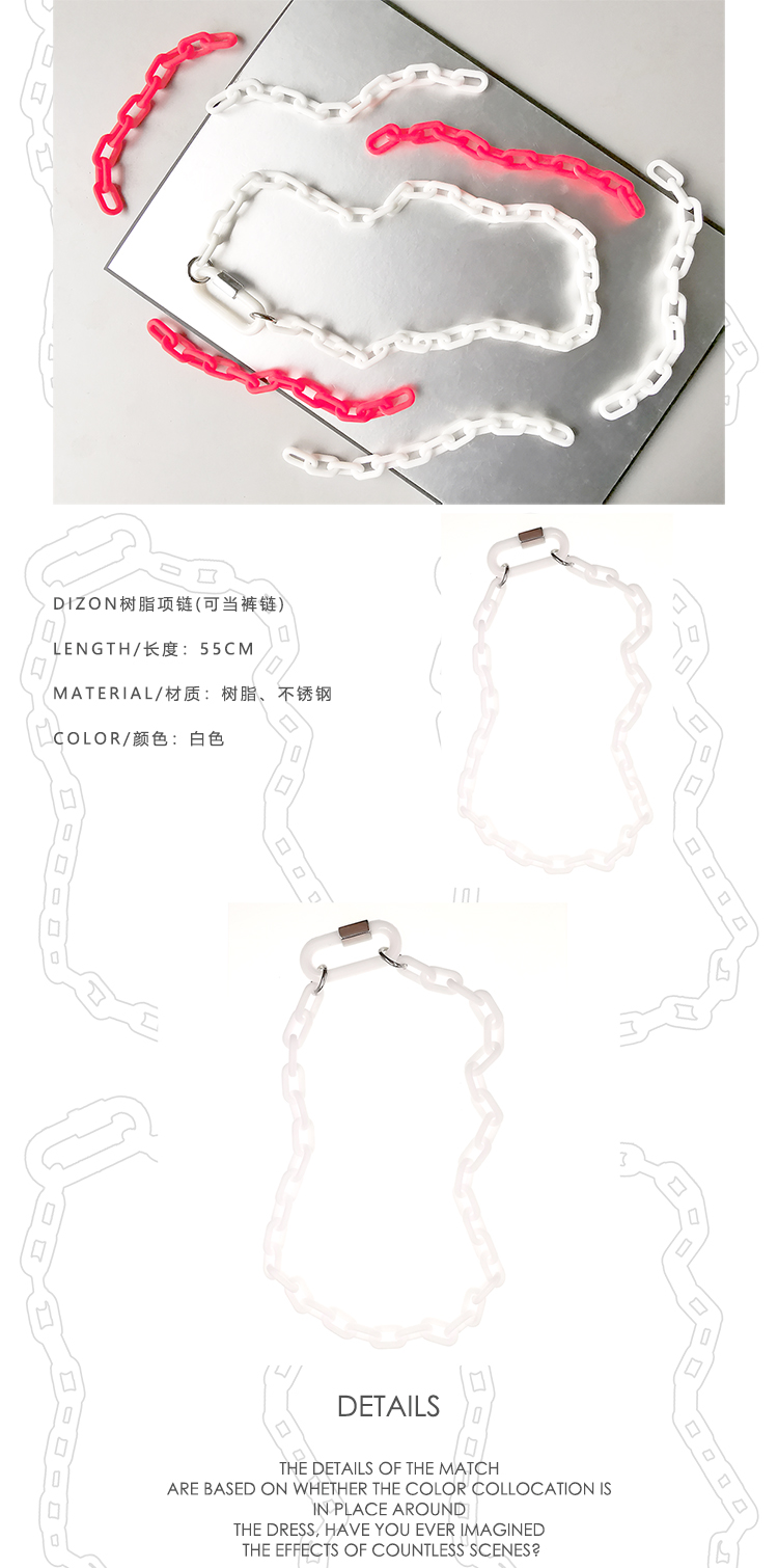 DIZON 纯色夸张项链女 无缝树脂白色项链男 简约锁链式几何个性