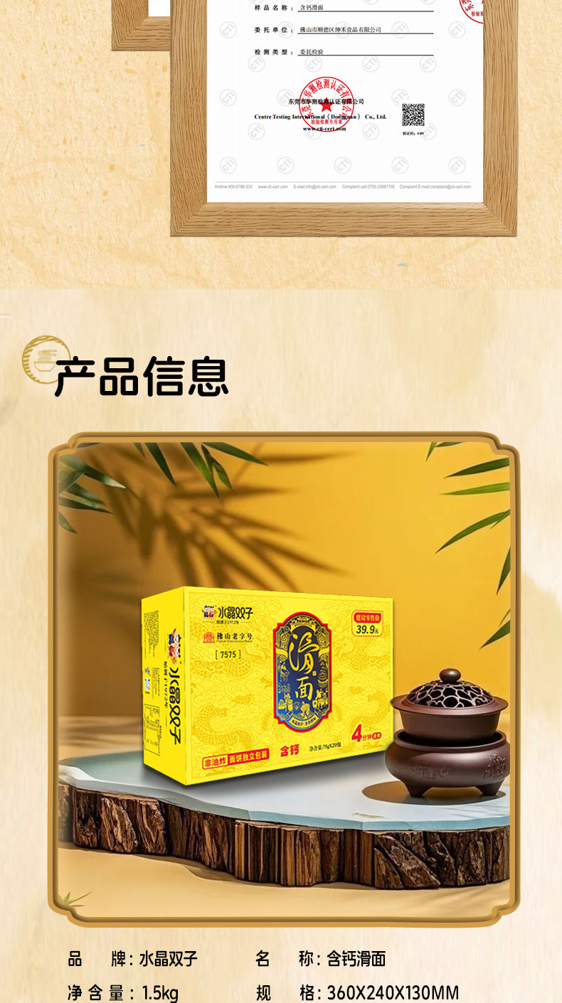 【佛山老字号】新品 水晶双子非油炸含钙滑面 1.5KG箱装【够意思】