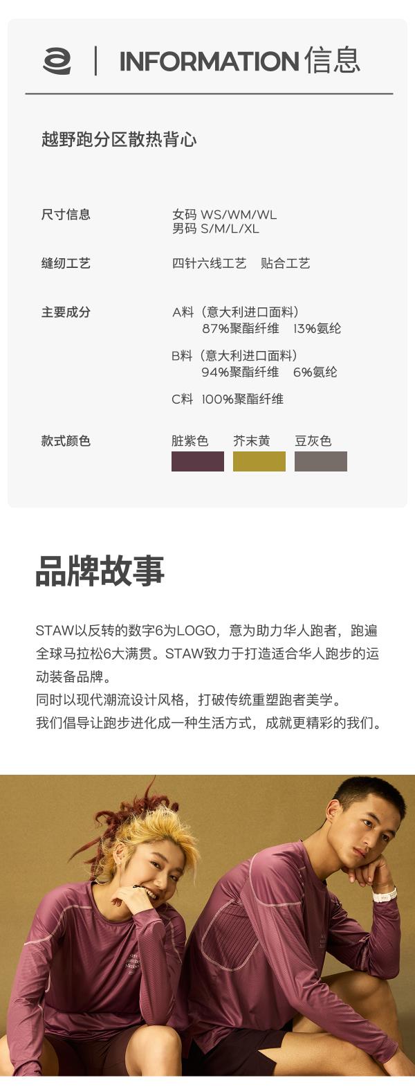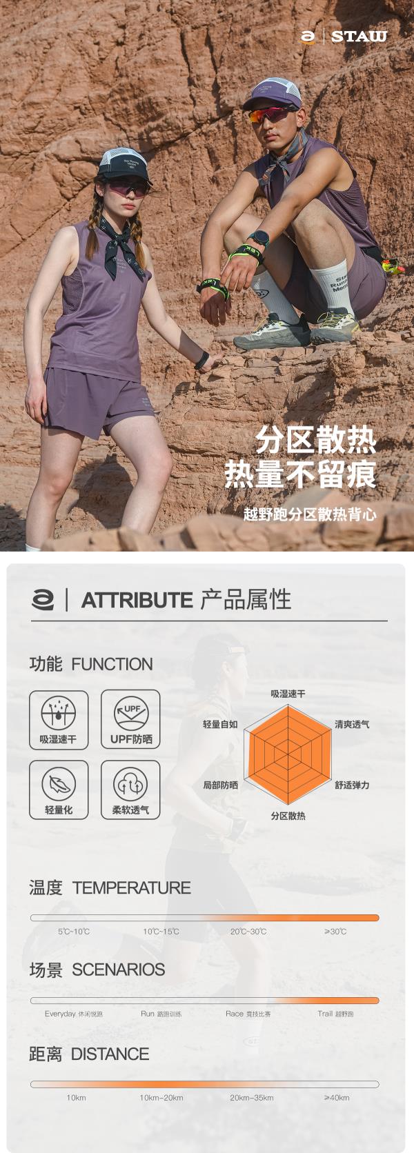 STAW世拓 TRAIL越野跑分区散热背心网眼透气运动户外跑步防晒T恤