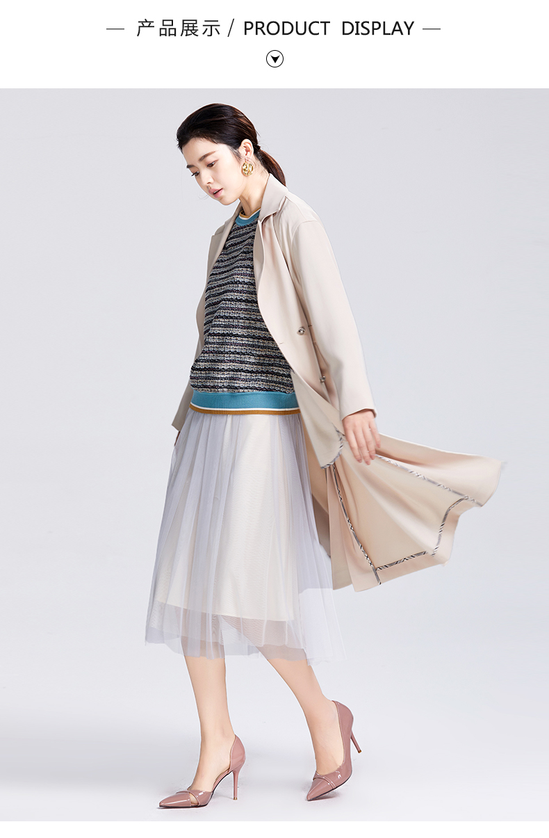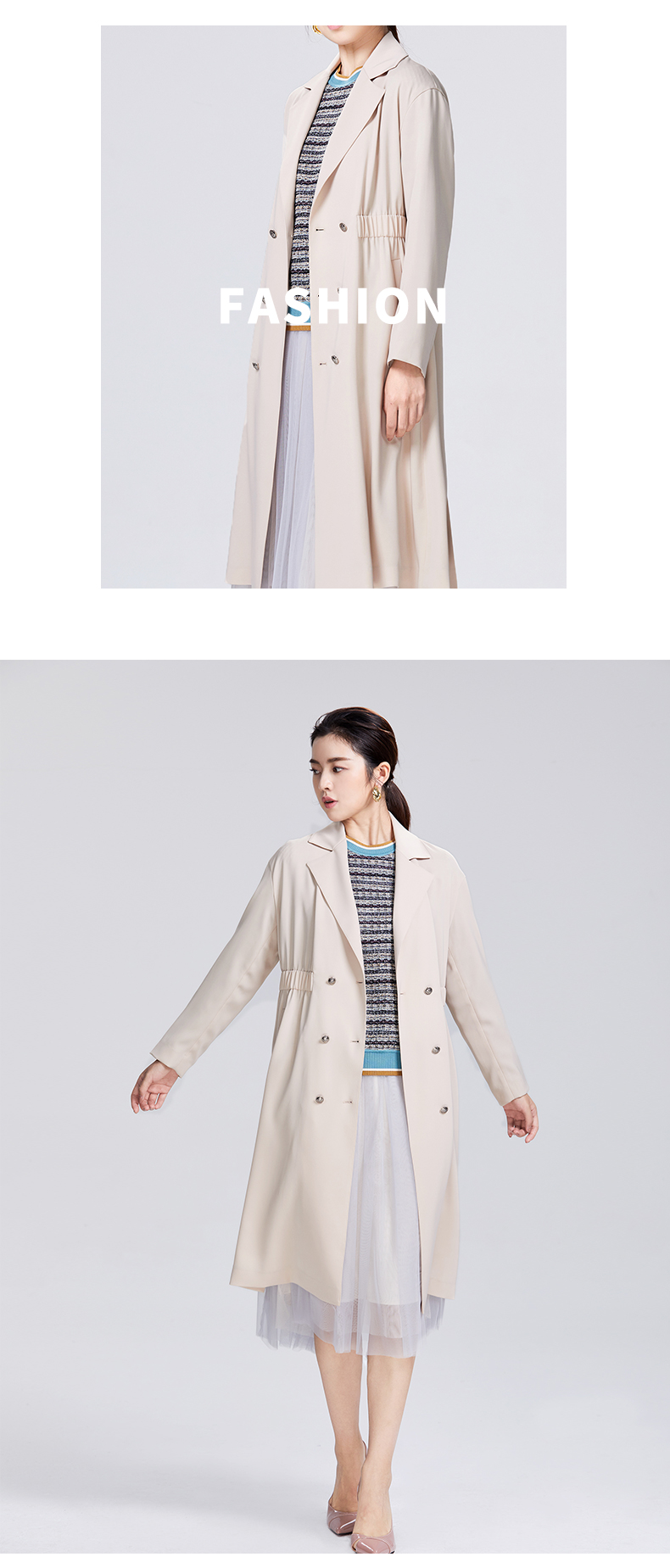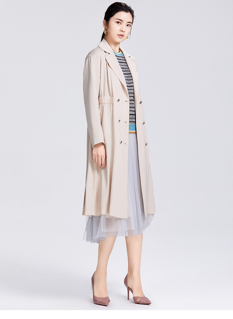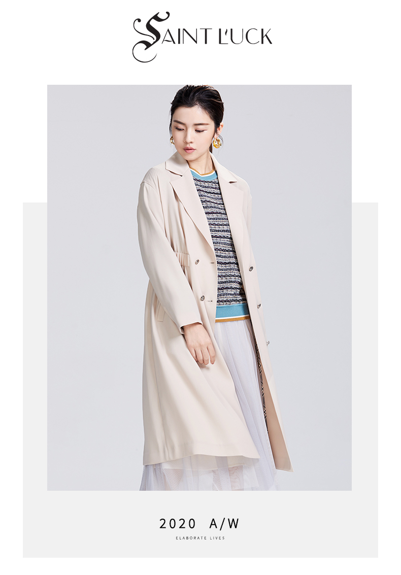 SAINT L’UCK/圣媛女装 新款优雅学院风中长款纯色翻领风衣外套SA320F53