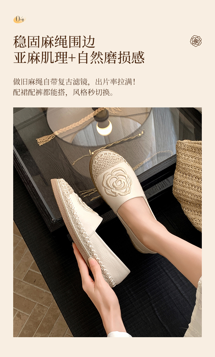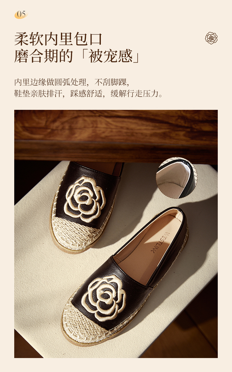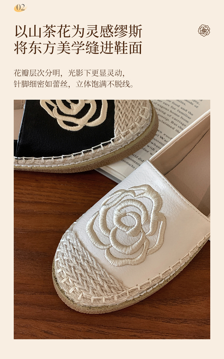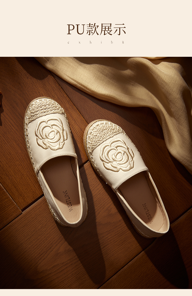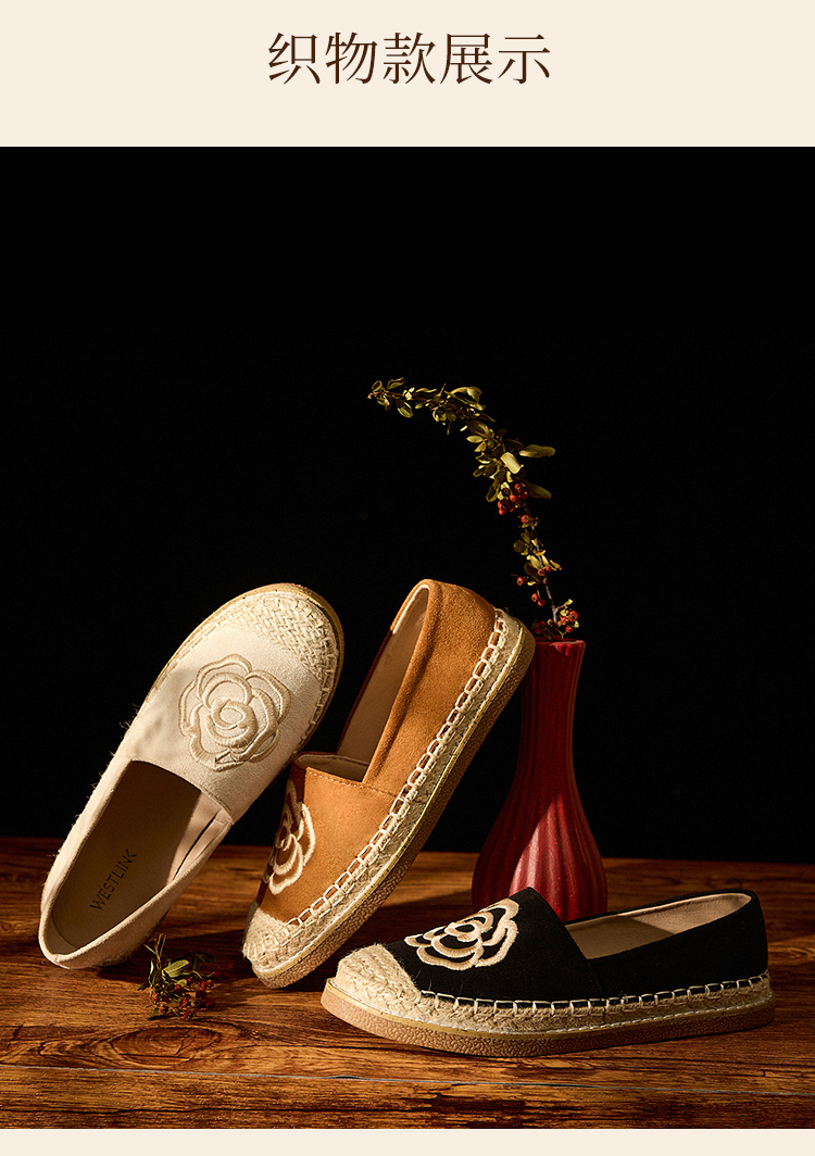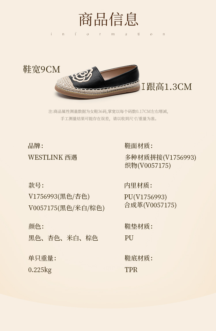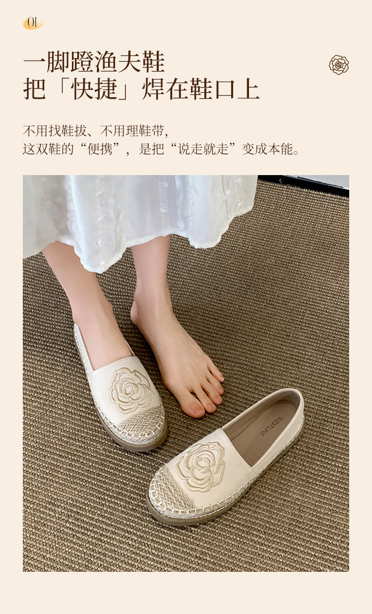 【限时秒杀】西遇一脚蹬渔夫鞋女新款秋季复古花朵小香风单鞋白色平底鞋V1756993/V0057175