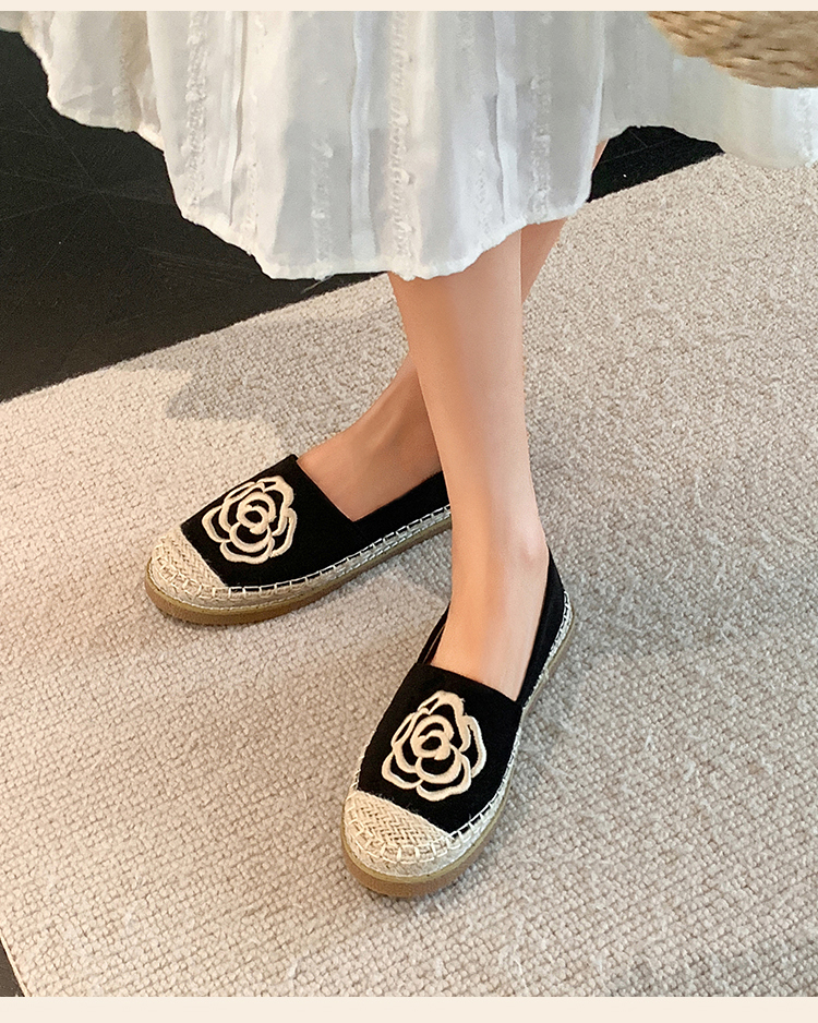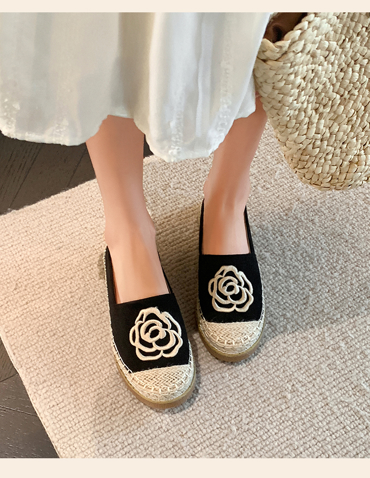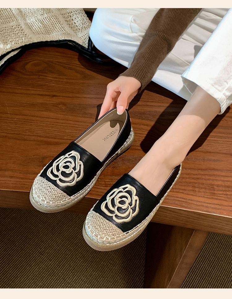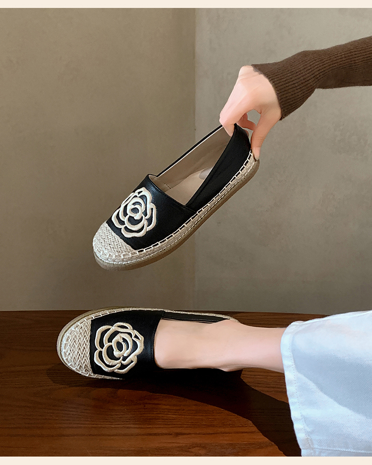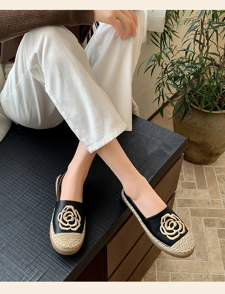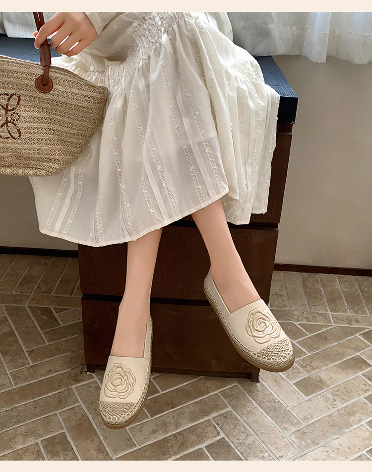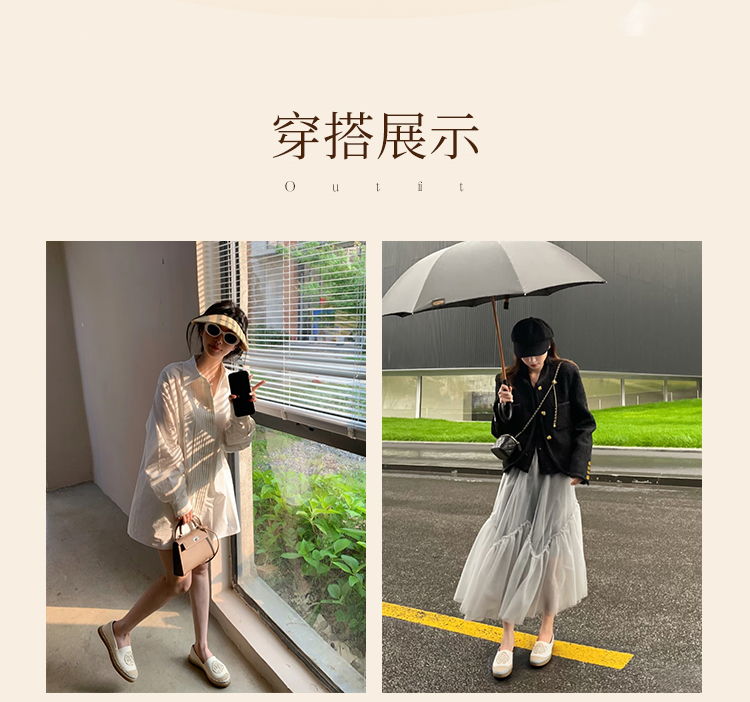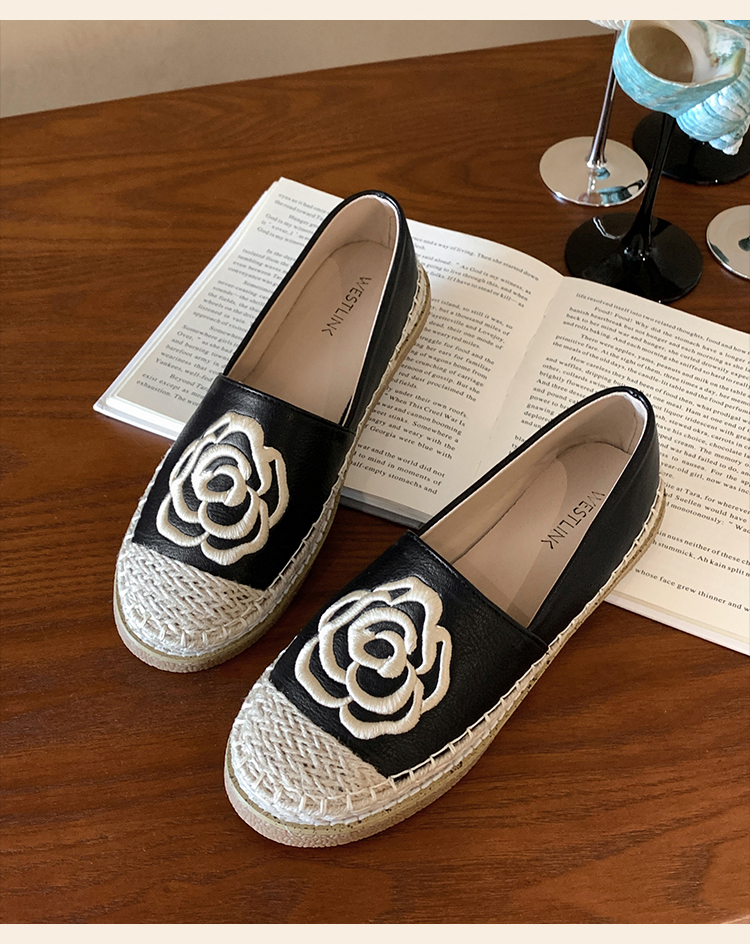 【限时秒杀】西遇一脚蹬渔夫鞋女新款秋季复古花朵小香风单鞋白色平底鞋V1756993/V0057175
