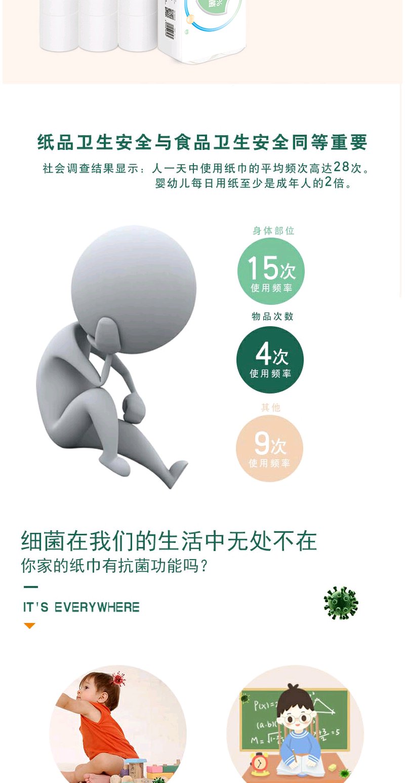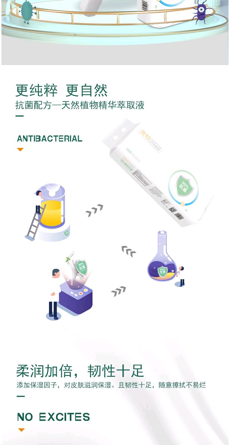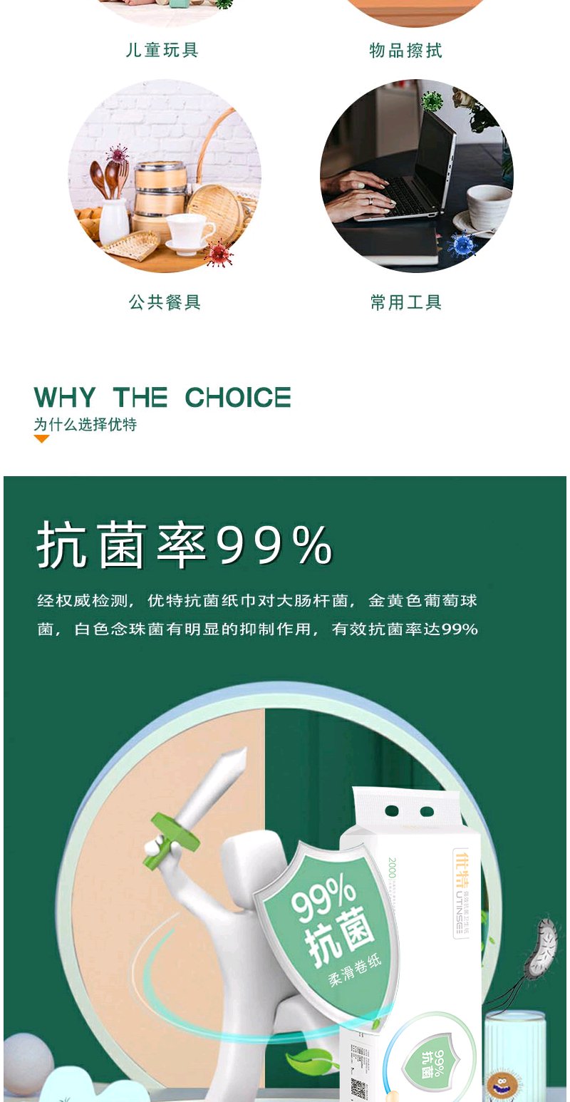 【植物萃取精华】优特抗菌卷纸植物萃取抑菌成分抑菌无刺激幼儿也能用纸巾2000g×2提12卷每提