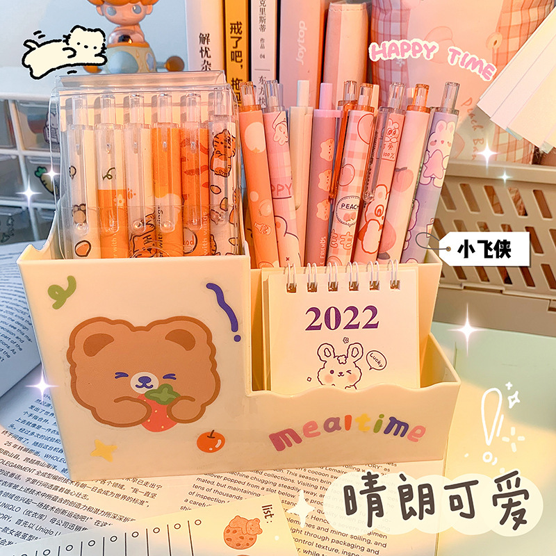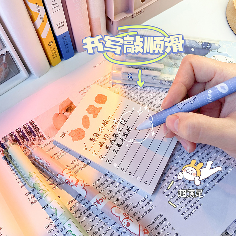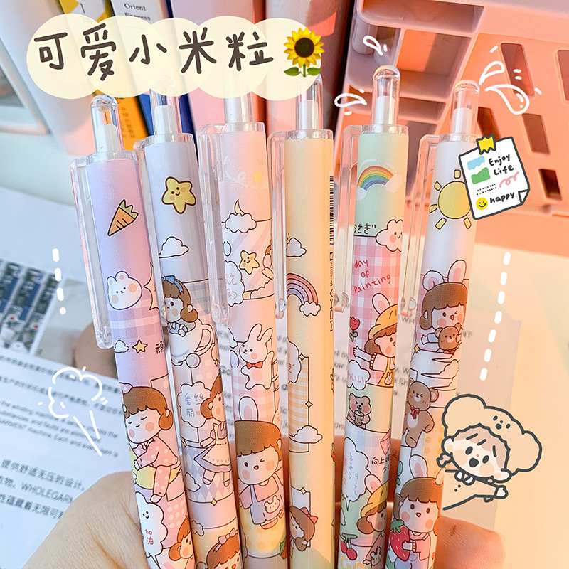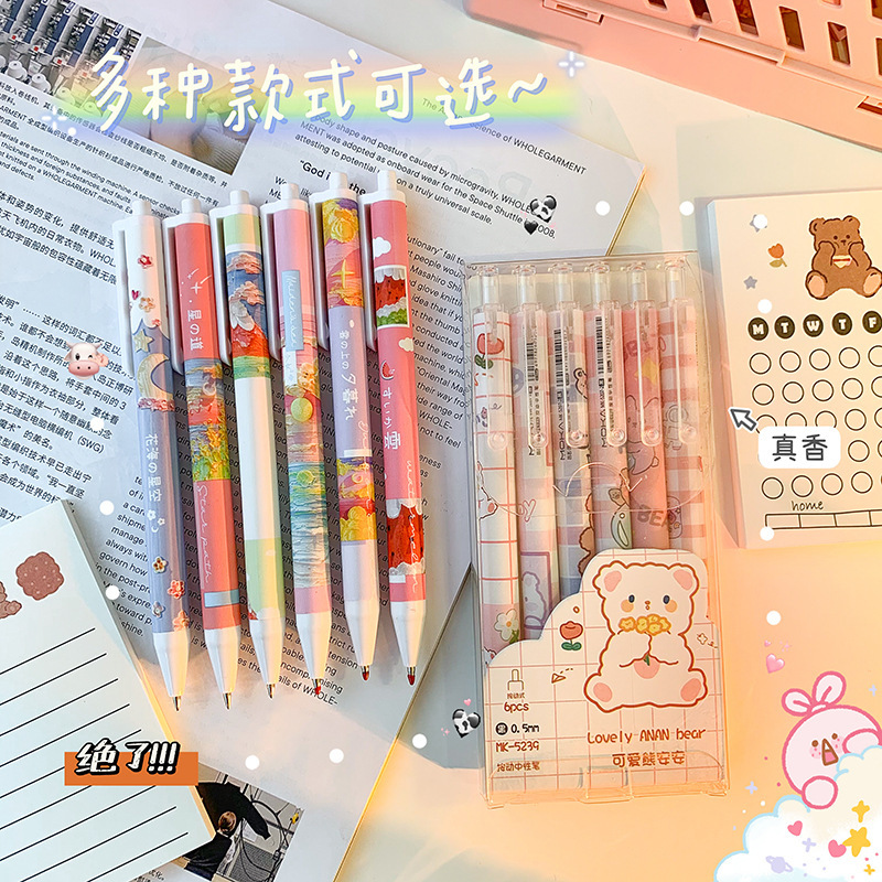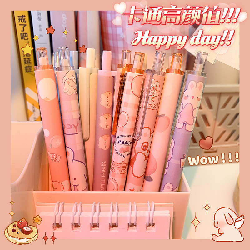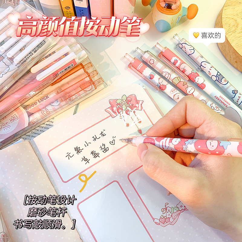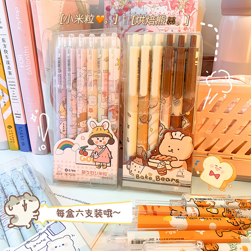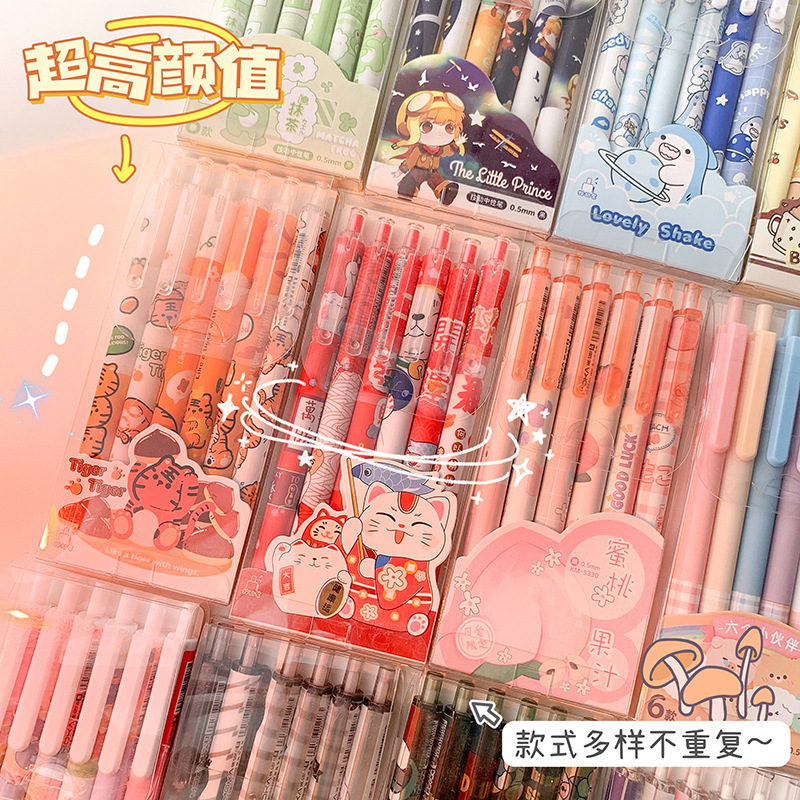 「19.9到手18支!抖音同款」PVC盒装按动中性笔6支入单盒 卡通可爱高颜值按压笔黑水0.5学生刷题笔文具