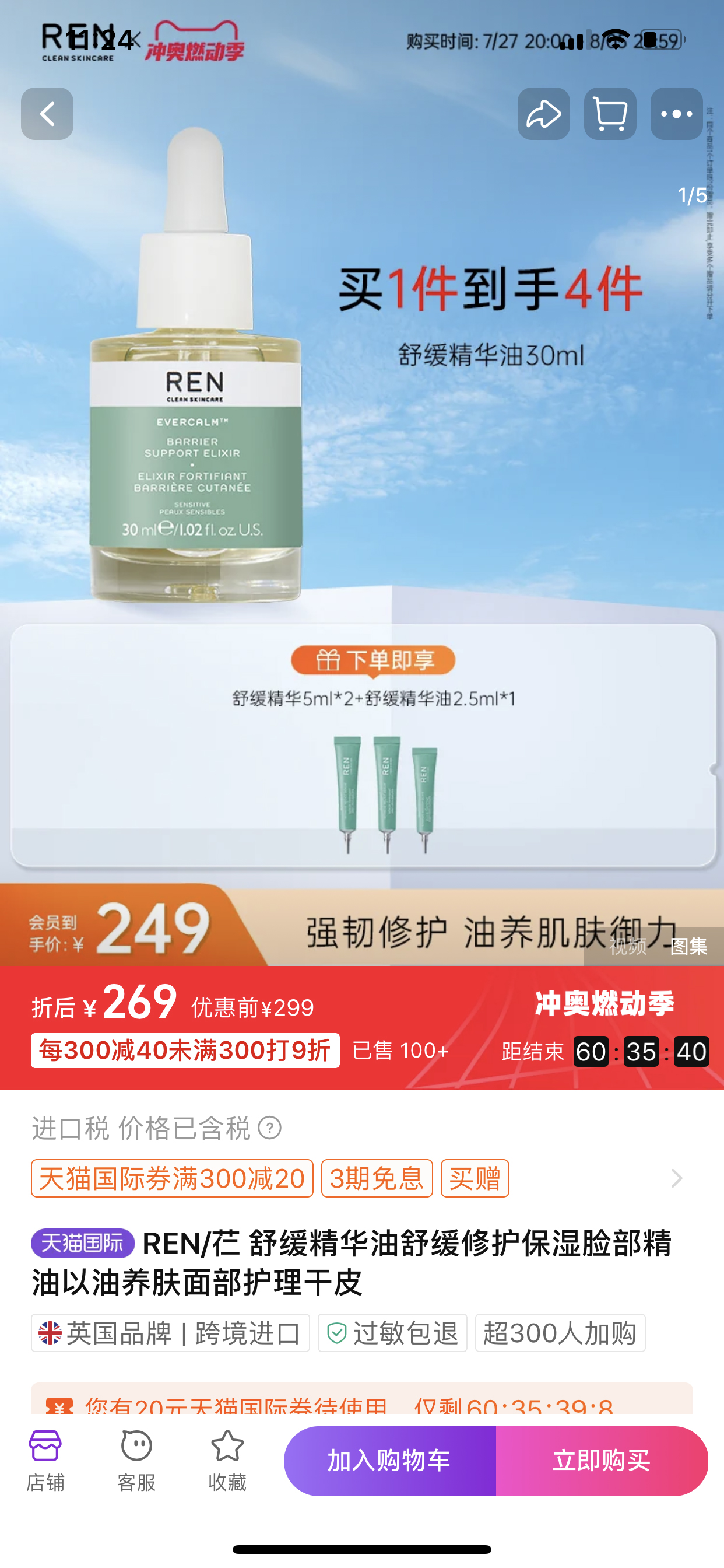 【品名】REN/芢舒缓精华油30ml