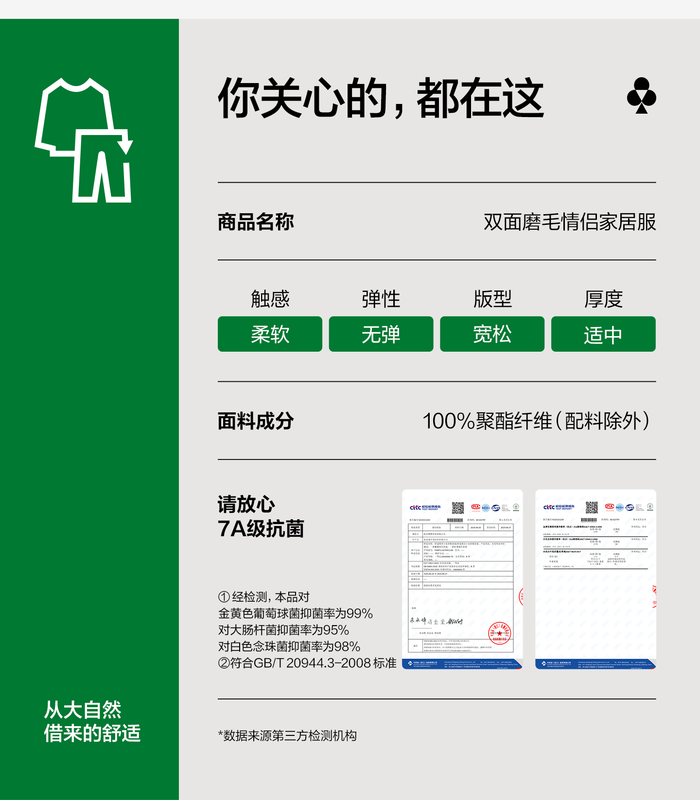 【新品上新】有棵树7A抗菌加绒磨毛长袖情侣睡衣家居服套装-S1065