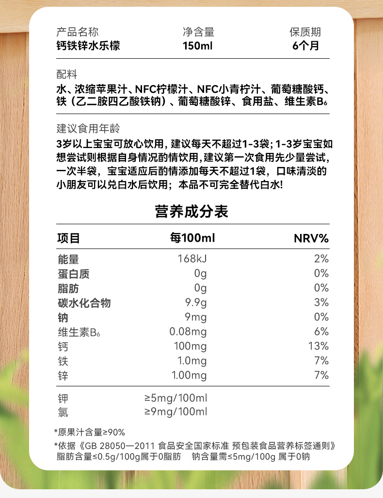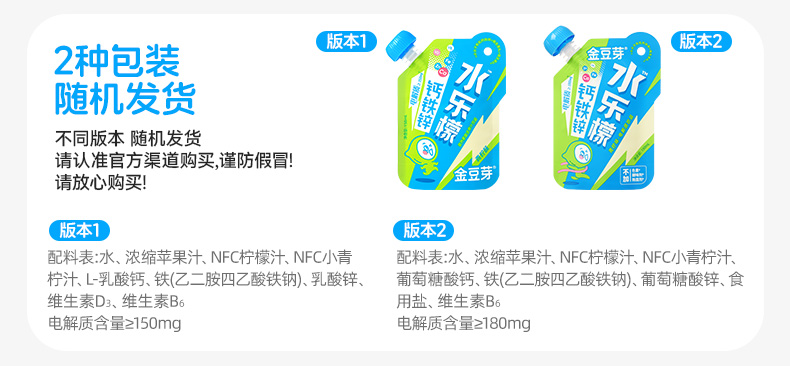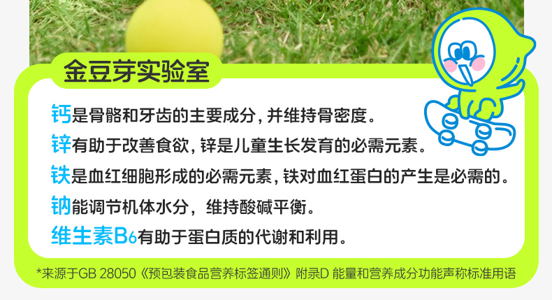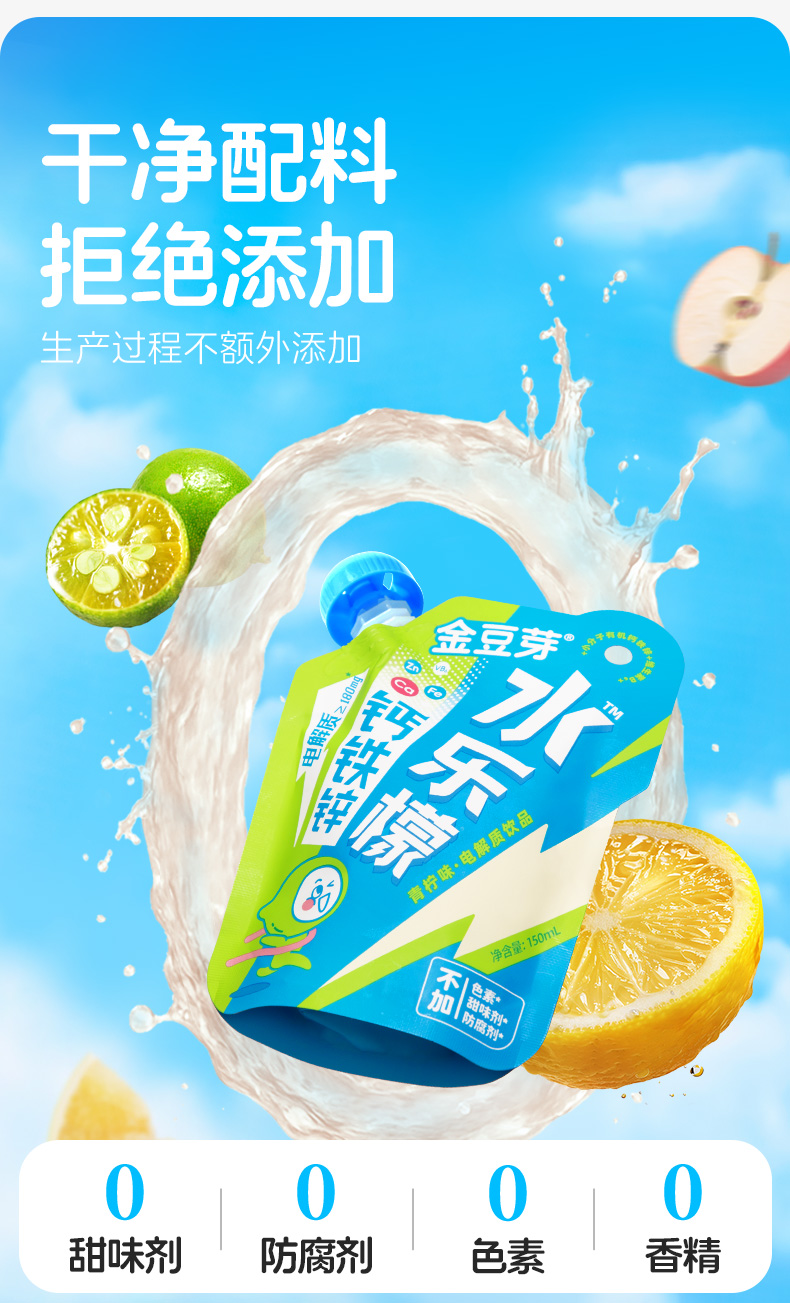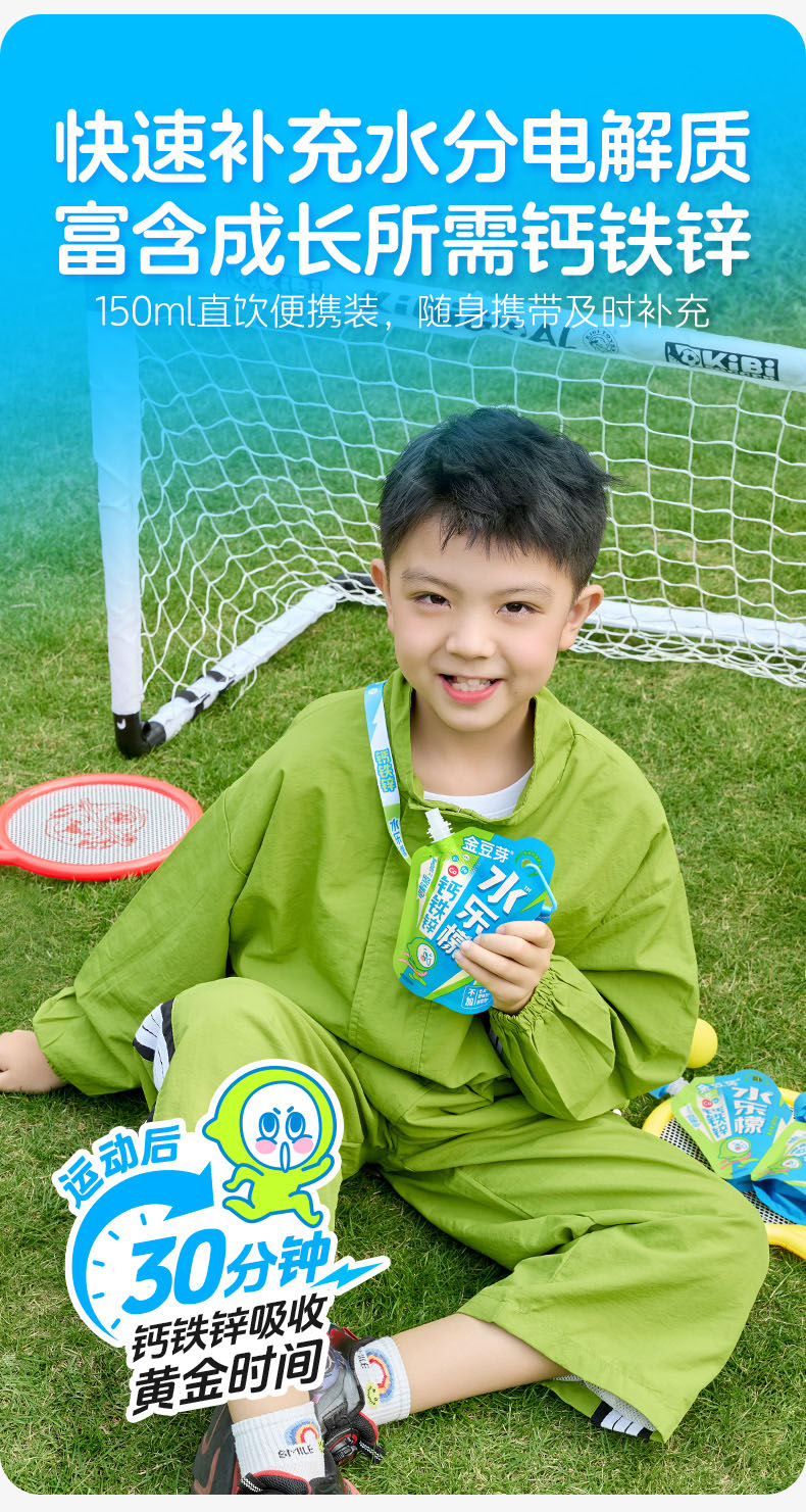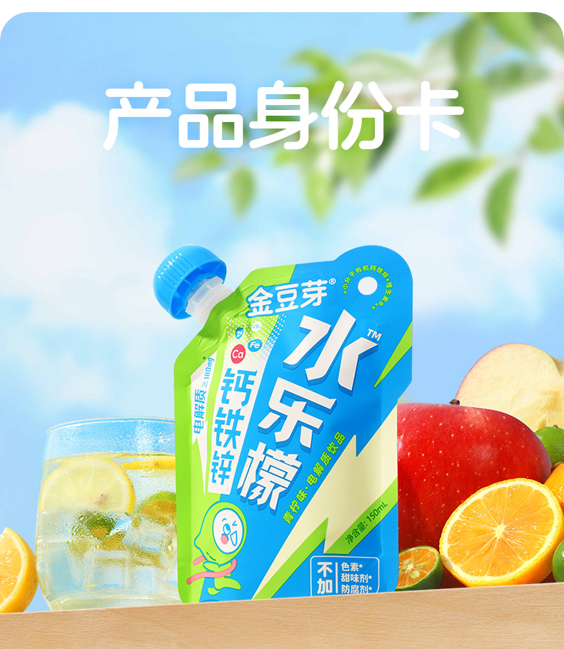 【限量包包加赠】金豆芽钙铁锌水乐檬儿童运动电解质饮品 补充钙铁锌电解质150ml/袋