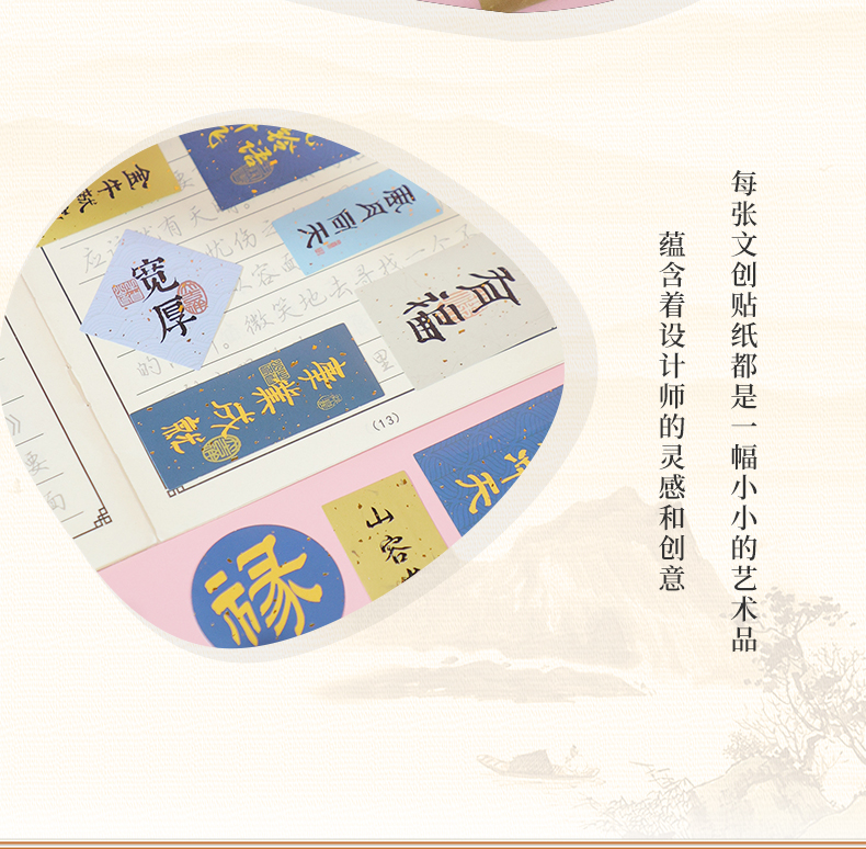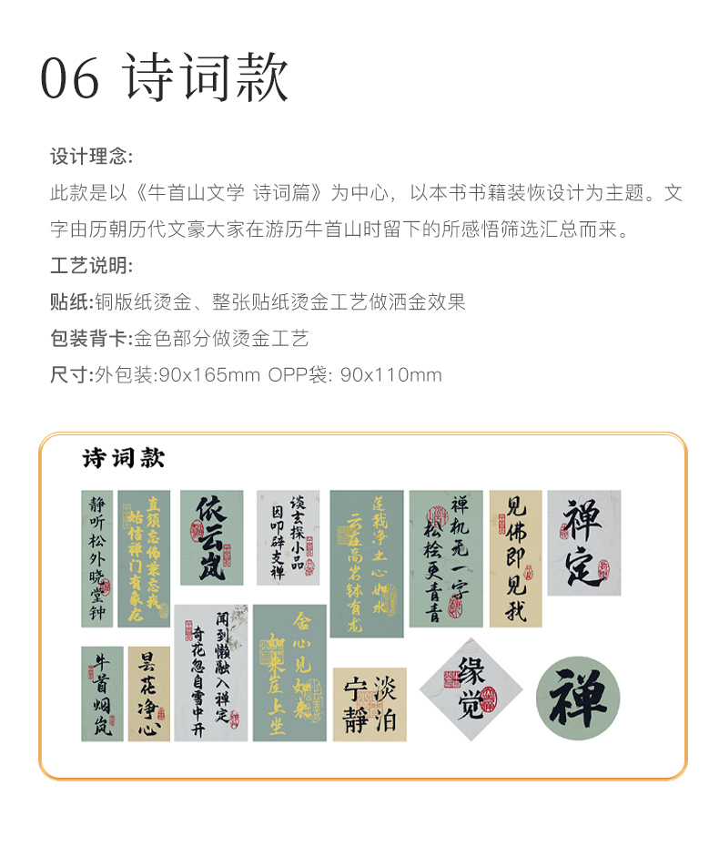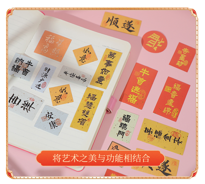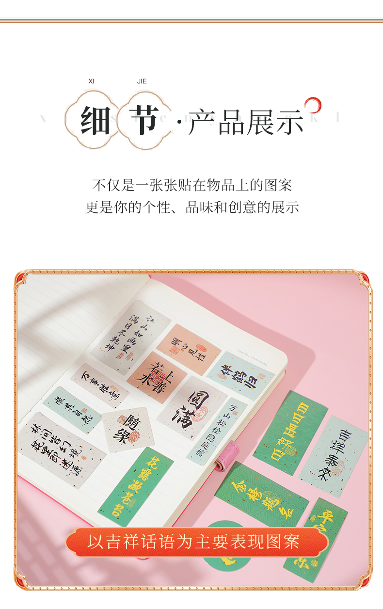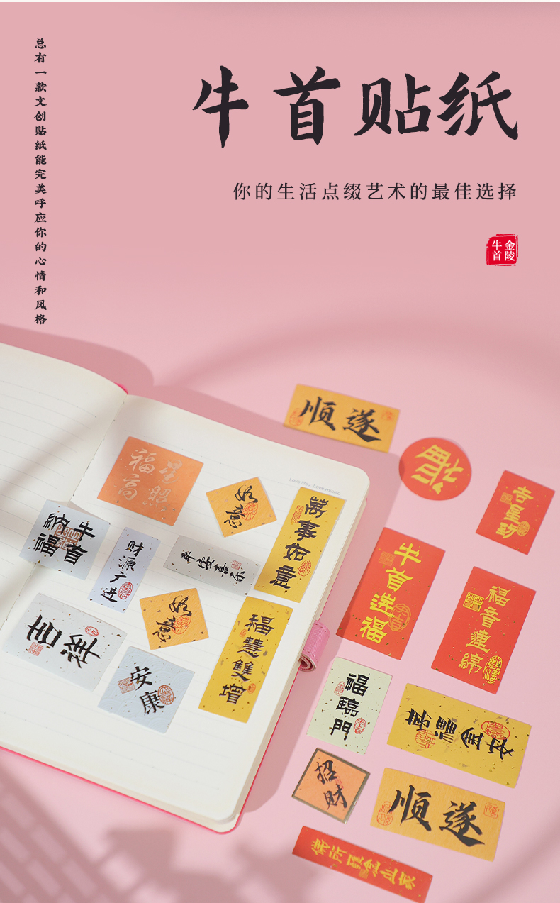 牛首纳福系列贴纸文字贴纸防水装饰小图案笔记本水杯电脑手机壳ipad防水贴画无痕不留胶