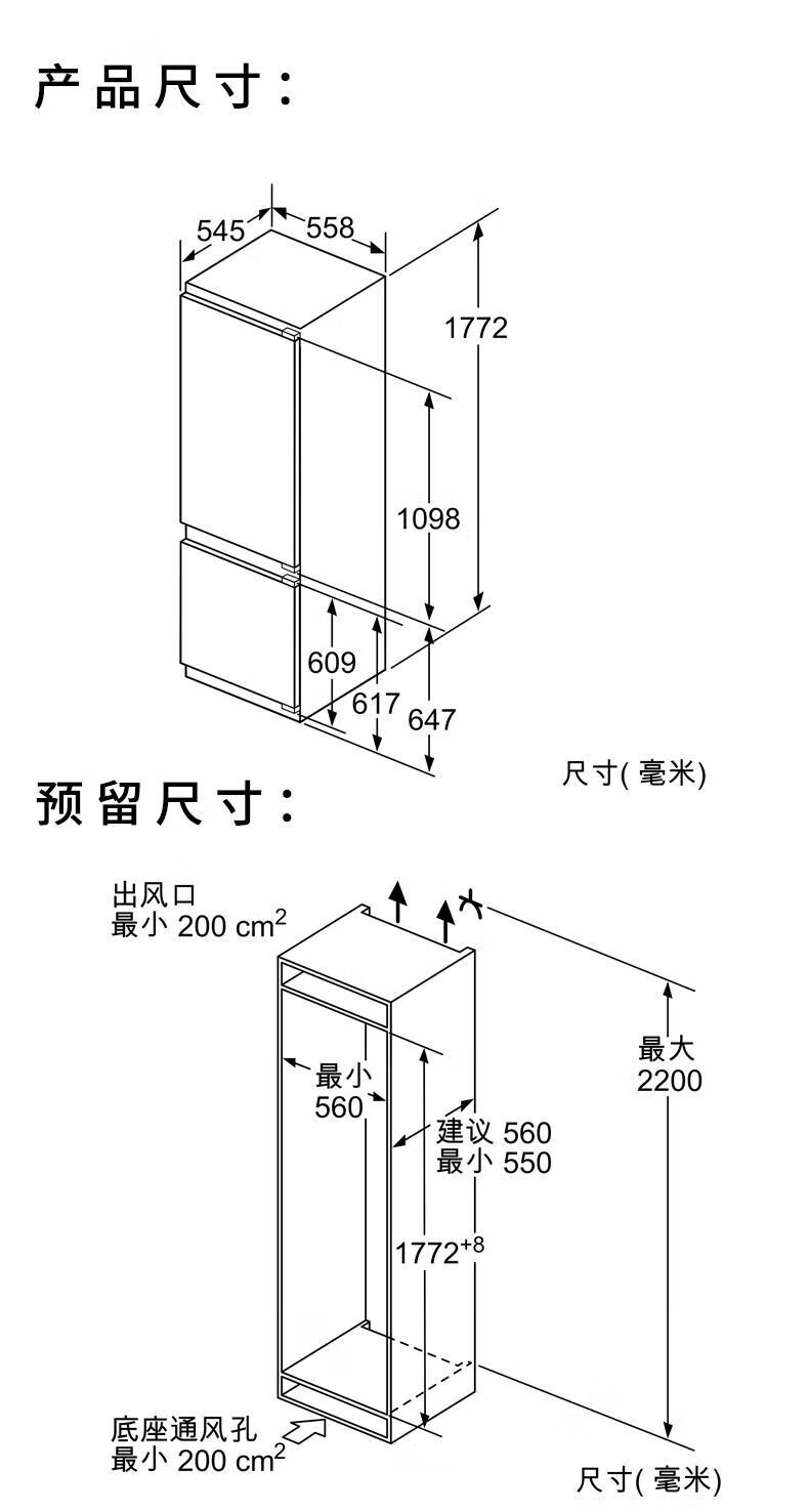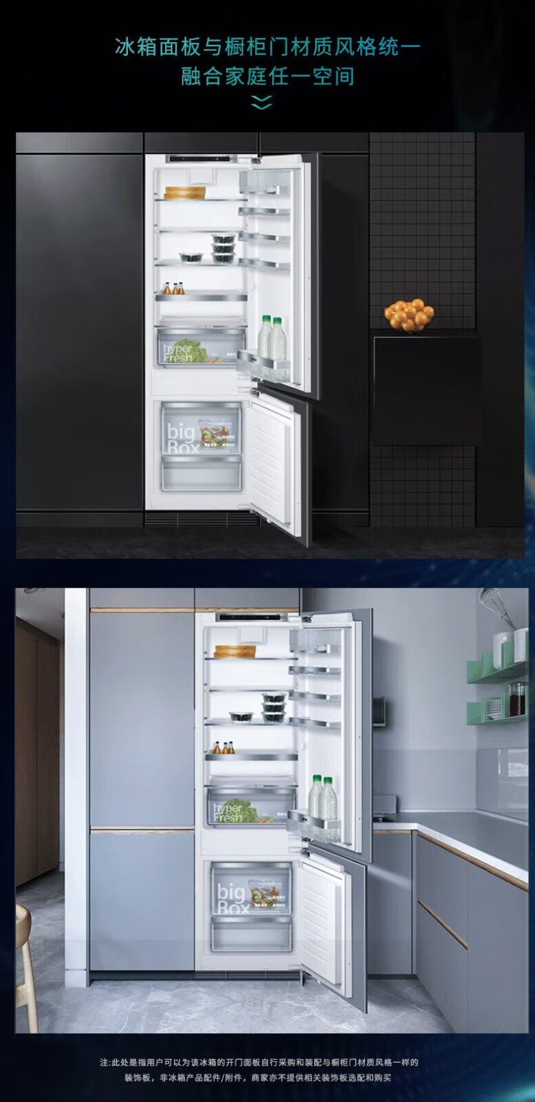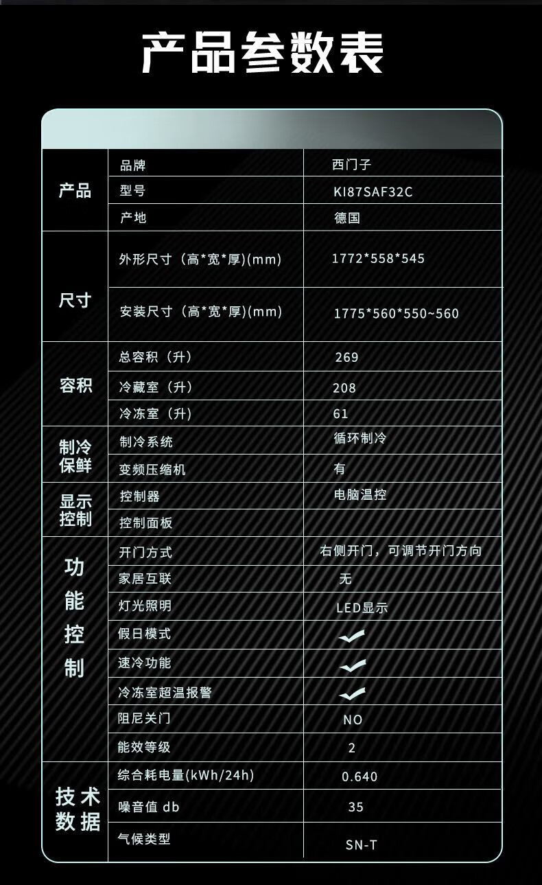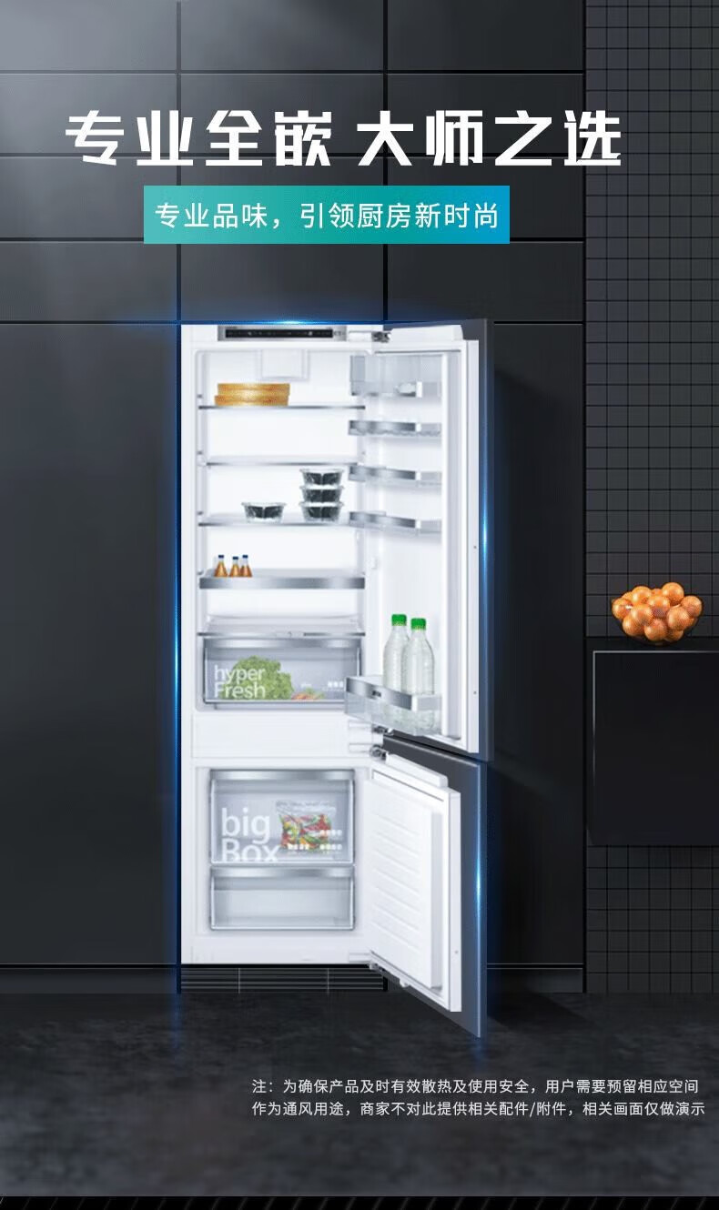 西门子(SIEMENS)德国原装进口269L两门全嵌入式冰箱 面板可定制 KI87SAF32C*2台组合