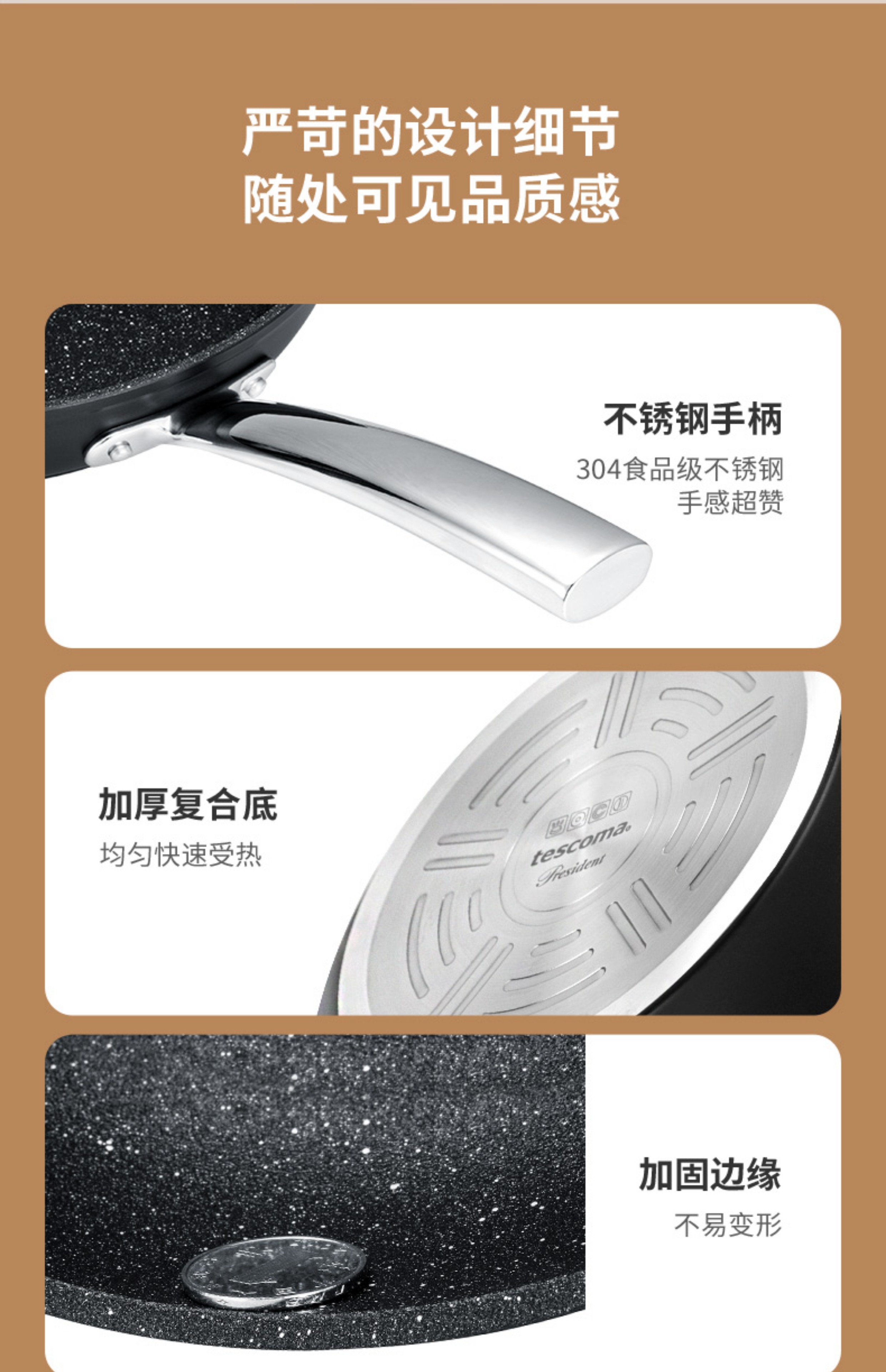 捷克进口/tescoma PRESIDENT系列 石面不粘炒锅30cm/32/炒锅家用可用电磁炉