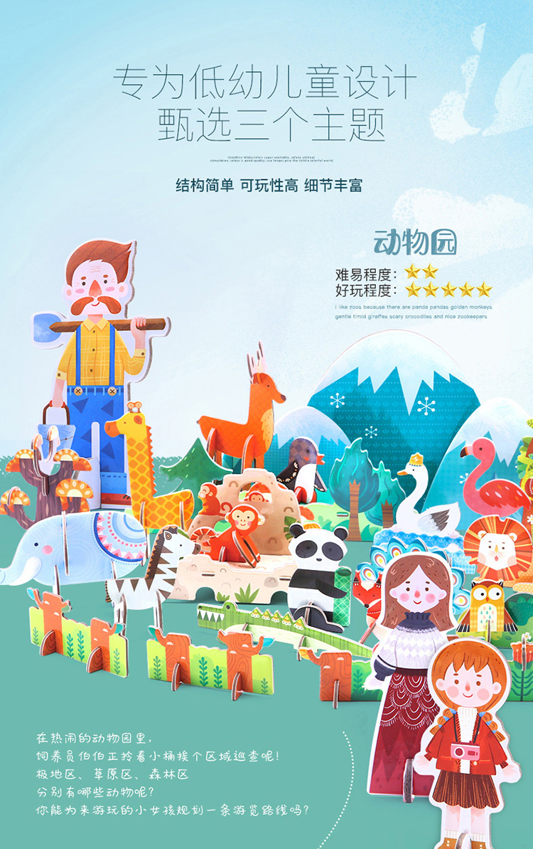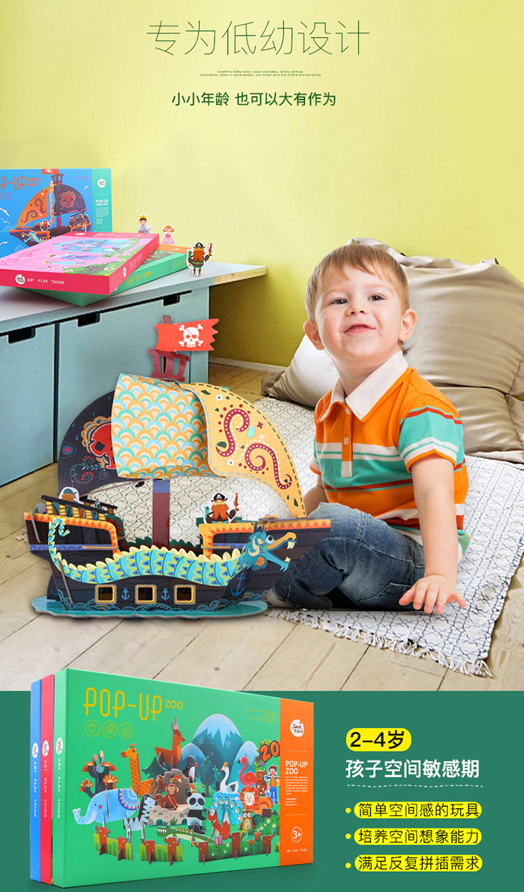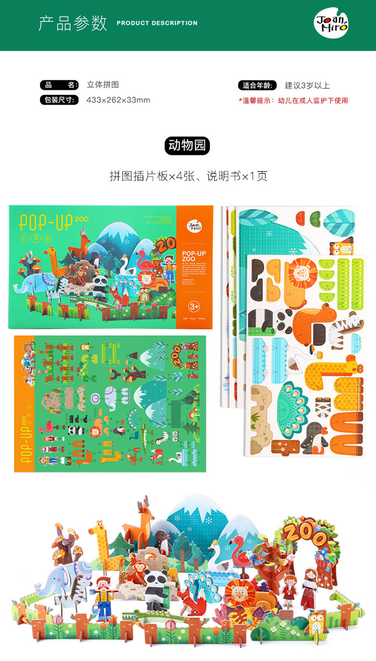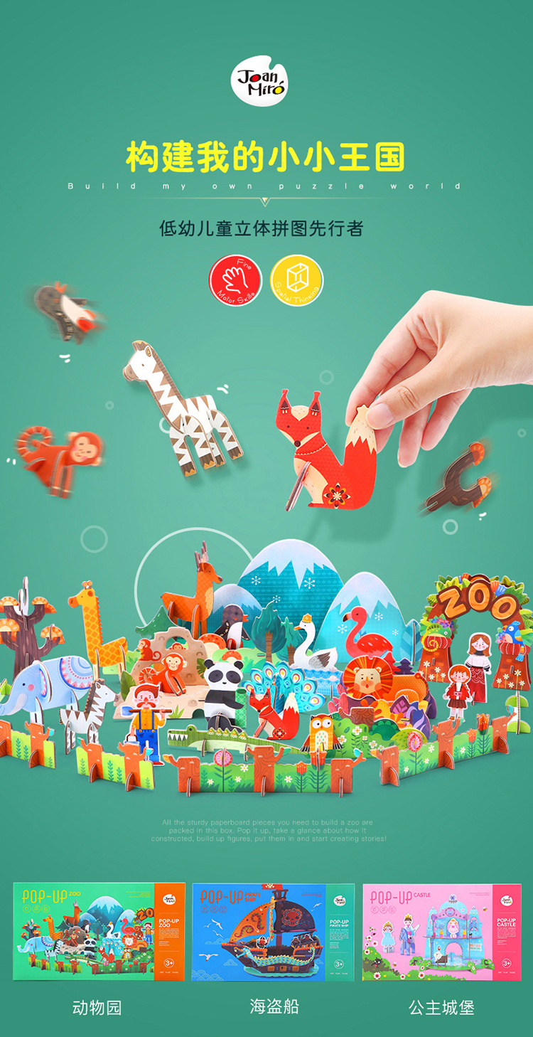 joanmiro美乐儿童3D立体搭建纸质拼图婴幼儿DIY益智拼板儿童纸质立体拼图