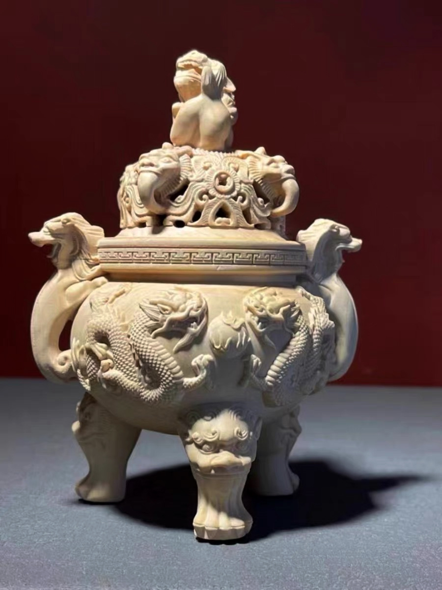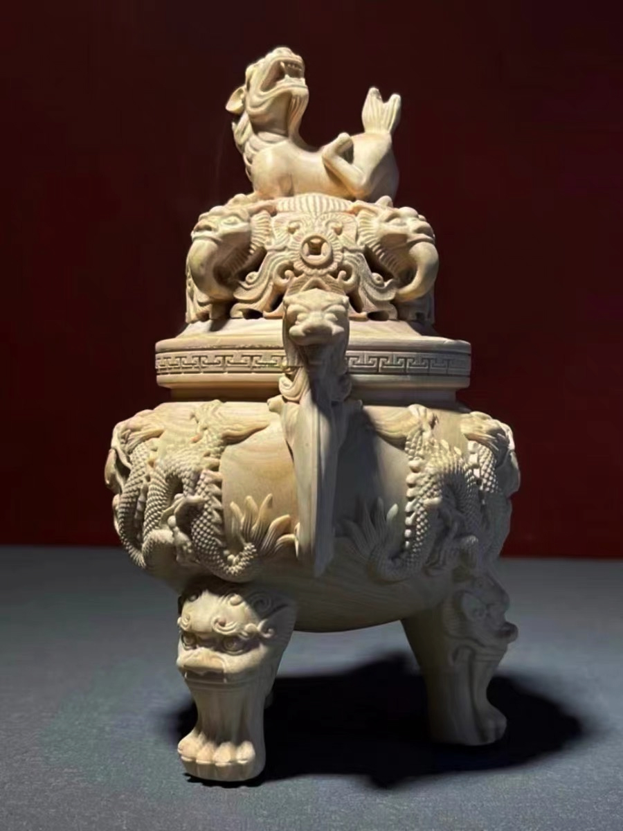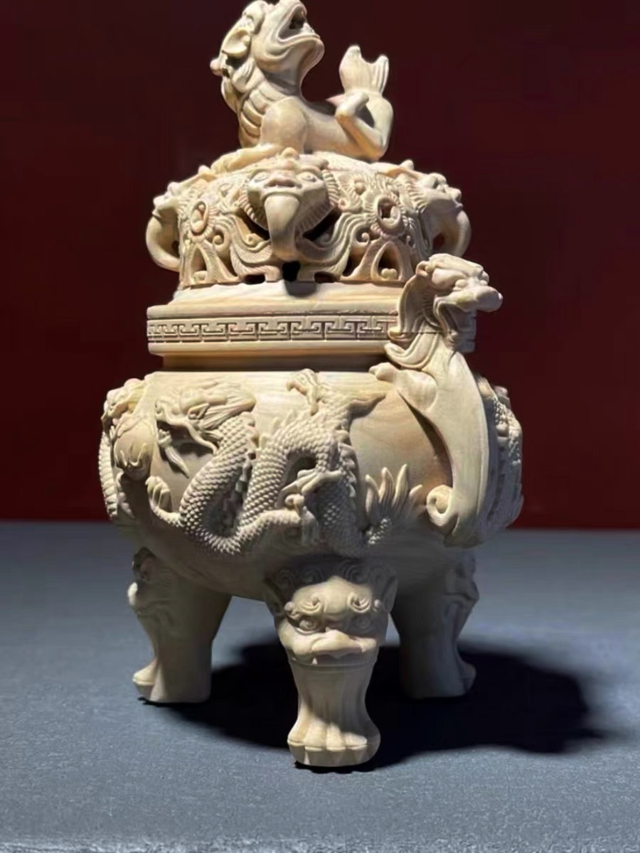 双龙戏珠°木雕香炉
