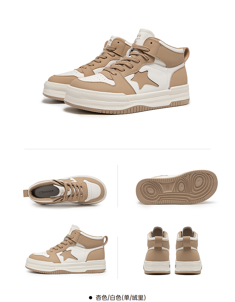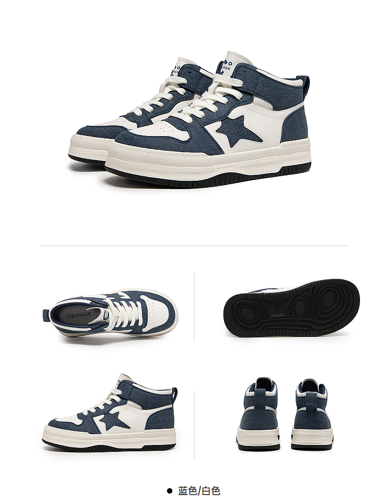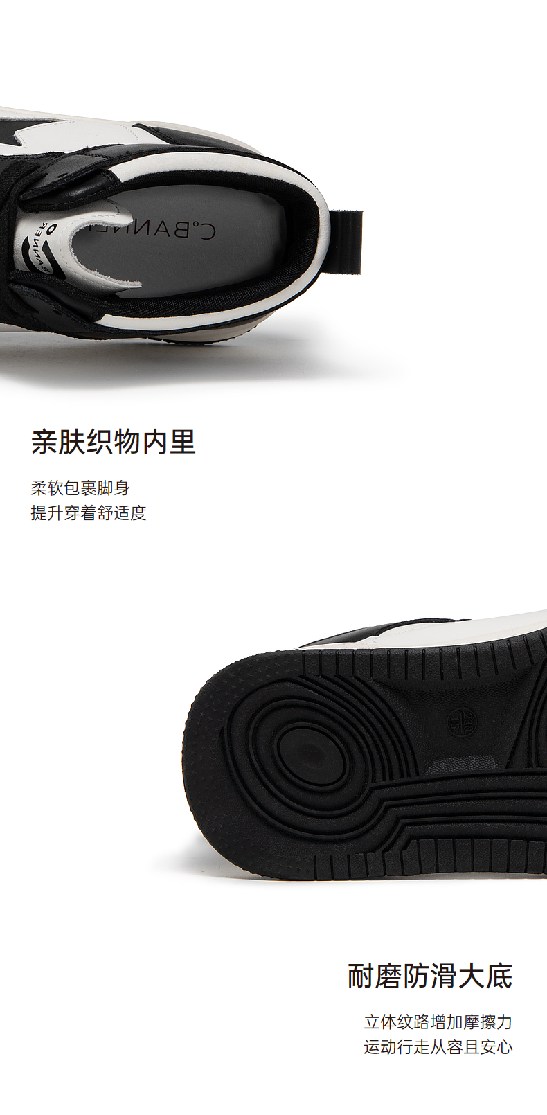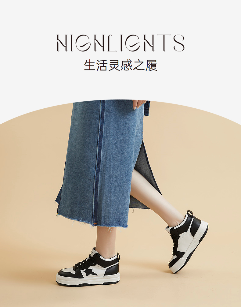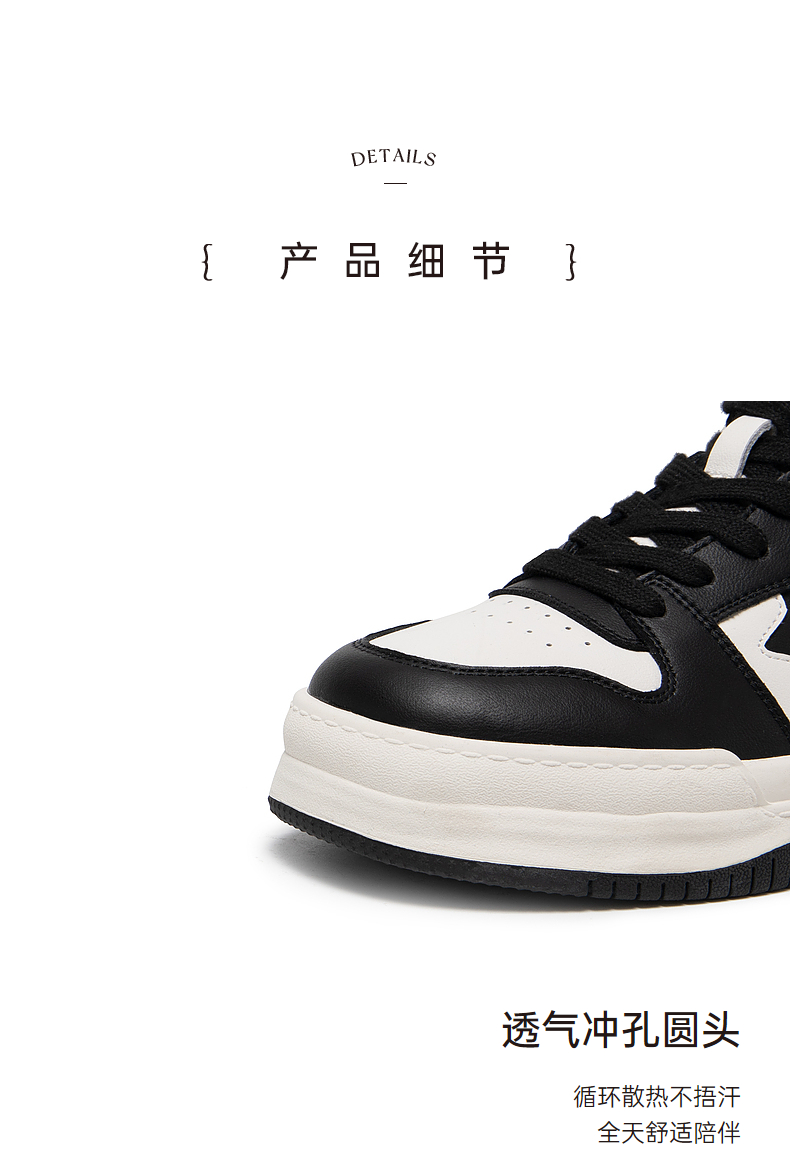 千百度女鞋厚底高帮黑白鞋秋冬增高板鞋舒适休闲运动鞋A23512507