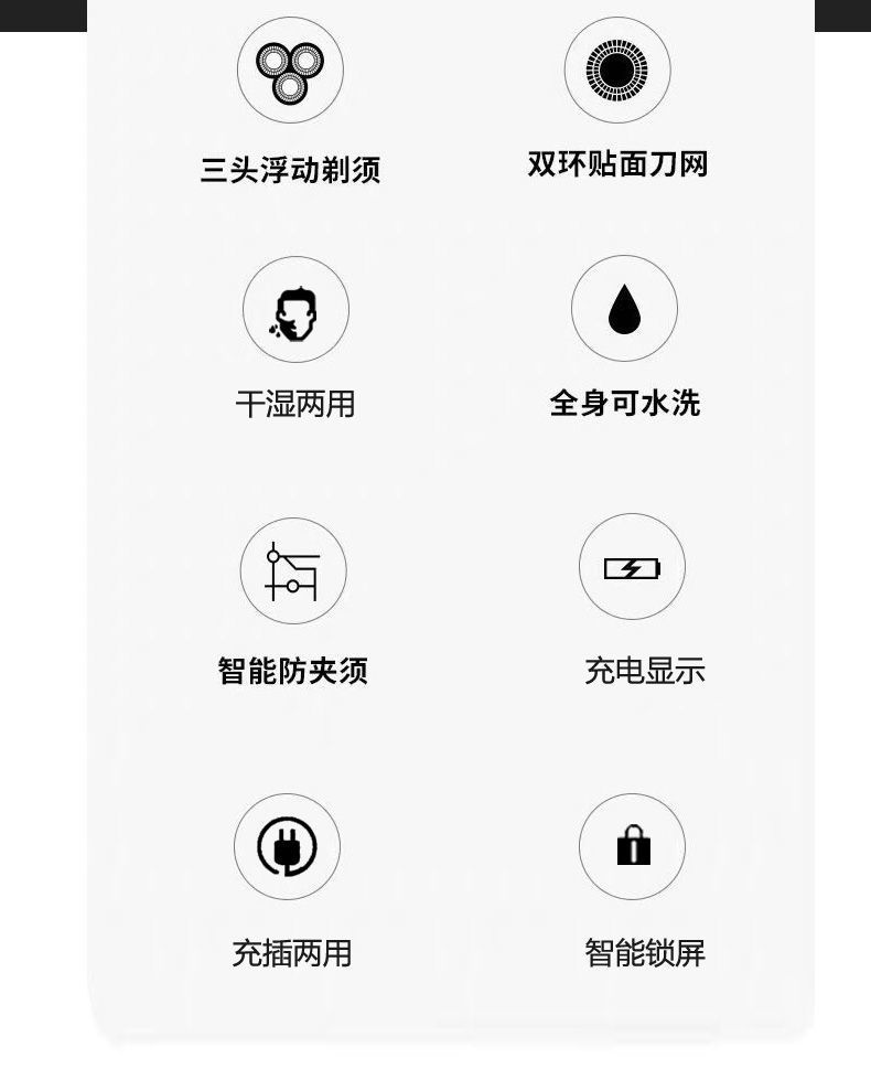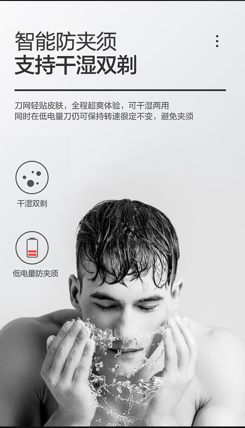 「三头浮动!全身水洗」新款智能男士剃须刀 电动刮胡刀充电式剃胡子刀便携胡须刀全身水洗居家日用