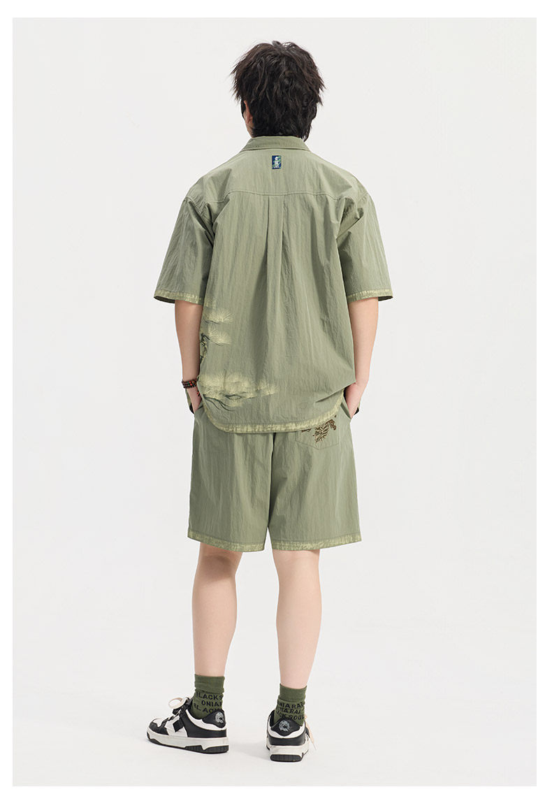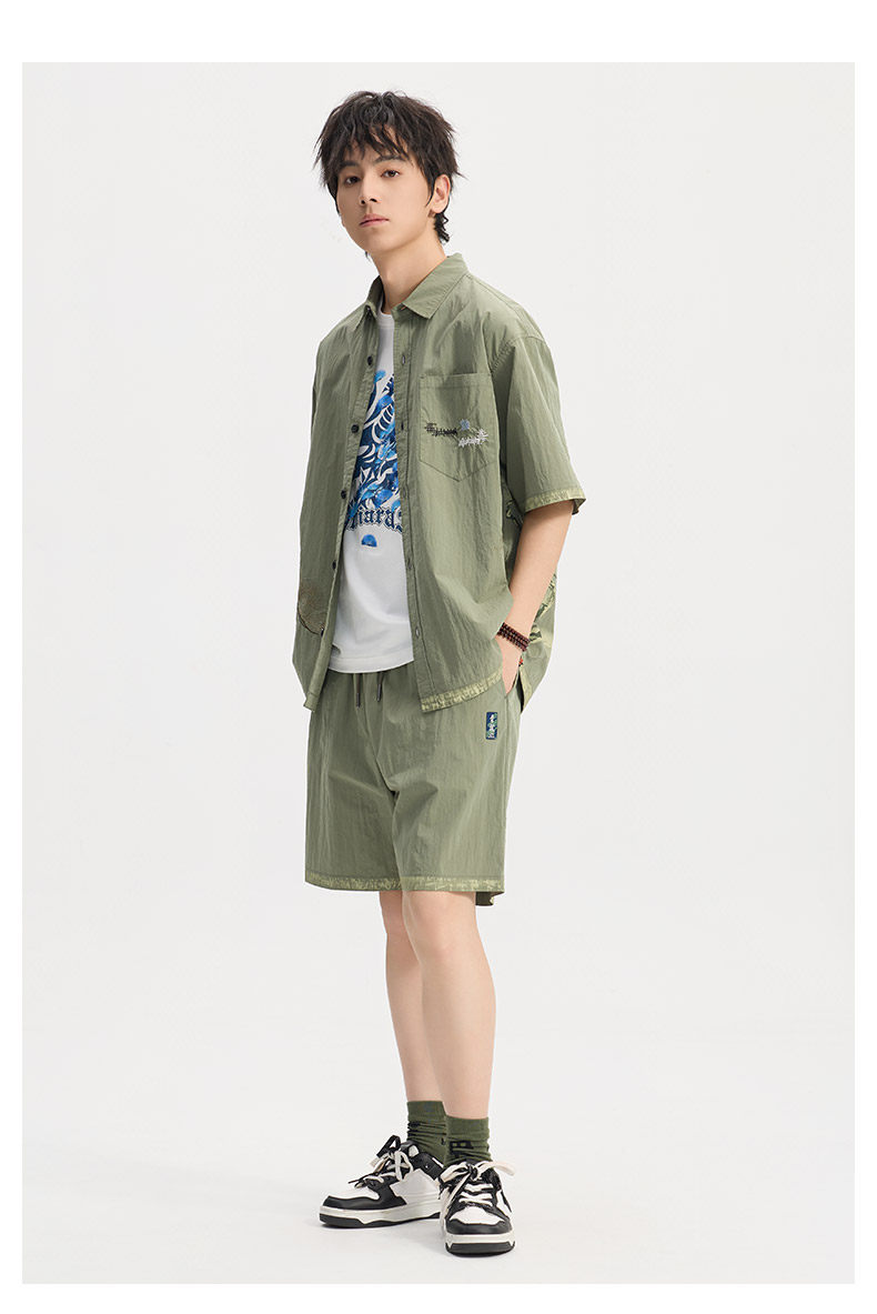 ONIARAI/鬼洗26春夏新品鬼洗常青松刷色宽松中裤休闲裤男 26B0542