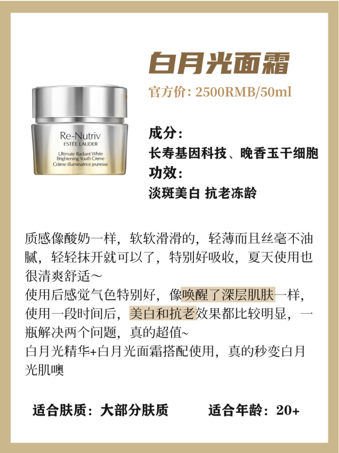 雅诗兰黛冻龄白金白月光面霜