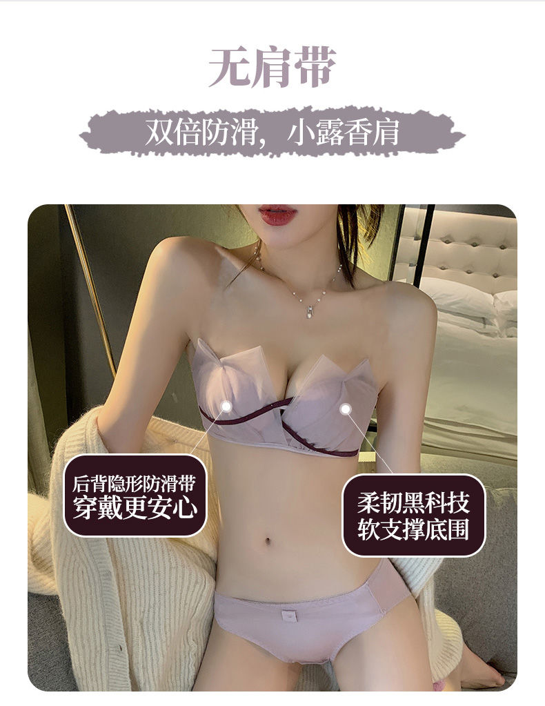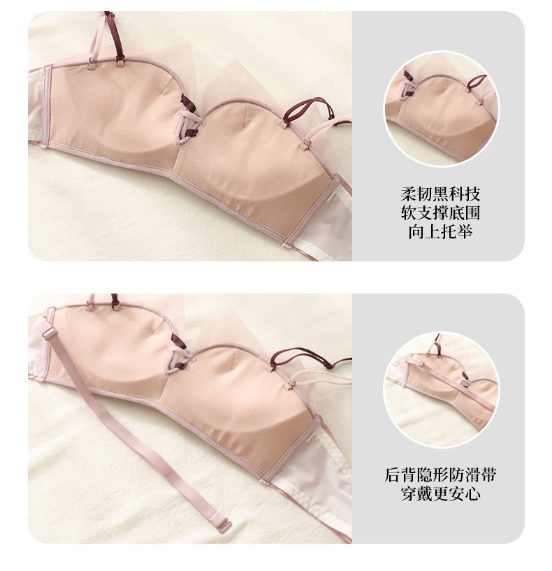 【韩系、美系两种风格、多样穿法、第二件免费送~!】新款内衣女无钢圈无肩带抹胸露肩少女聚拢加厚百搭文胸