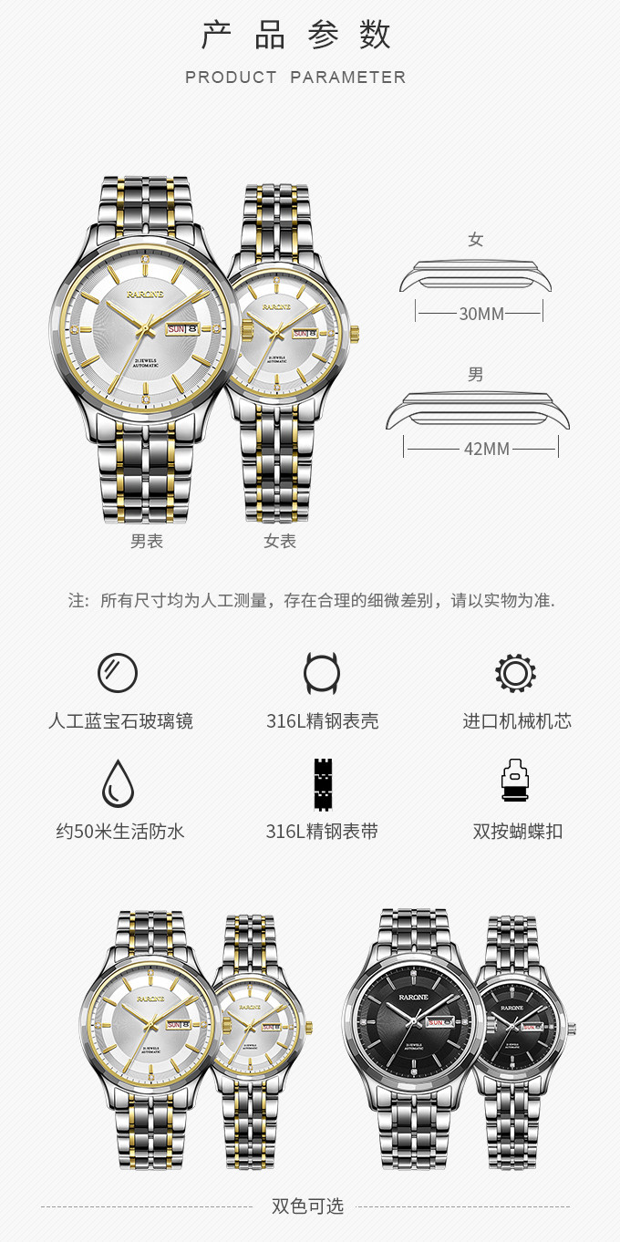 RARONE雷诺表高光系列机械对表880091