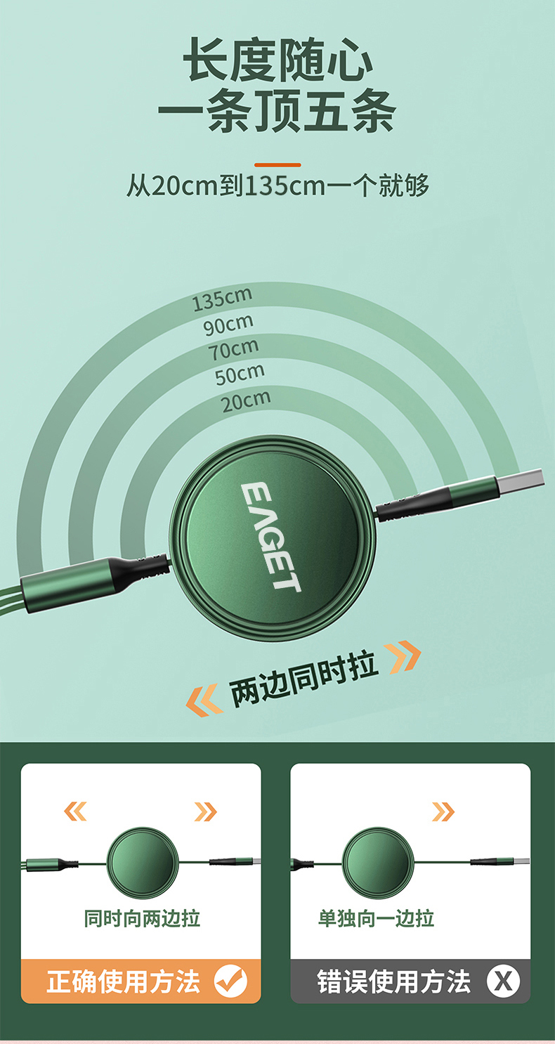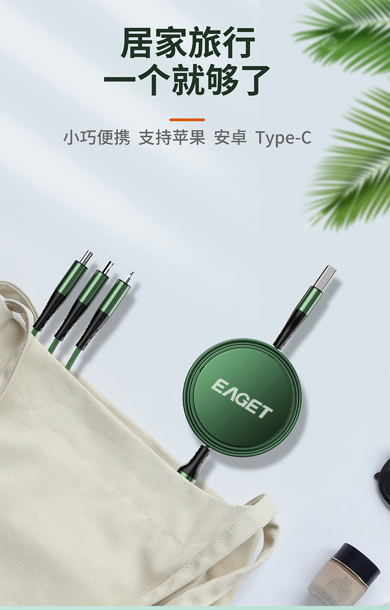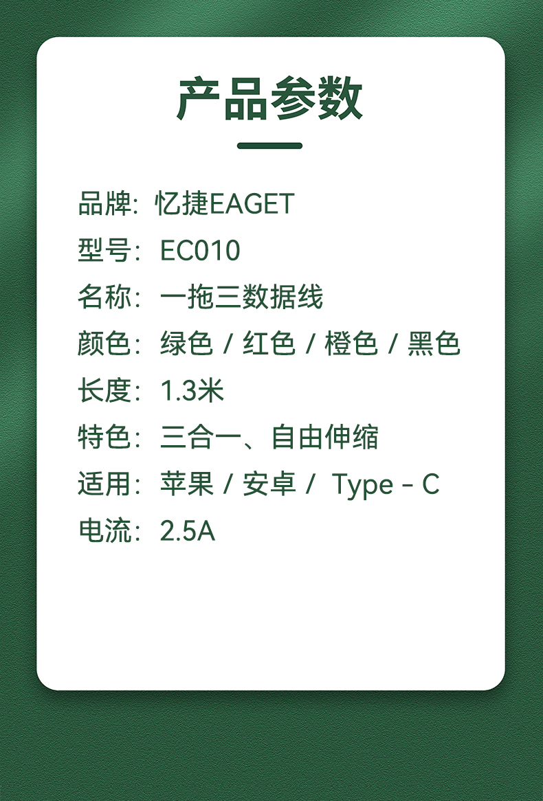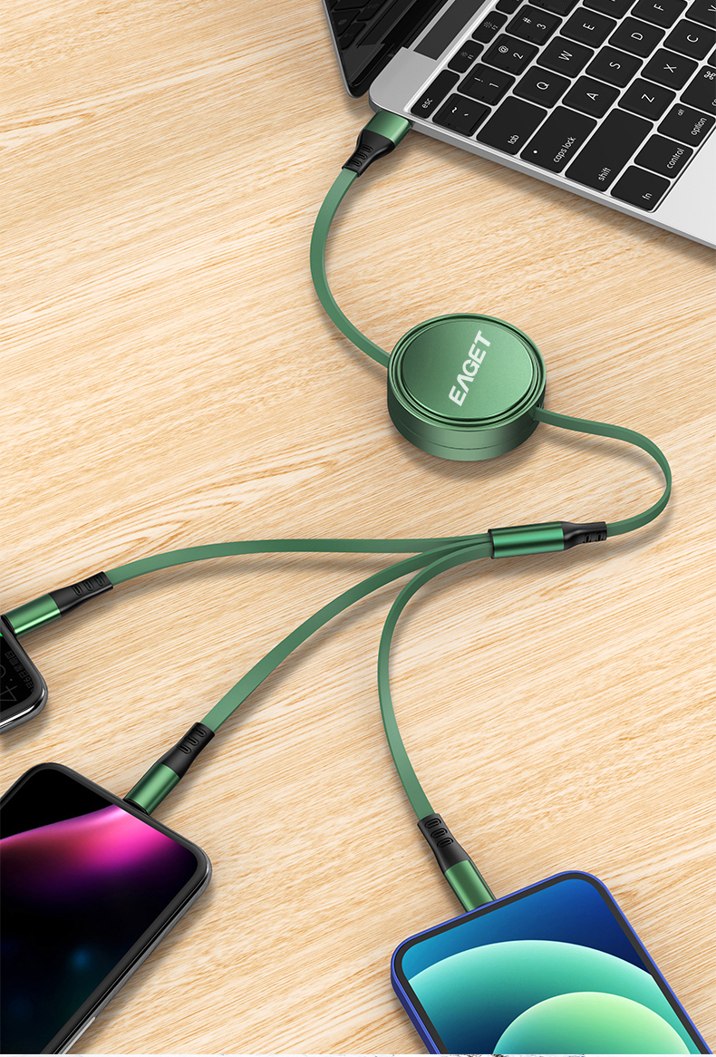 忆捷EC010数据线三合一充电器线伸缩一拖三车载快充线适用苹果12Type-C华为安卓手机