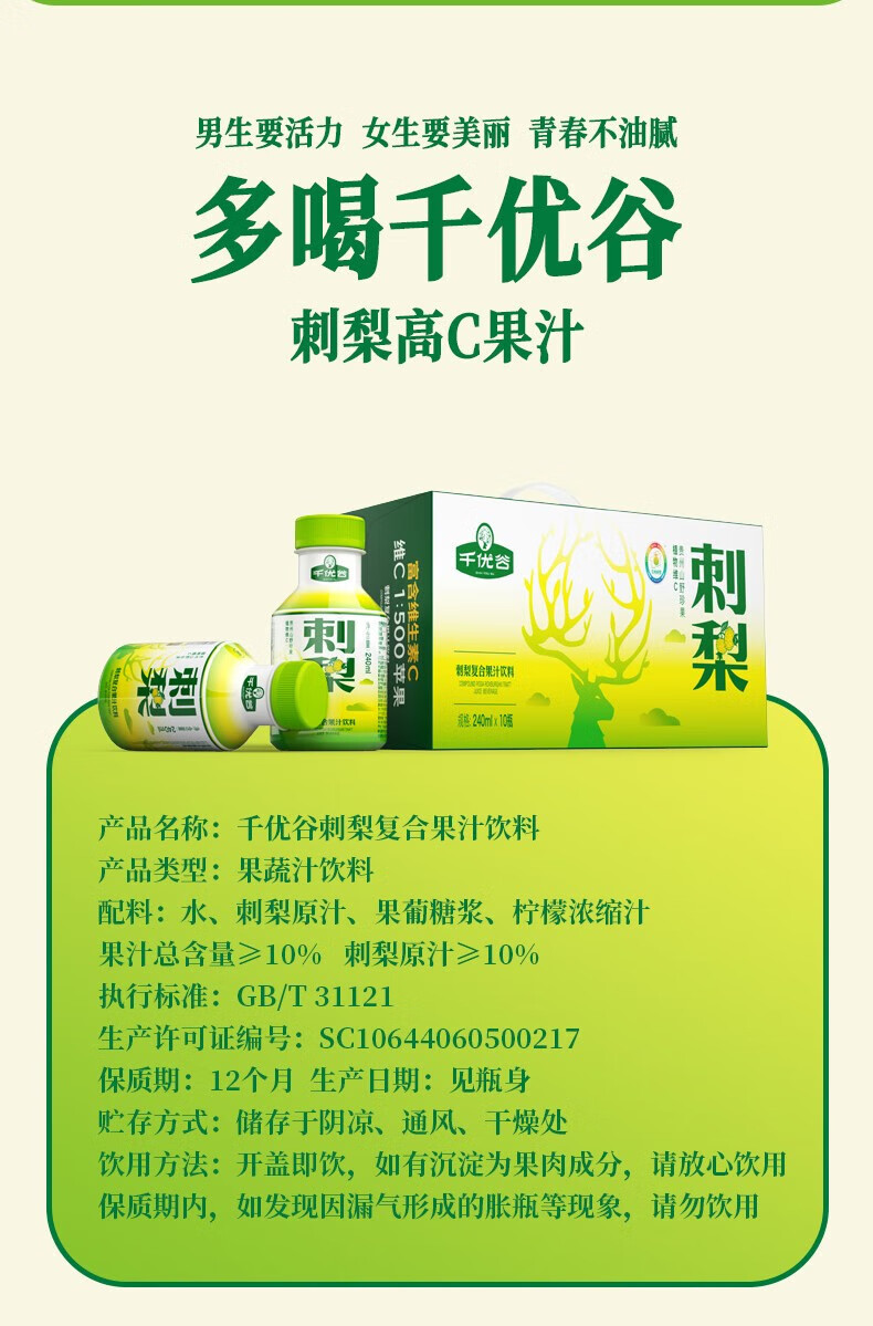 【千优谷】刺梨复合果汁饮料240ml*10瓶