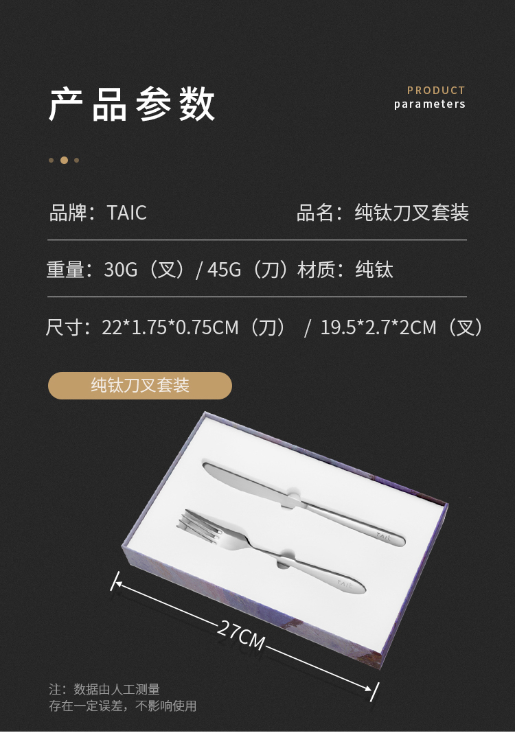 TAIC太可纯钛西餐刀叉套装/水果叉(皓月银)