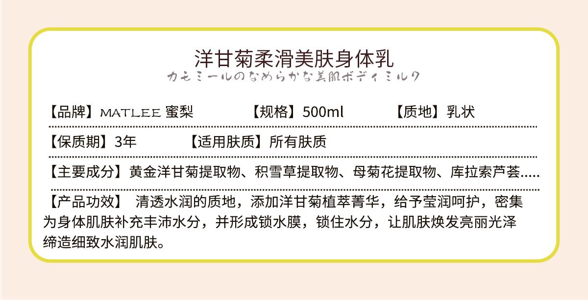 【中欧班列】日本蜜梨品牌身体乳 洋甘菊柔滑美肤身体乳 500ml/瓶
