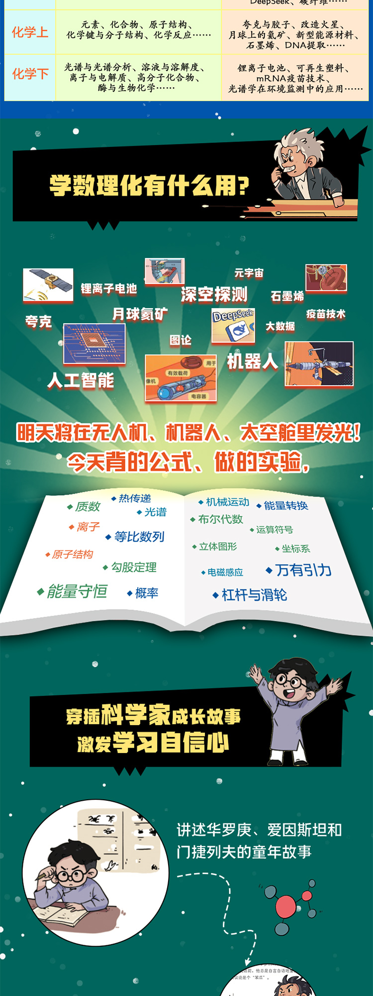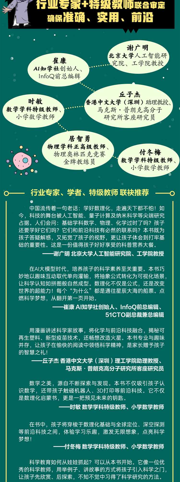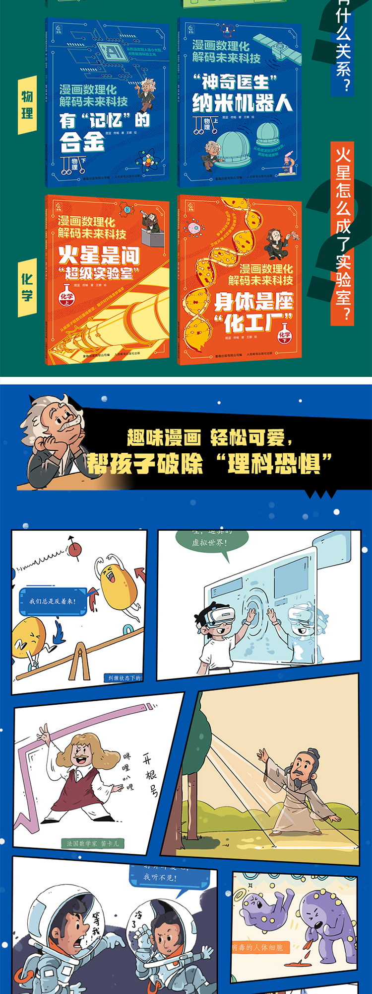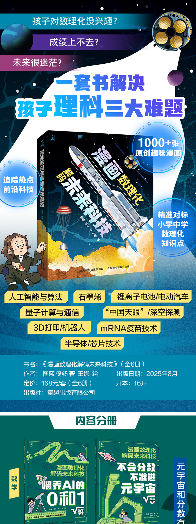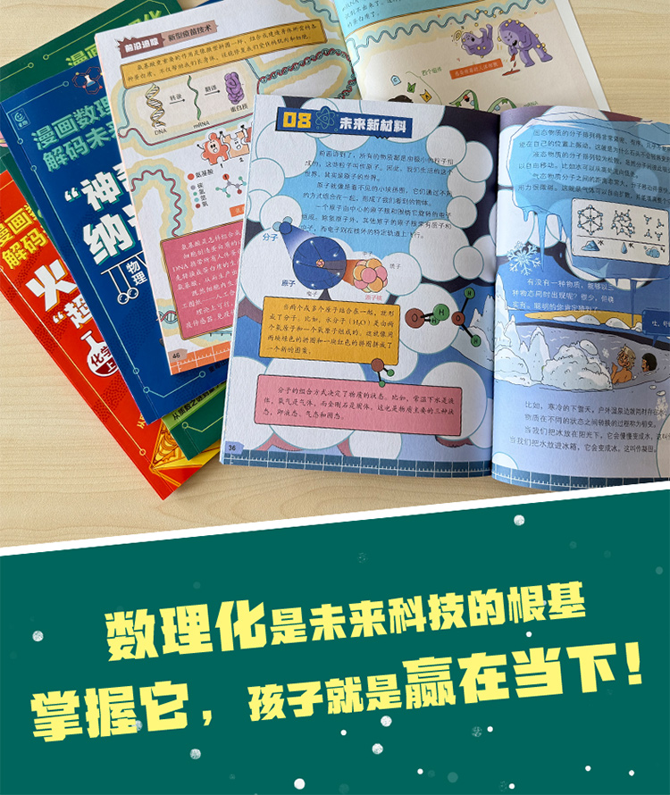 《漫画数理化解码未来科技》全6册 7-15岁 近300页图文内容 1000+幅趣味原创漫画 精准对标数理化知识点 特级教师和行业专家联合审定 确保准确、实用、前沿