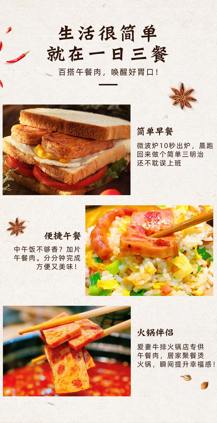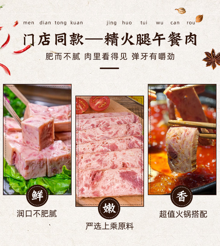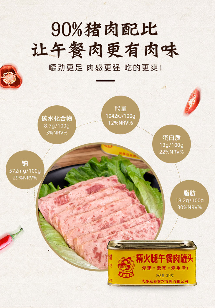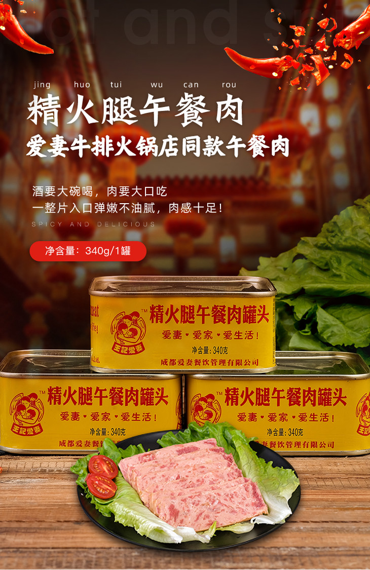 爱妻牛排火锅 精火腿午餐肉340g*3罐一款你能真正吃到肉的午餐肉 [福利品]