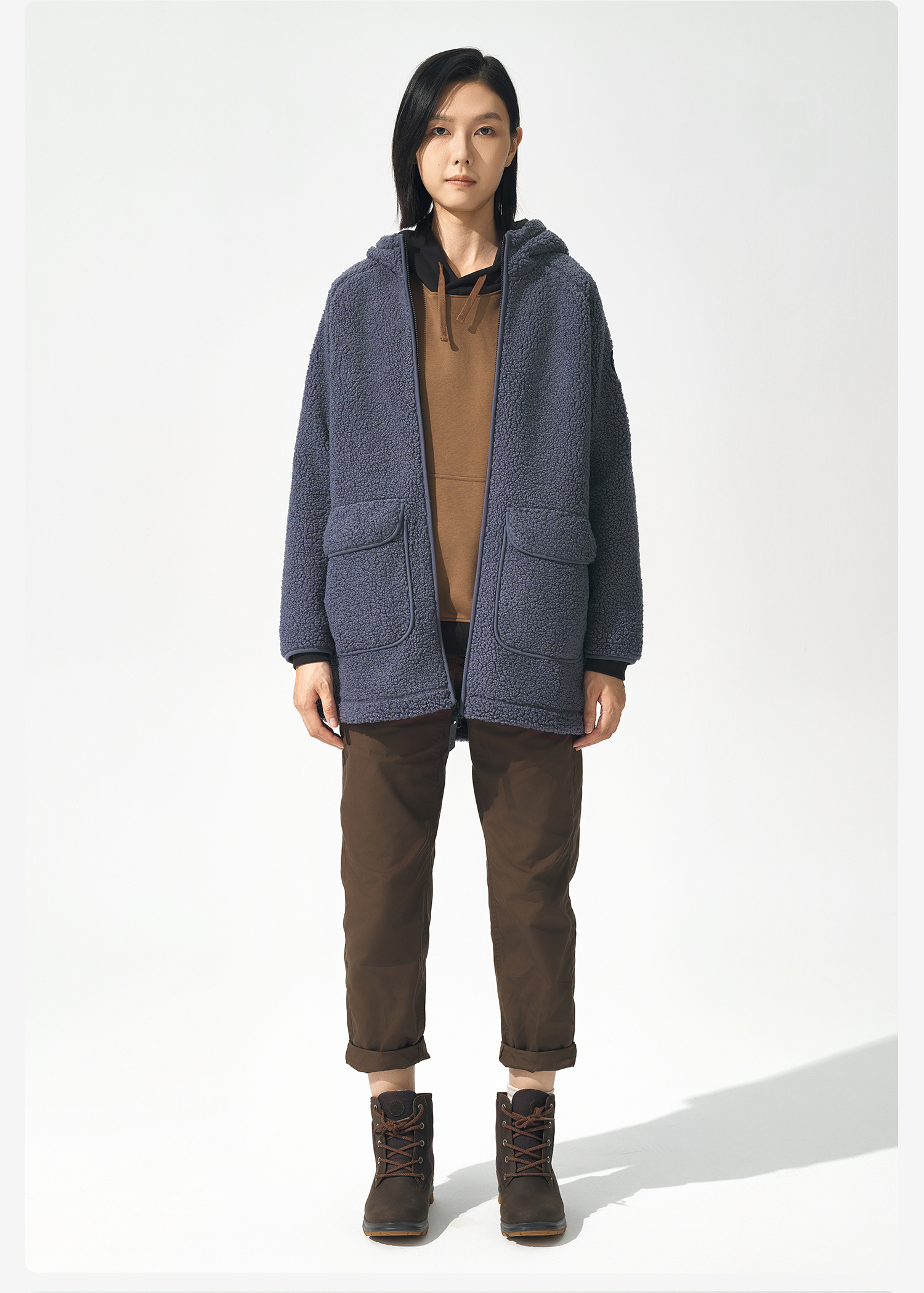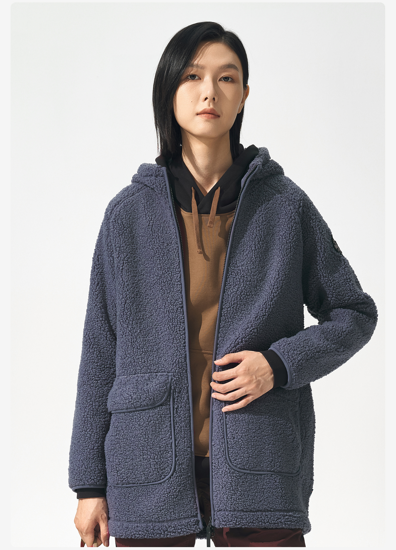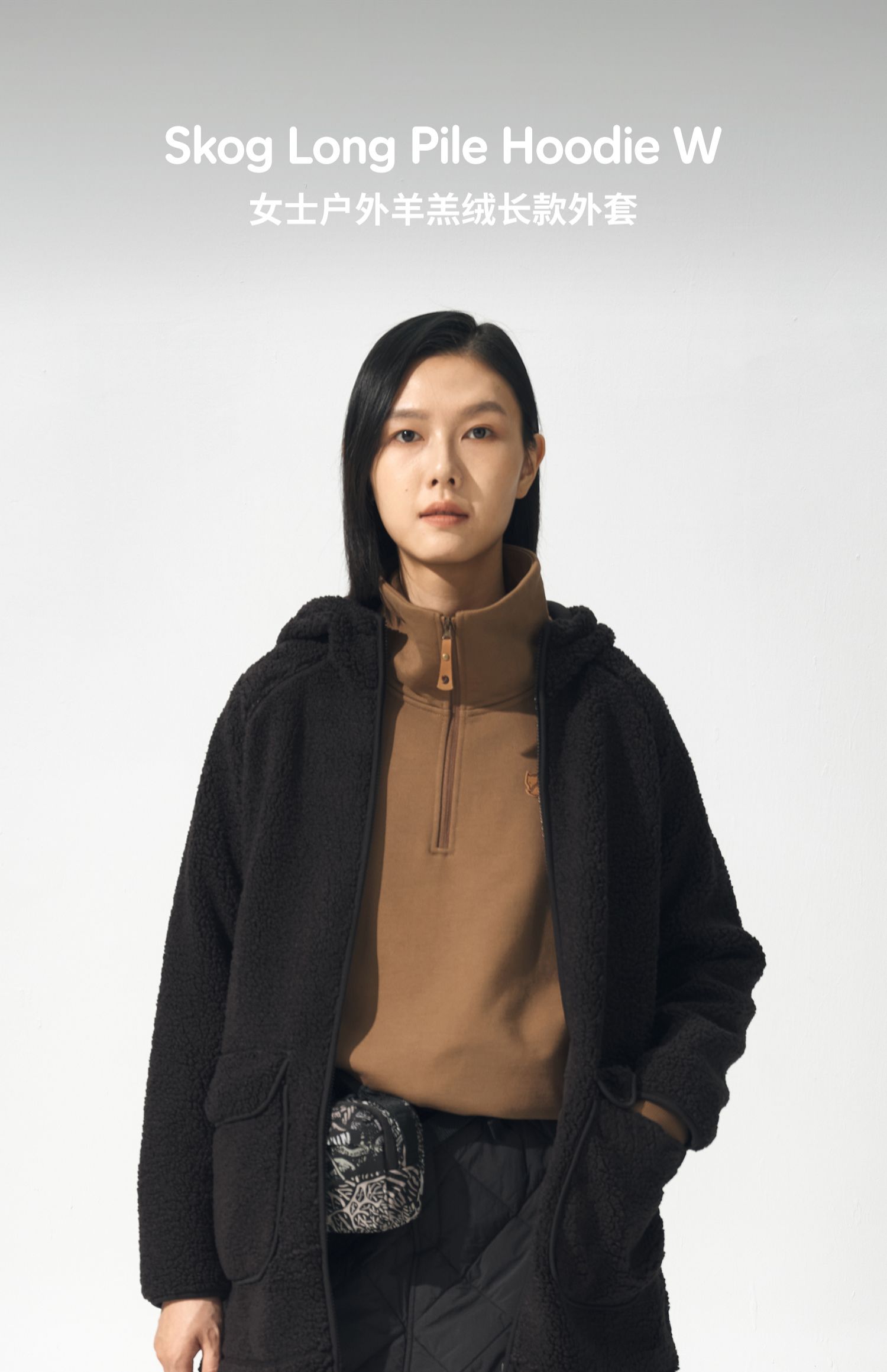 北极狐 女士连帽羊羔绒外套 2024秋冬保暖中长款夹克04232250