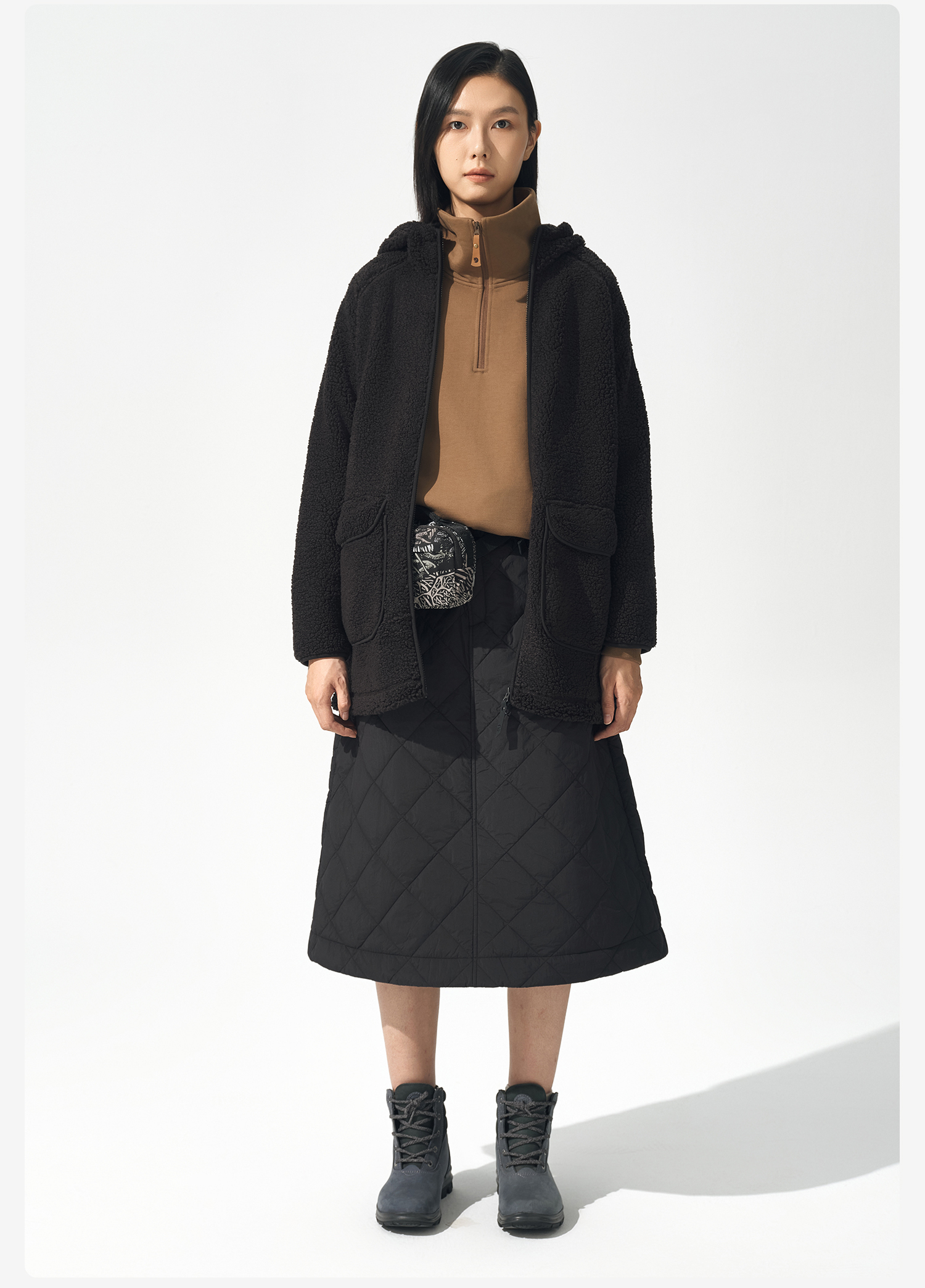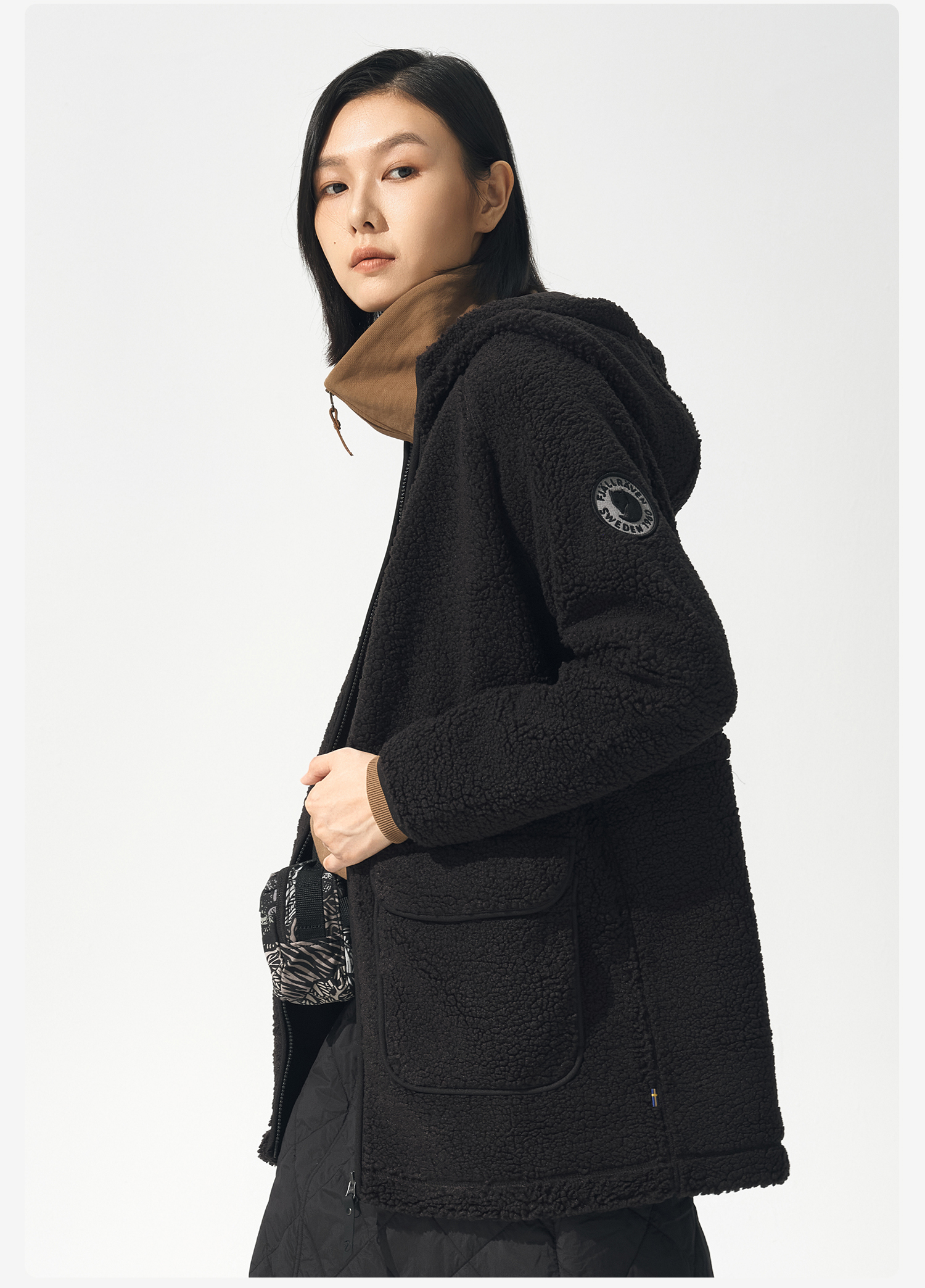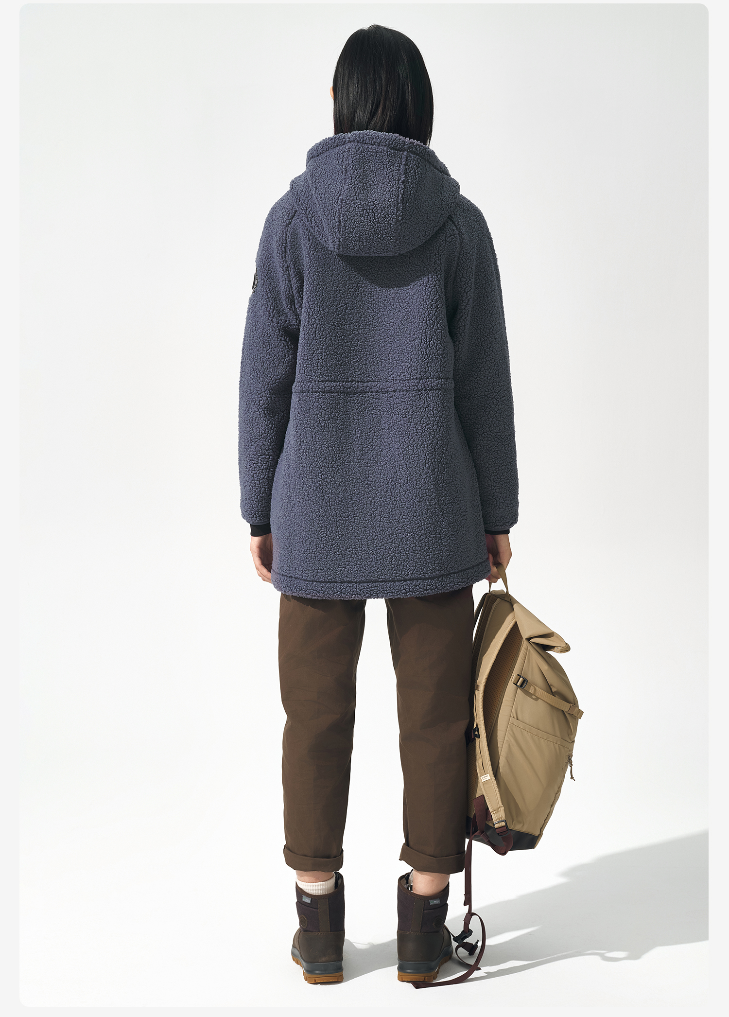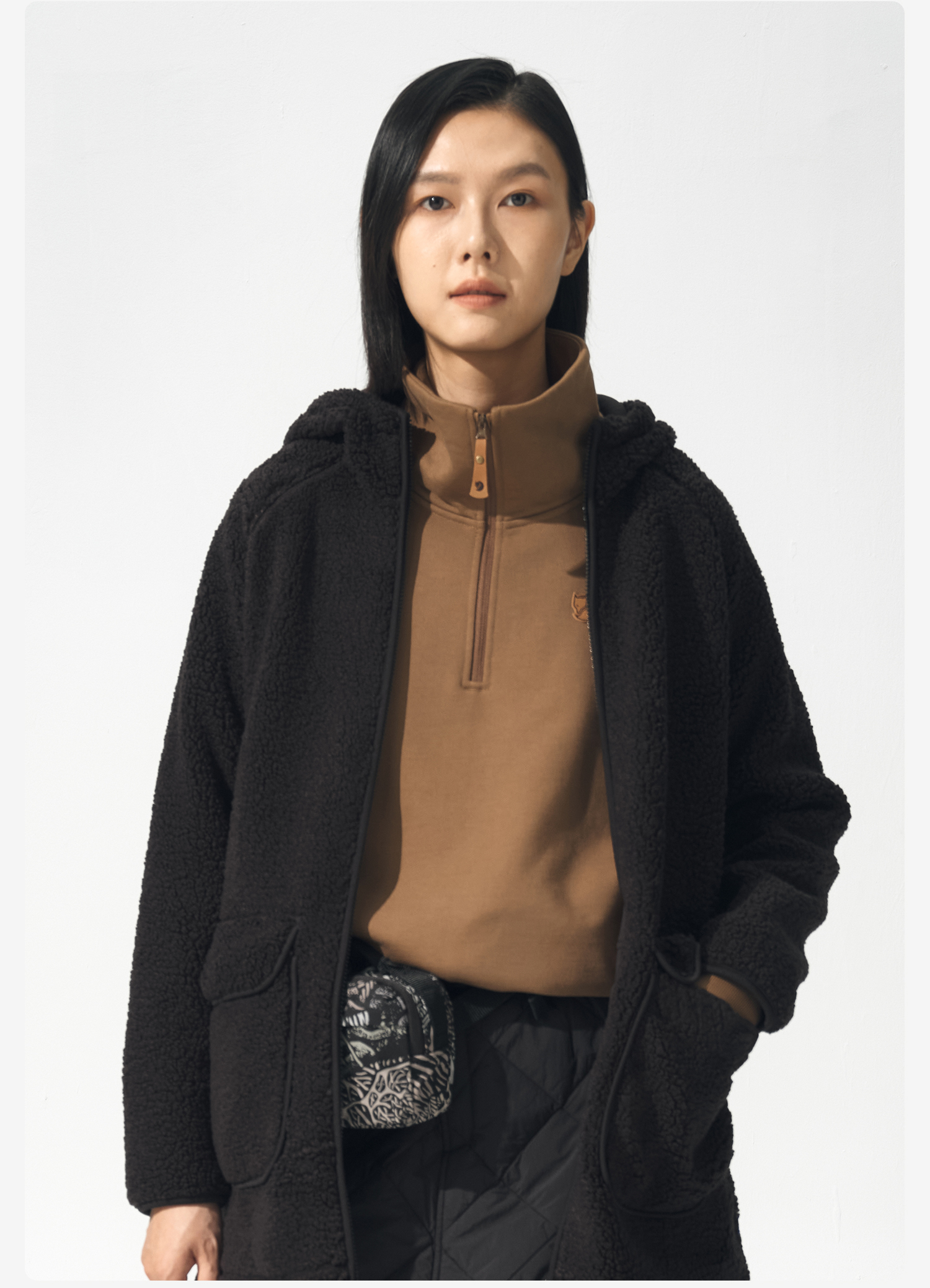 北极狐 女士连帽羊羔绒外套 2024秋冬保暖中长款夹克04232250