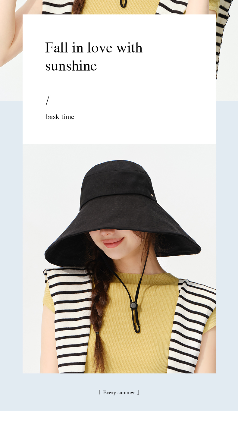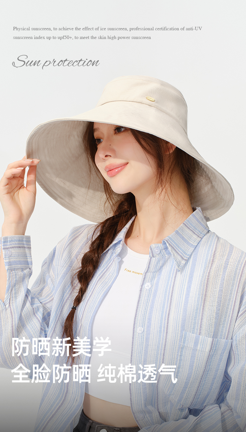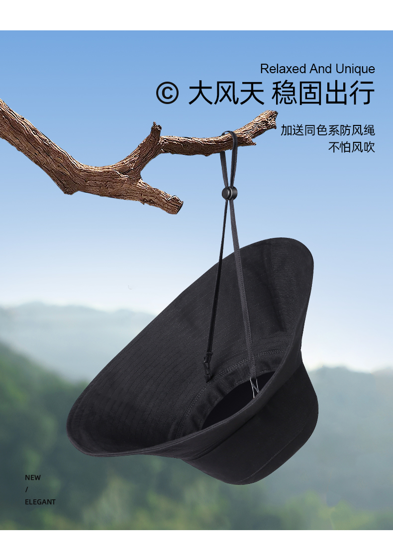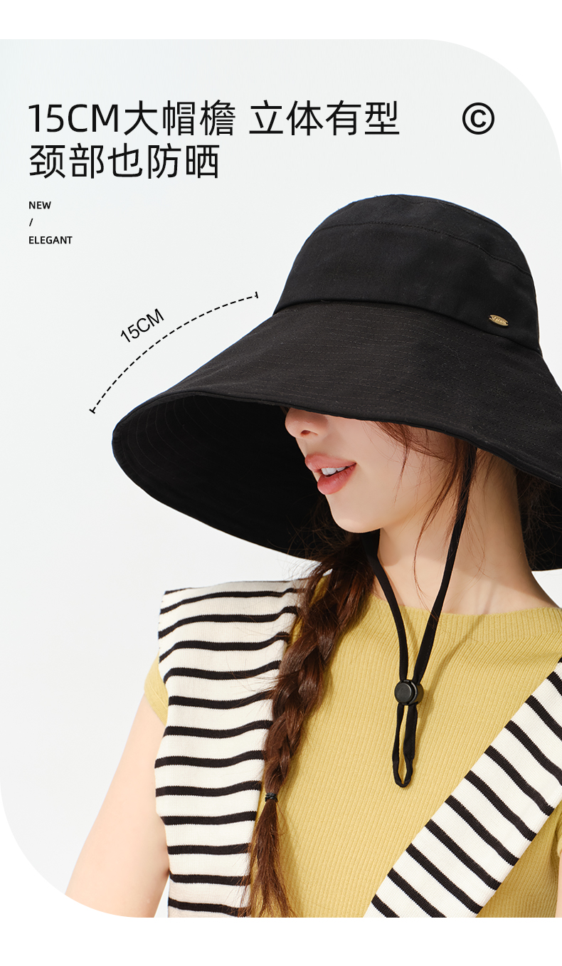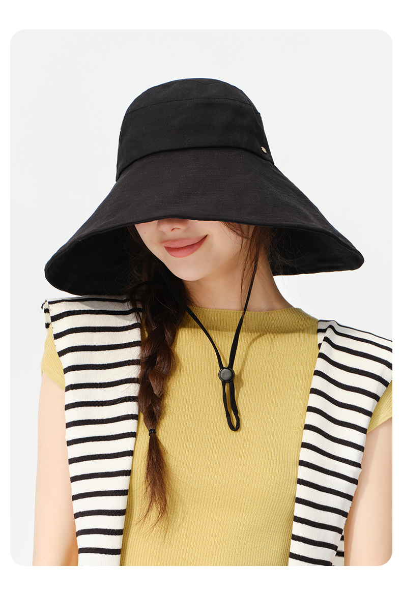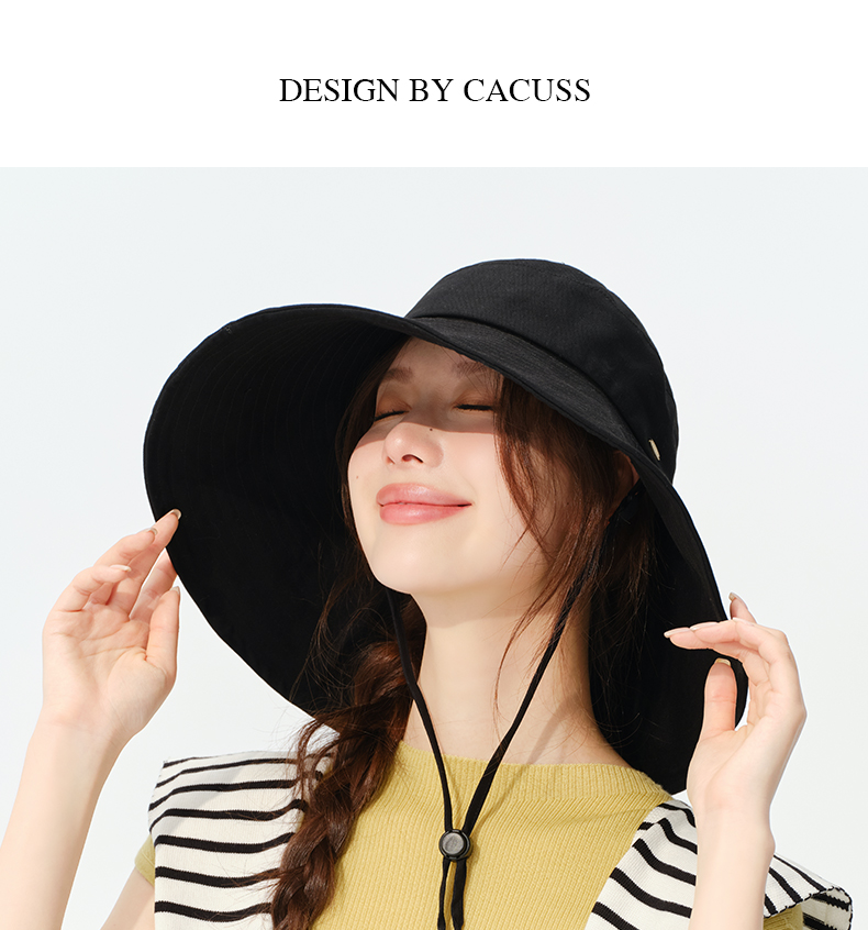 【CACUSS防晒】纯棉透气大帽檐防晒帽 立体帽型可调节塑形丝遮阳帽 可卷易收纳带防风绳全脸渔夫帽