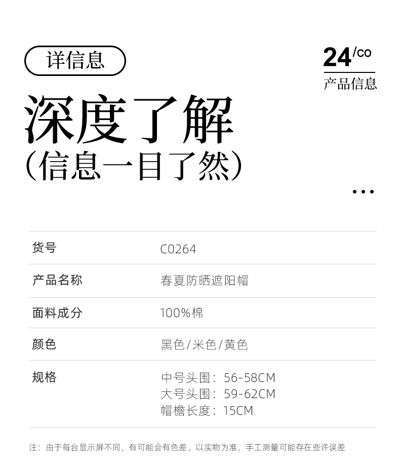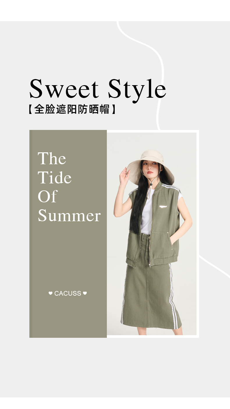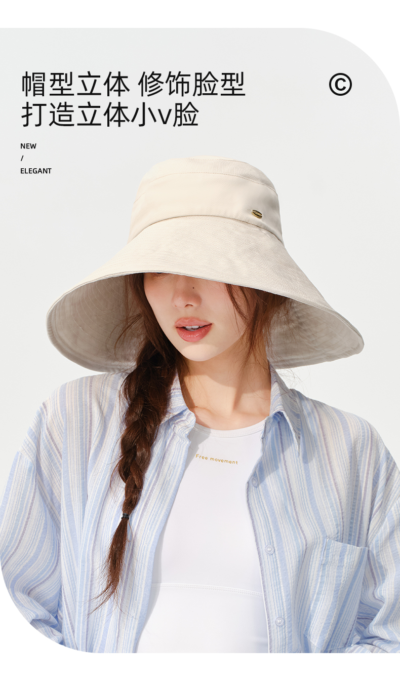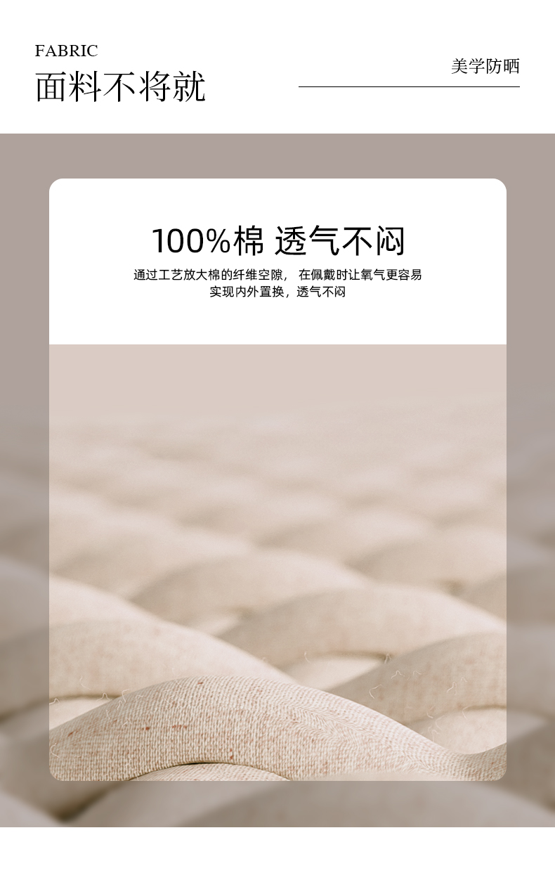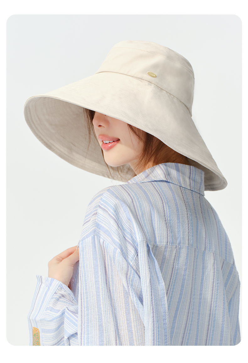 【CACUSS防晒】纯棉透气大帽檐防晒帽 立体帽型可调节塑形丝遮阳帽 可卷易收纳带防风绳全脸渔夫帽