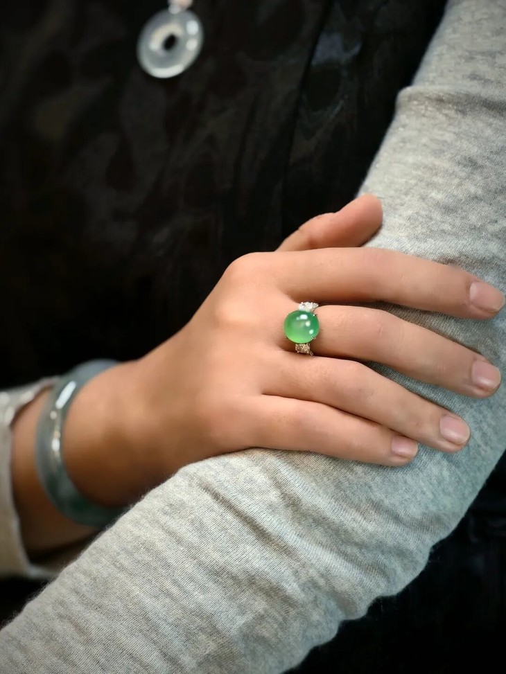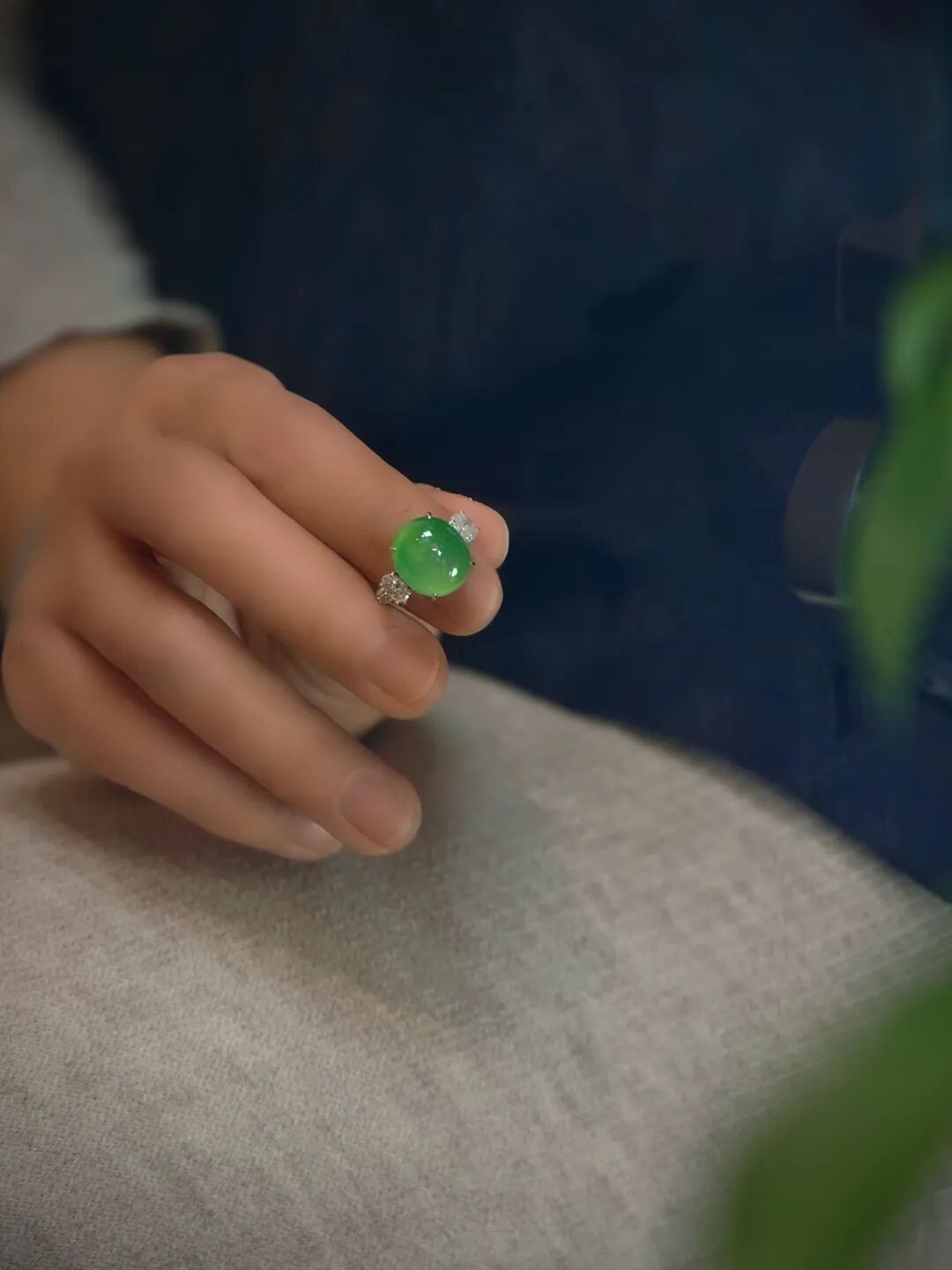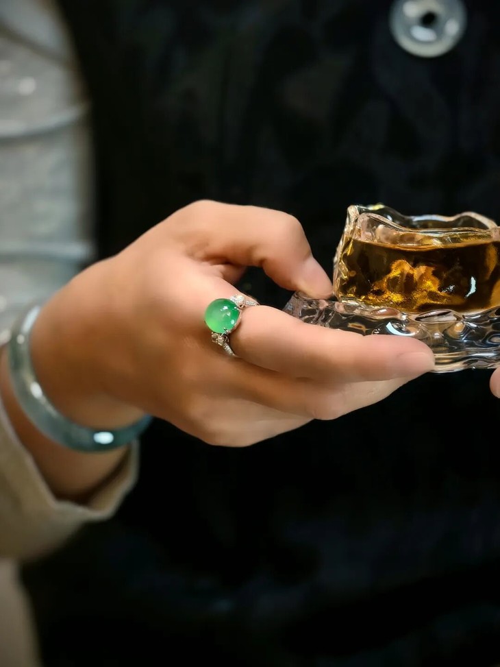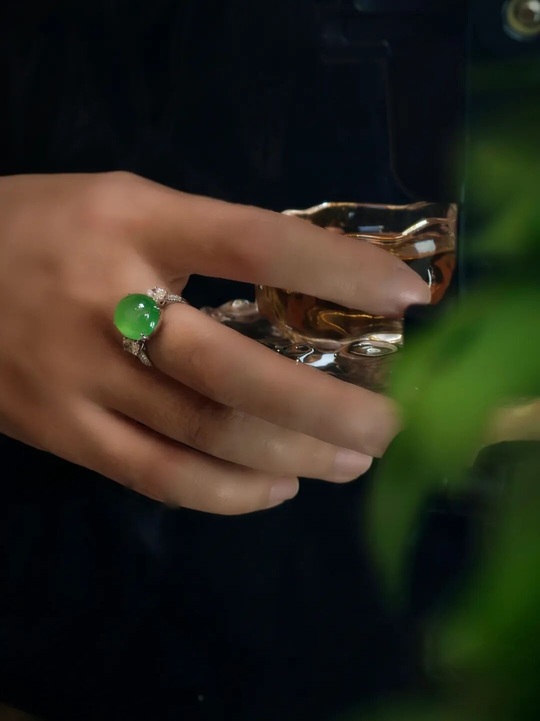 这枚戒指的美,从不依附于繁饰。配中式长衫,是文人墨客笔下的清雅;搭现代衣裙,是穿越时空的时尚碰撞;哪怕素手一枚,也能凭这一抹翠、一片白,彰显“东方清骨”。它不刻意讨好,不随波逐流,戴上它,便拥有了“曲水流觞”般的闲雅清欢,在喧嚣尘世中,寻得一份内心的宁静与从容。