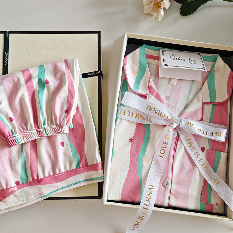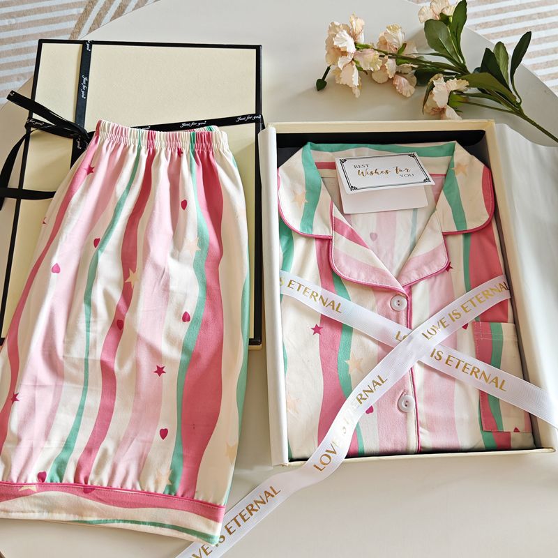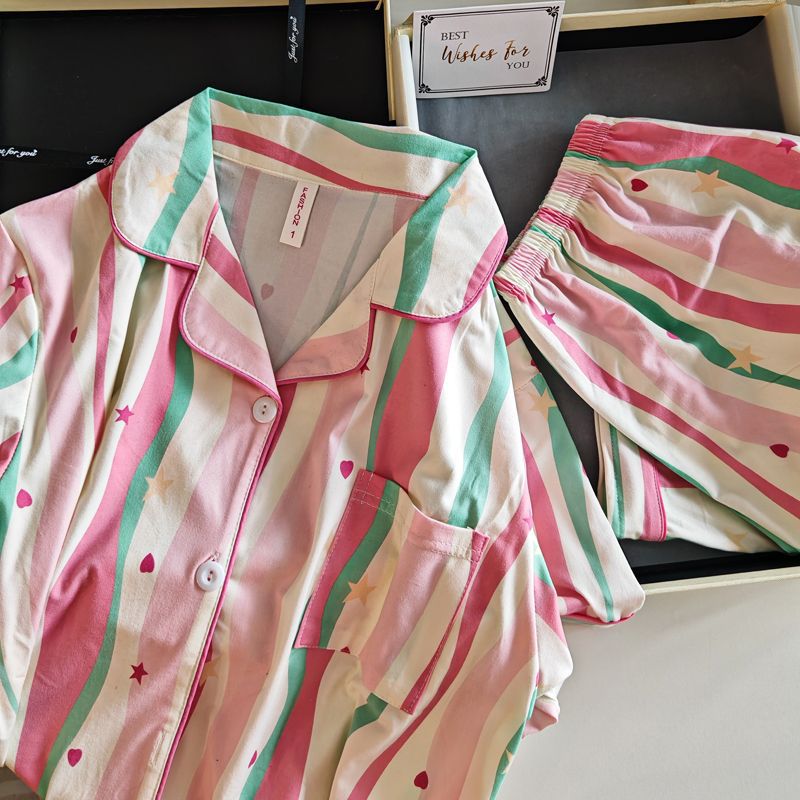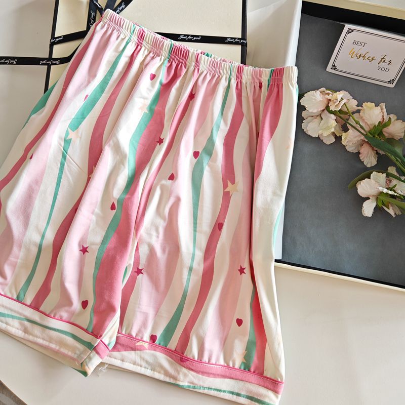 「两件套!多巴胺风」多巴胺粉色条纹睡衣 女夏天薄款学生可外穿短袖套装甜美内衣网红家居服